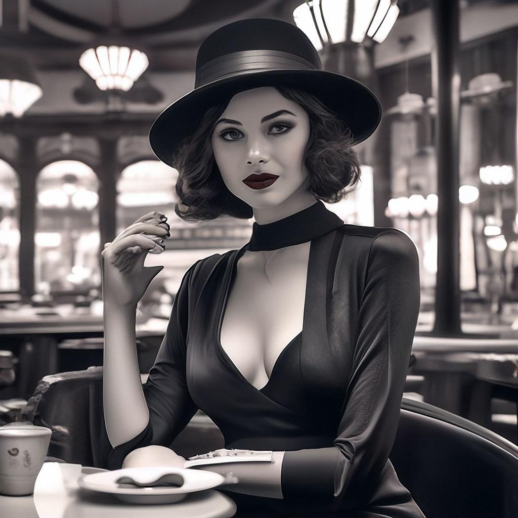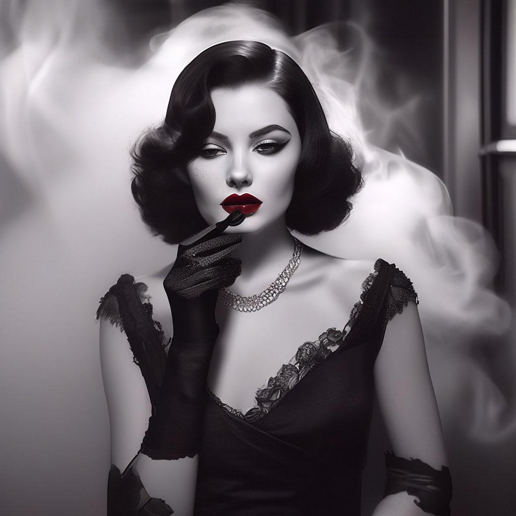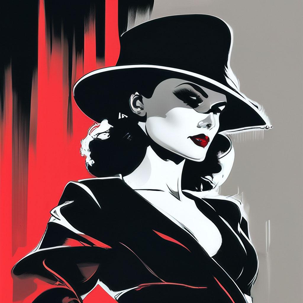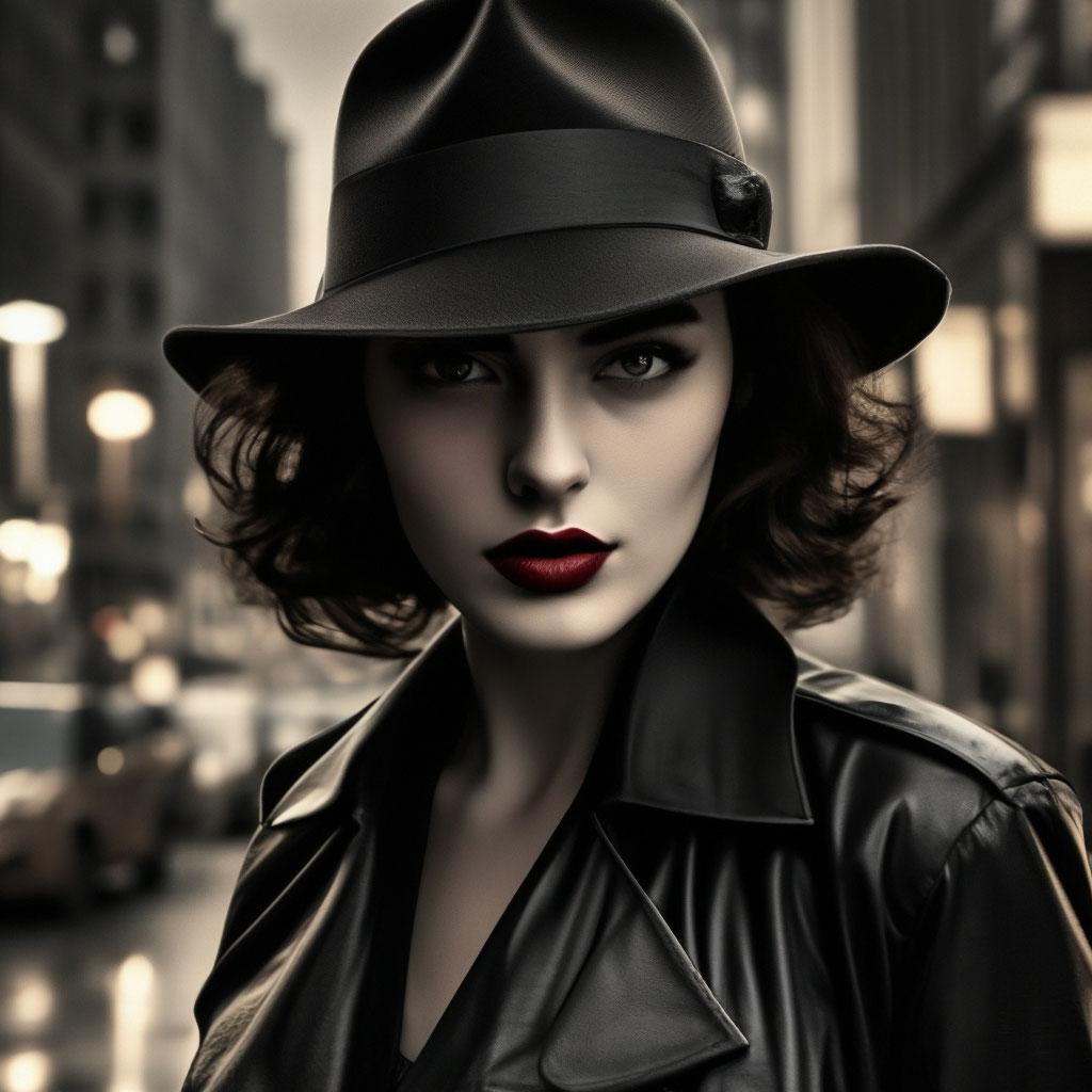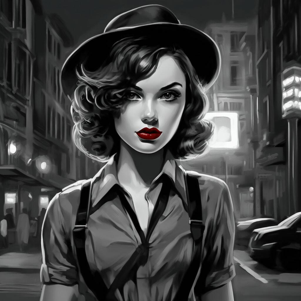 Стиль нюар всегда притягивал своей загадочностью и атмосферой таинственности, что находит отражение в образах современной девушки. Эти фото иллюстрируют, как классические элементы кино noir могут сочетаться с современными тенденциями, создавая уникальные и интригующие образы. Каждая иллюстрация показывает игру света и тени, которая добавляет глубину и загадочность портрету. Тематические аксессуары, прически и элементы одежды рассказывают о вечных темах любви, интриги и человеческих страстей. Такие арты помогают понять, как классические стили могут оставаться актуальными и вдохновлять на новые интерпретации.