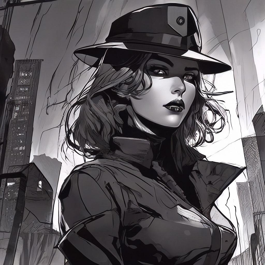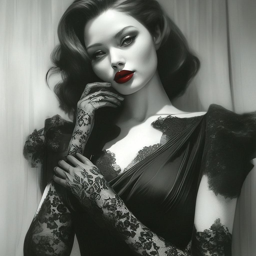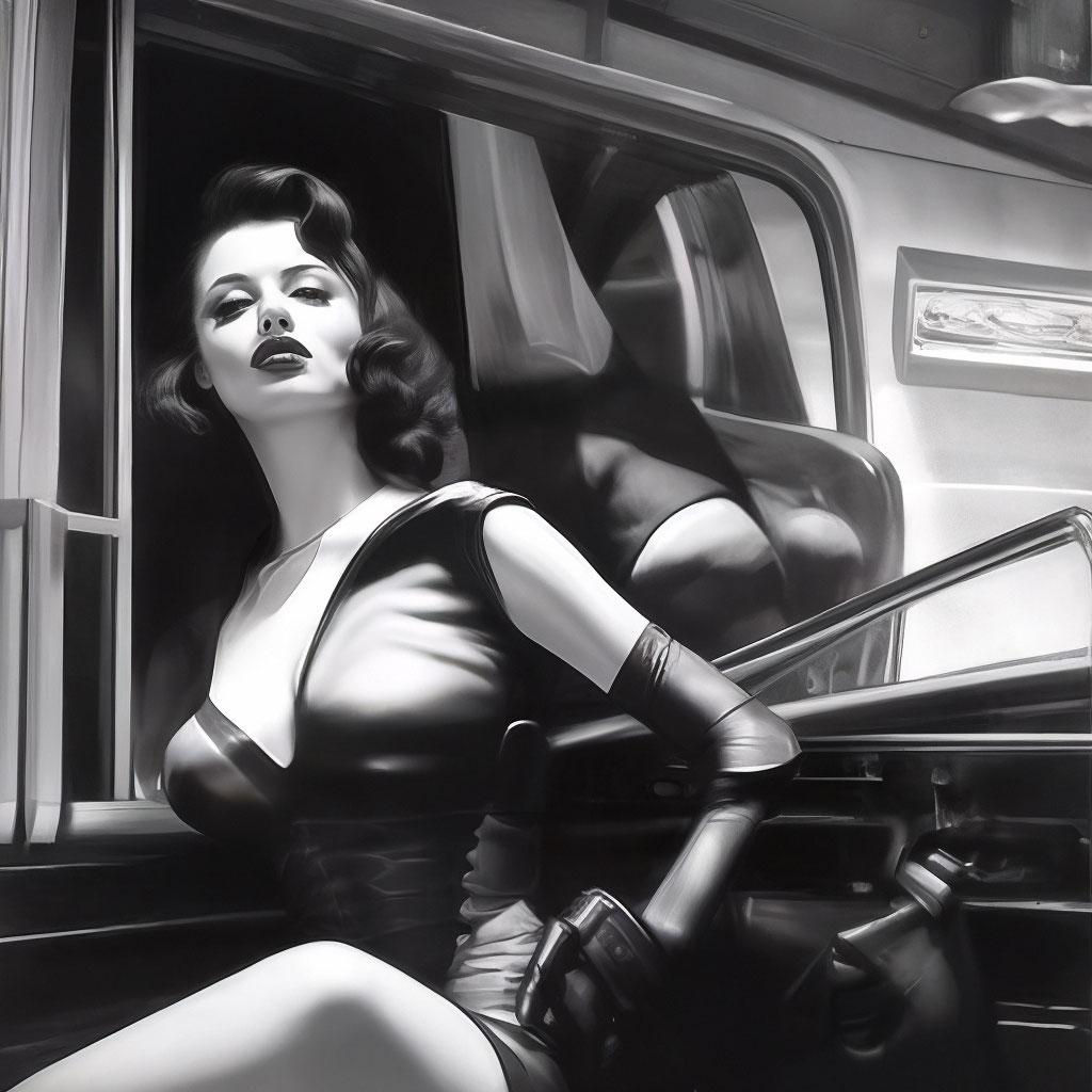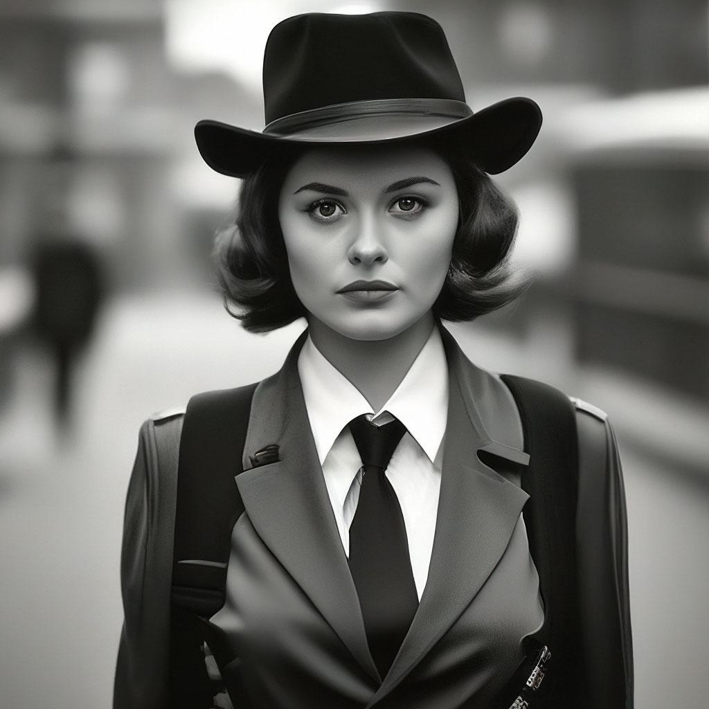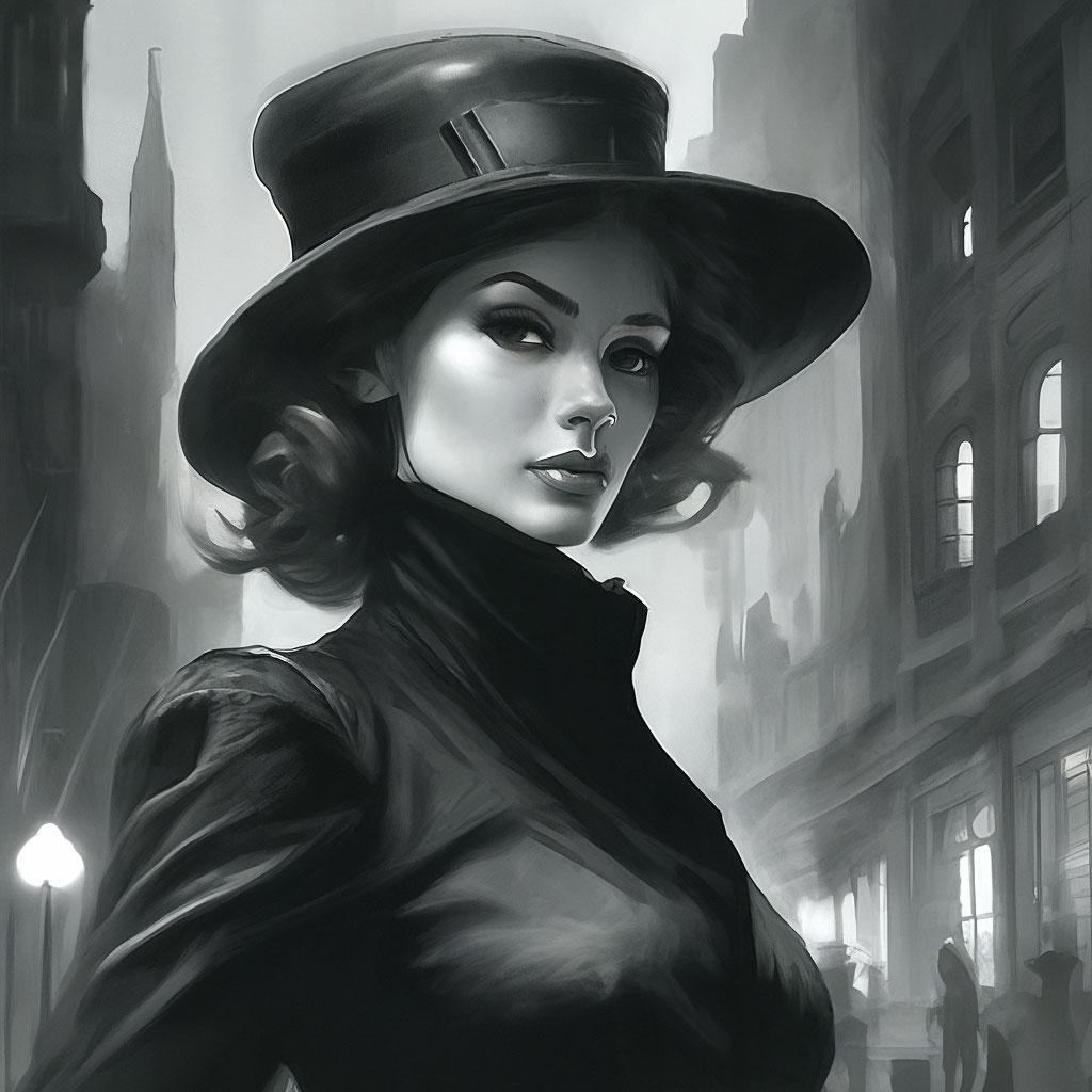 Стиль нюар всегда притягивал своей загадочностью и атмосферой таинственности, что находит отражение в образах современной девушки. Эти фото иллюстрируют, как классические элементы кино noir могут сочетаться с современными тенденциями, создавая уникальные и интригующие образы. Каждая иллюстрация показывает игру света и тени, которая добавляет глубину и загадочность портрету. Тематические аксессуары, прически и элементы одежды рассказывают о вечных темах любви, интриги и человеческих страстей. Такие арты помогают понять, как классические стили могут оставаться актуальными и вдохновлять на новые интерпретации.