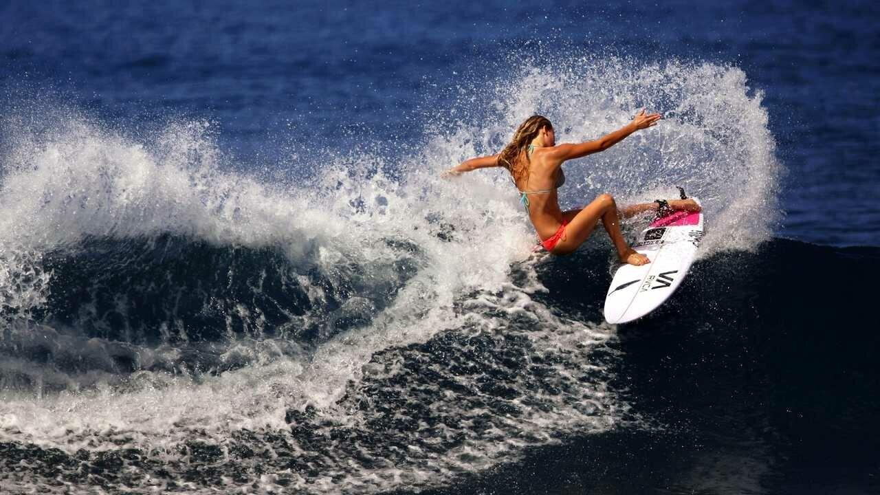 Девушка с доской для серфинга Кейси Масгрейвс серфинг Келия Мониз Сёрфинг девушки Девушка на пляже Девушки