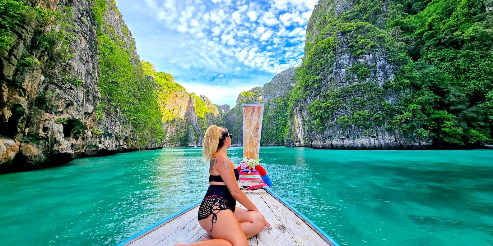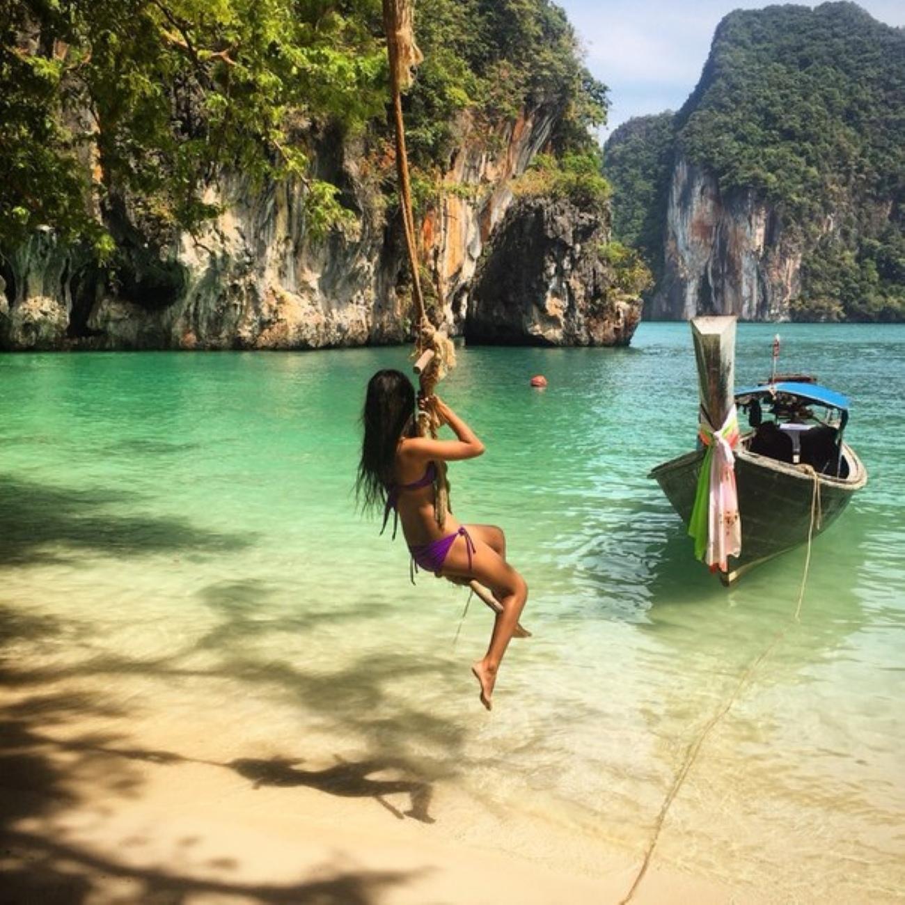 Остров Джеймса Бонда в Тайланде фото Девушка на острове Тайланд остров Пхи Пхи Девушка в лодке тайланд Пхукет фото пляжей с белым песком Девушки