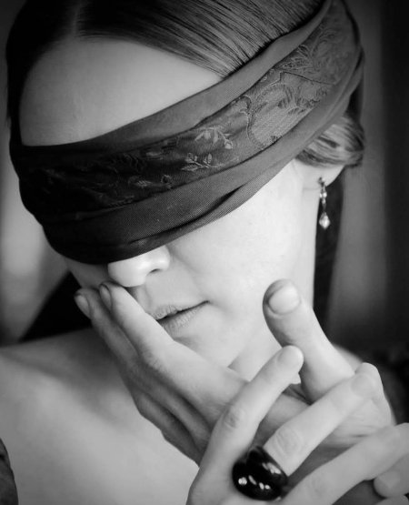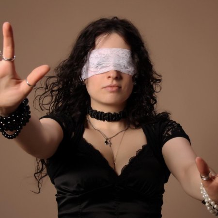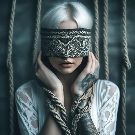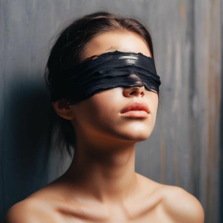 Девушка с завязанными глазами - это не просто красивая картинка, а символ таинственности и чувственности, где красота и загадка идут рука об руку. Ее внешность завораживает и восхищает, создавая образ, который невозможно забыть. Повязка на глазах девушки - это не просто аксессуар, а символ ее таинственной природы, скрывающий взгляд, но не скрывающий красоту. Длинные волосы струятся по плечам, словно шелковые нити, а кожа имеет нежный, почти фарфоровый оттенок. Каждый жест девушки исполнен грации и соблазна, а в воздухе вокруг нее постоянно мерцают искры чувственной энергии. Фон может быть любым - от роскошных интерьеров до природных пейзажей, но везде она выглядит органично и естественно. Эта девушка олицетворяет собой единство красоты и тайны, чувственность, которая не нуждается в словах.