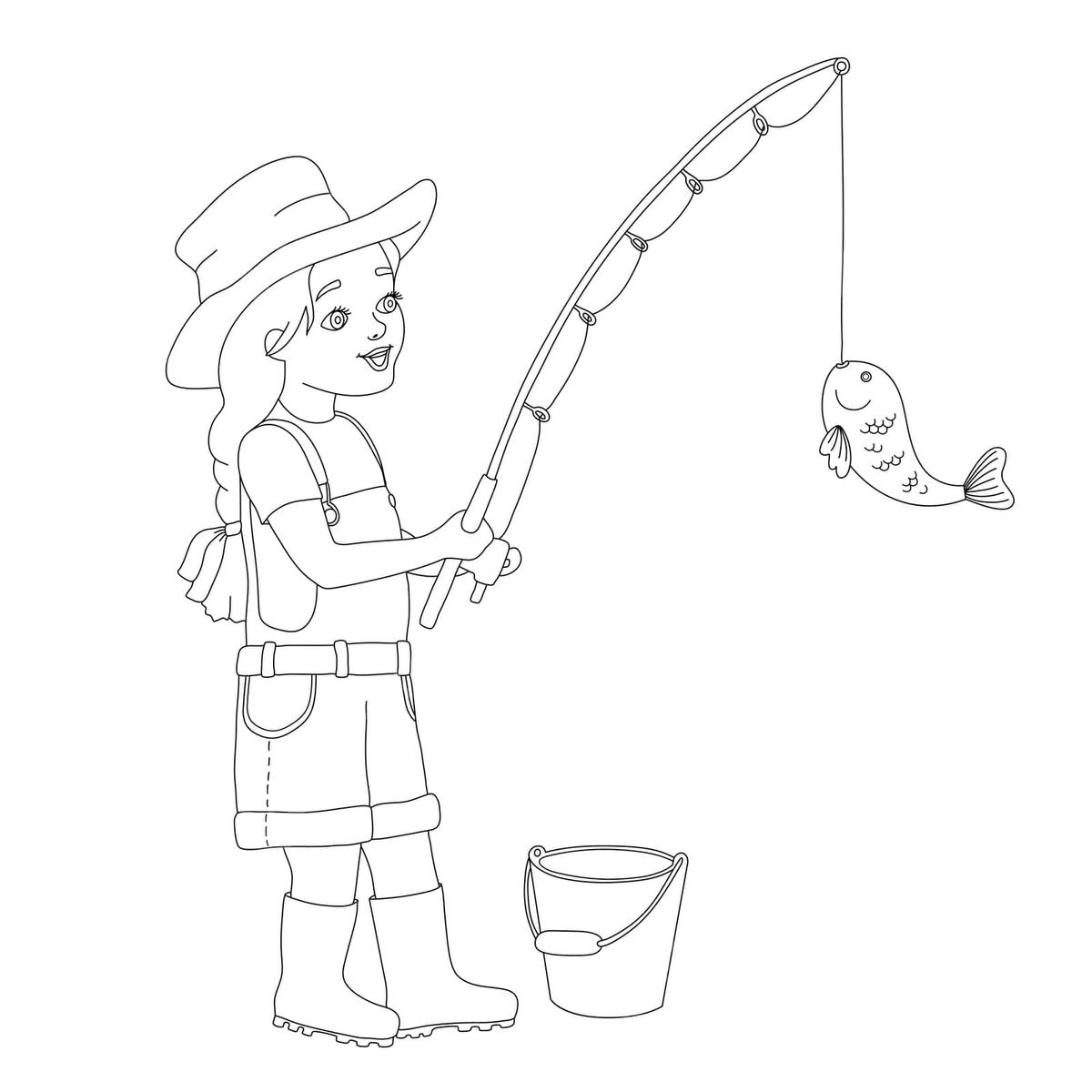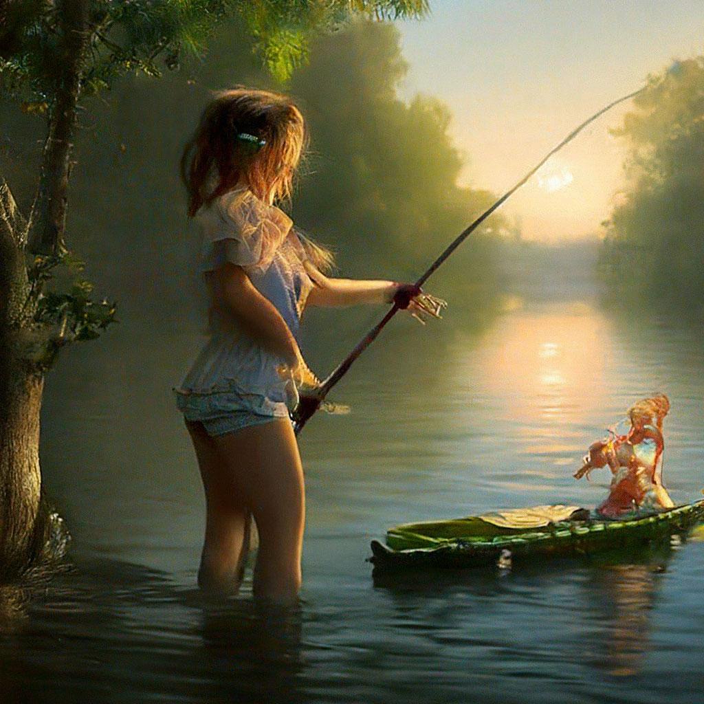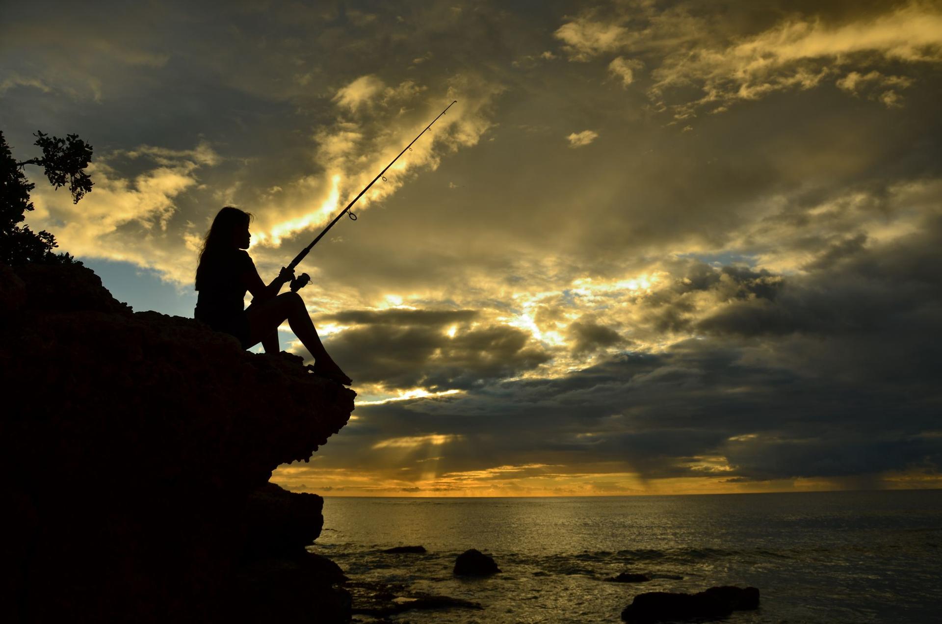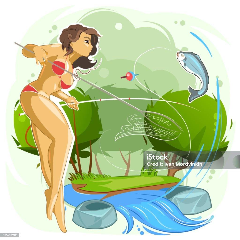 Девушка рыбачит Силуэт девушки с удочкой Девушки на рыбалке Рыбалка иллюстрация Девочка с удочкой мультяшки Девушки