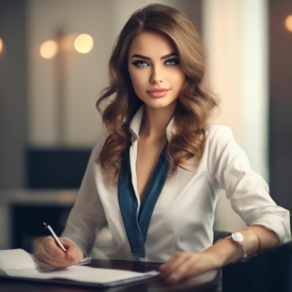 Красивая женщина Красивая девушка продавец Девушка в платье Сексуальная секретарша Девушка секретарь Девушки
