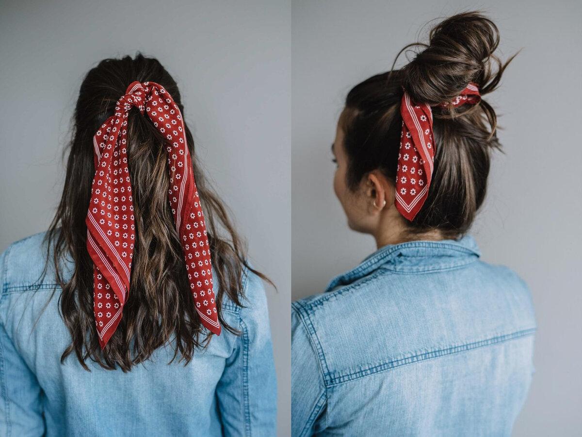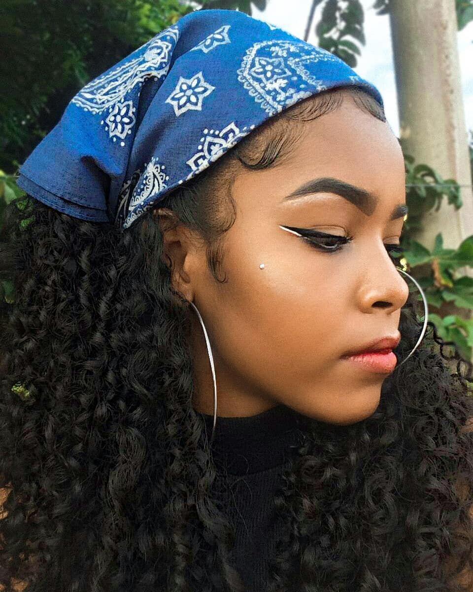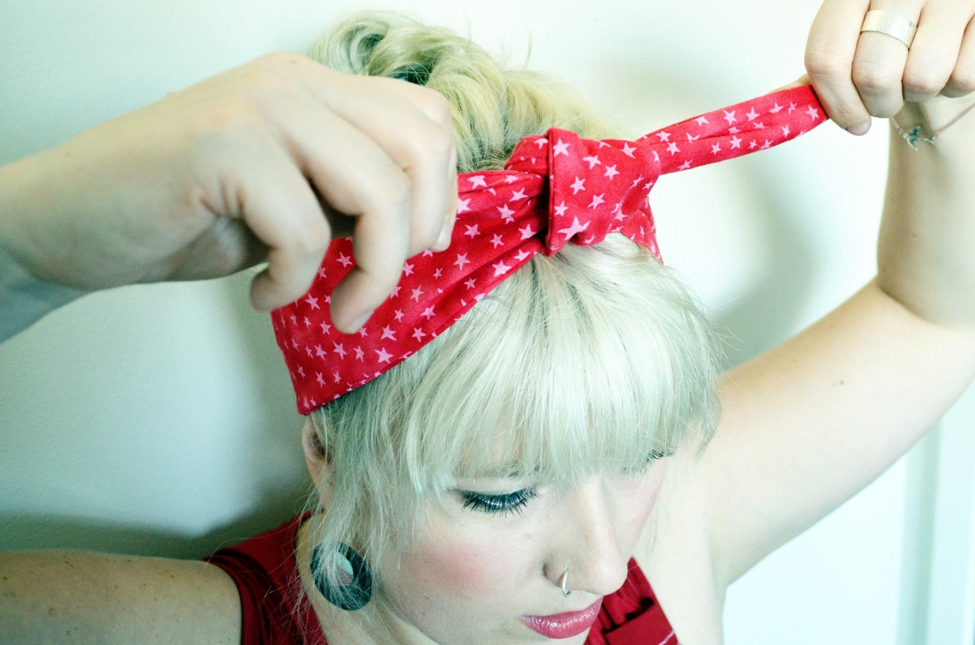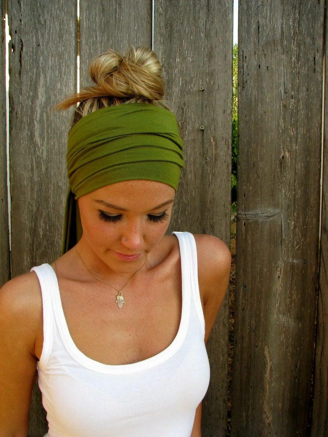 Девушка с завязанной банданой на голове