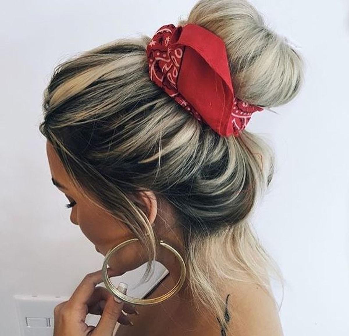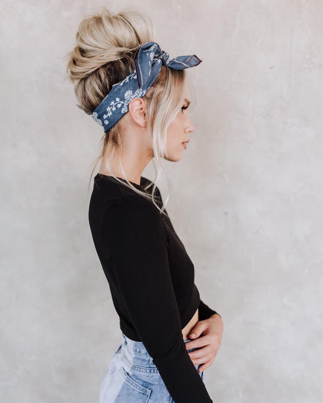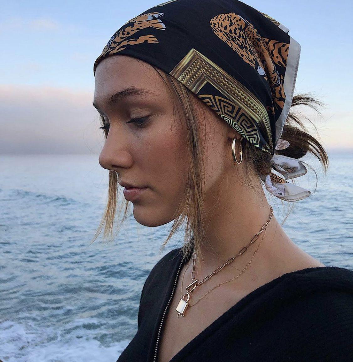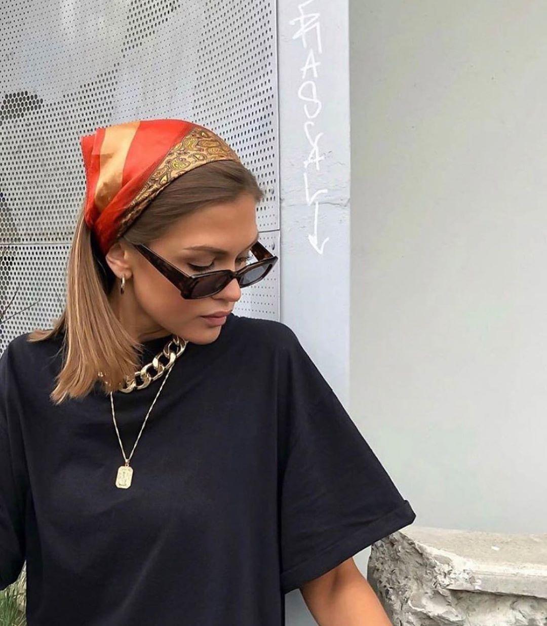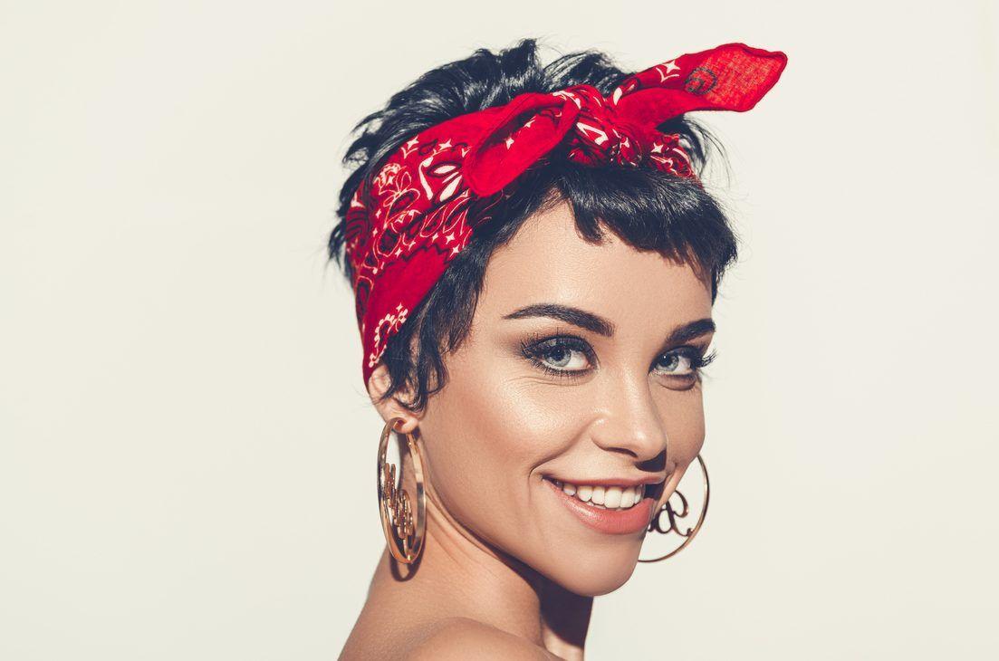Девушка с завязанной банданой на голове