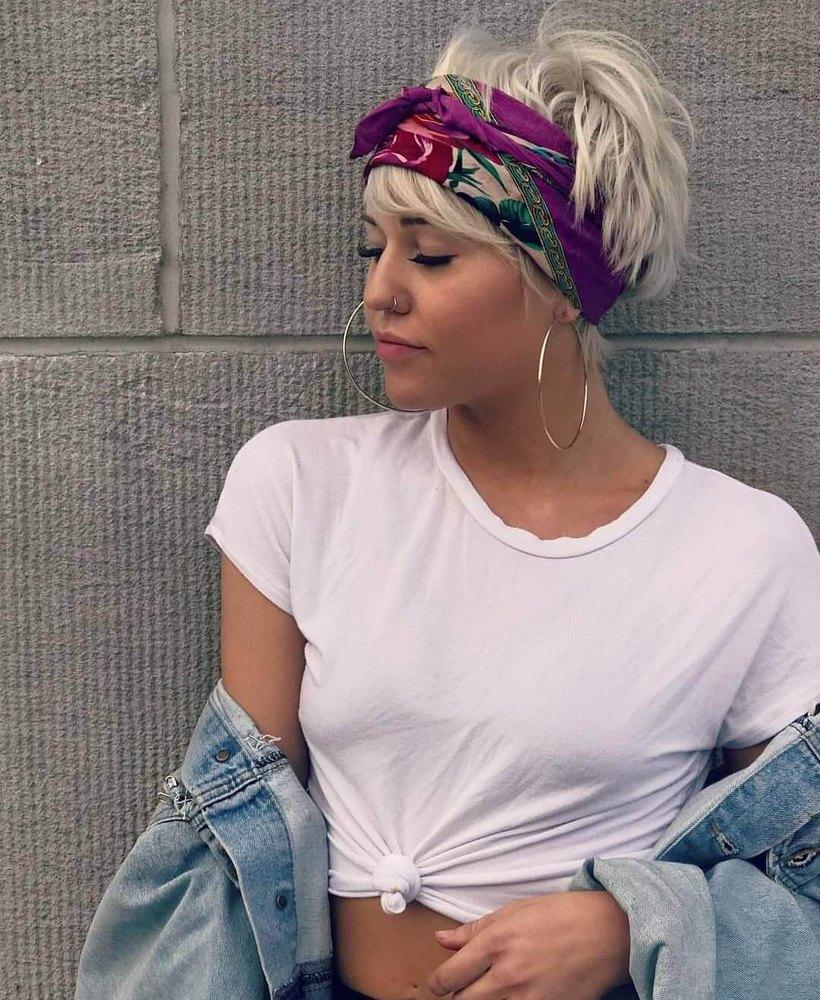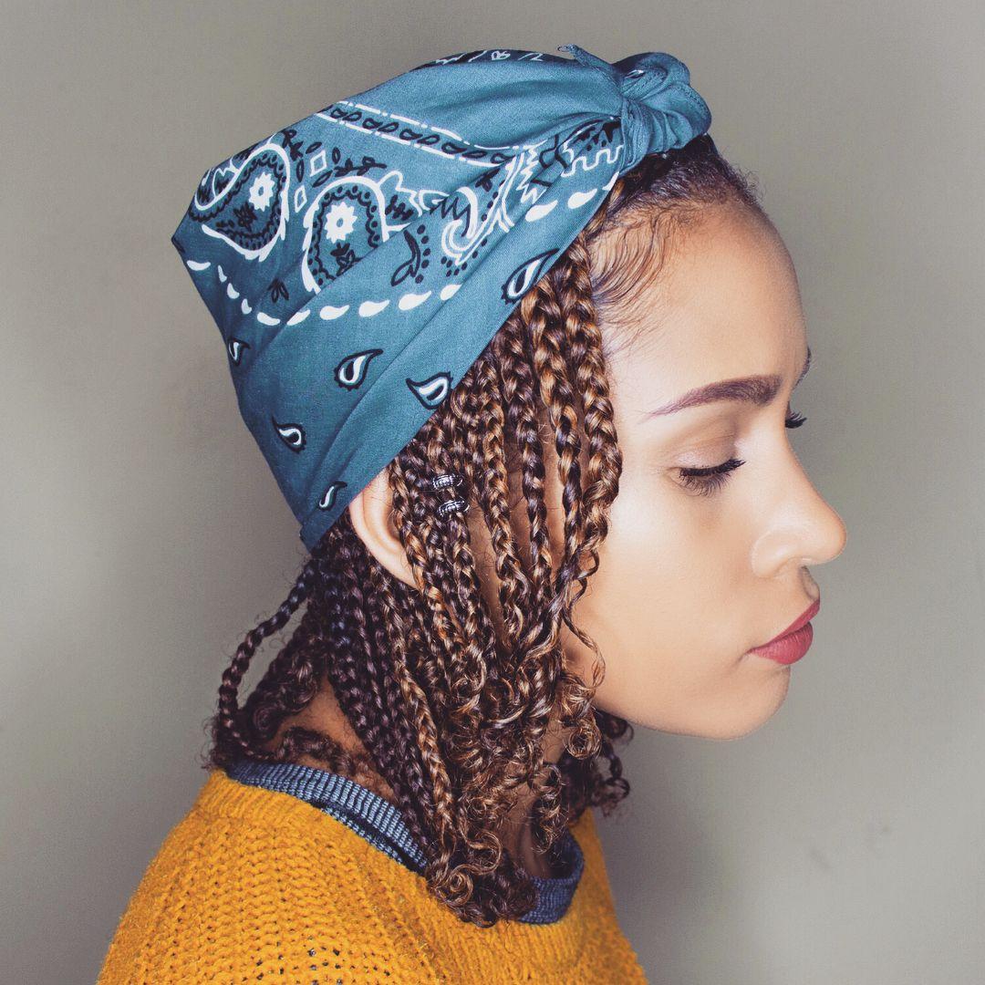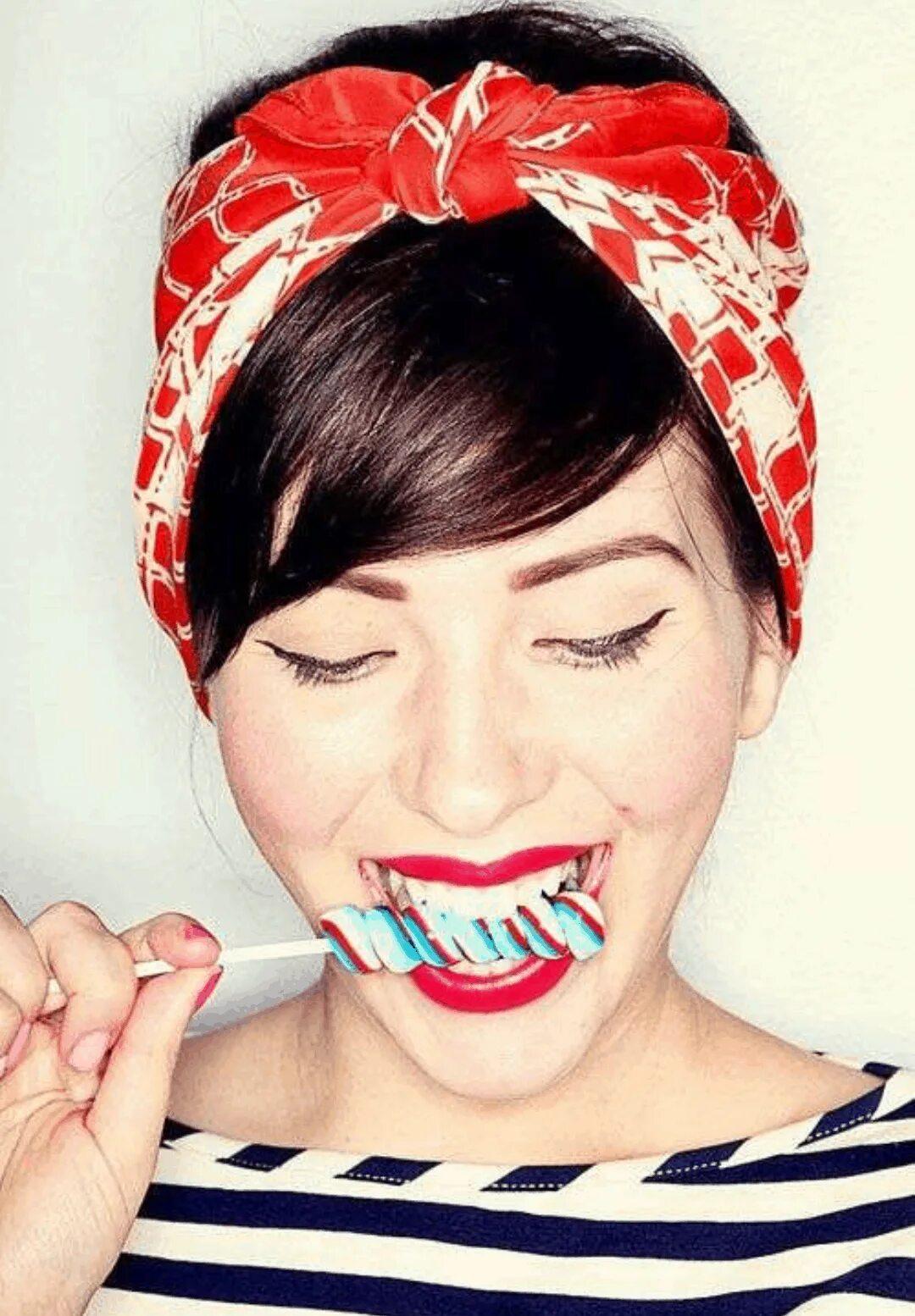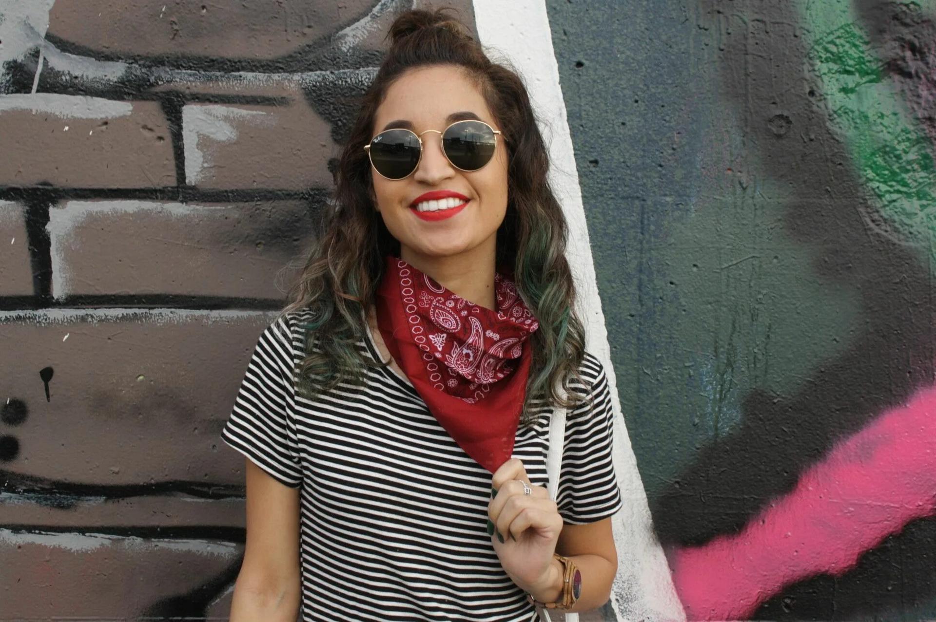 Девушка с завязанной банданой на голове