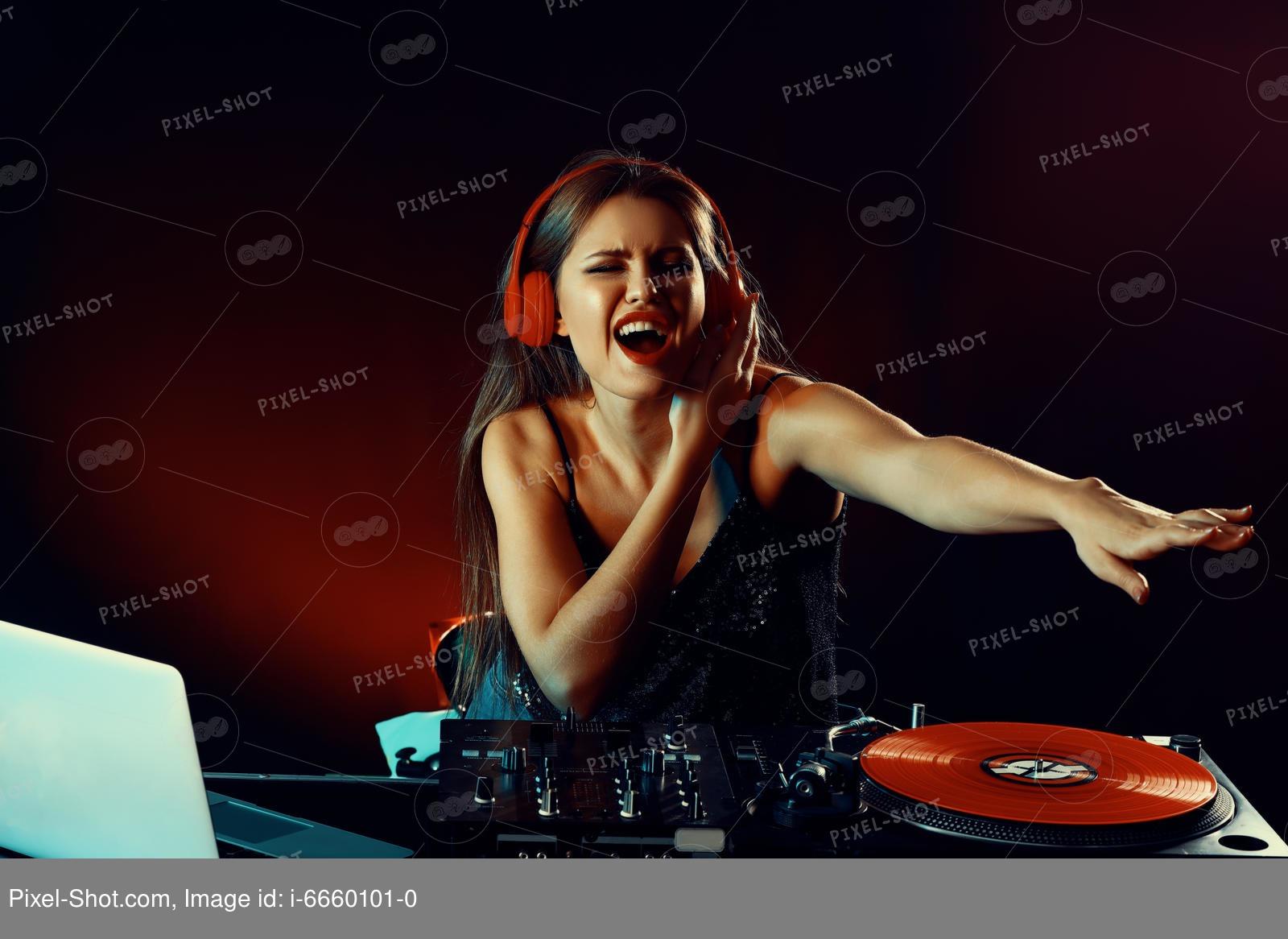 Девушка диджей за пультом