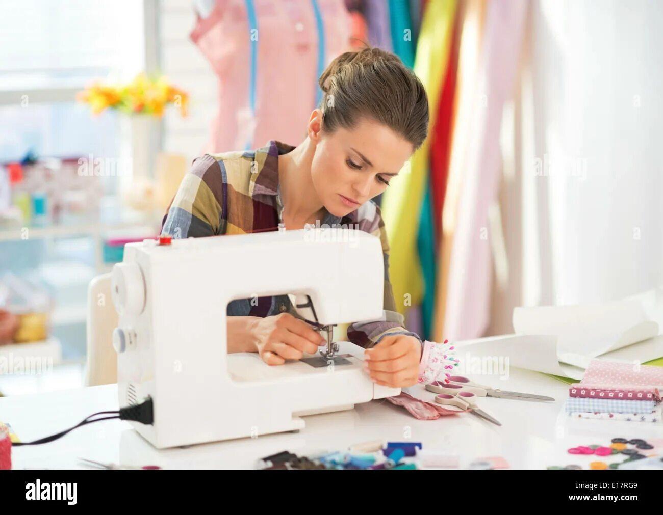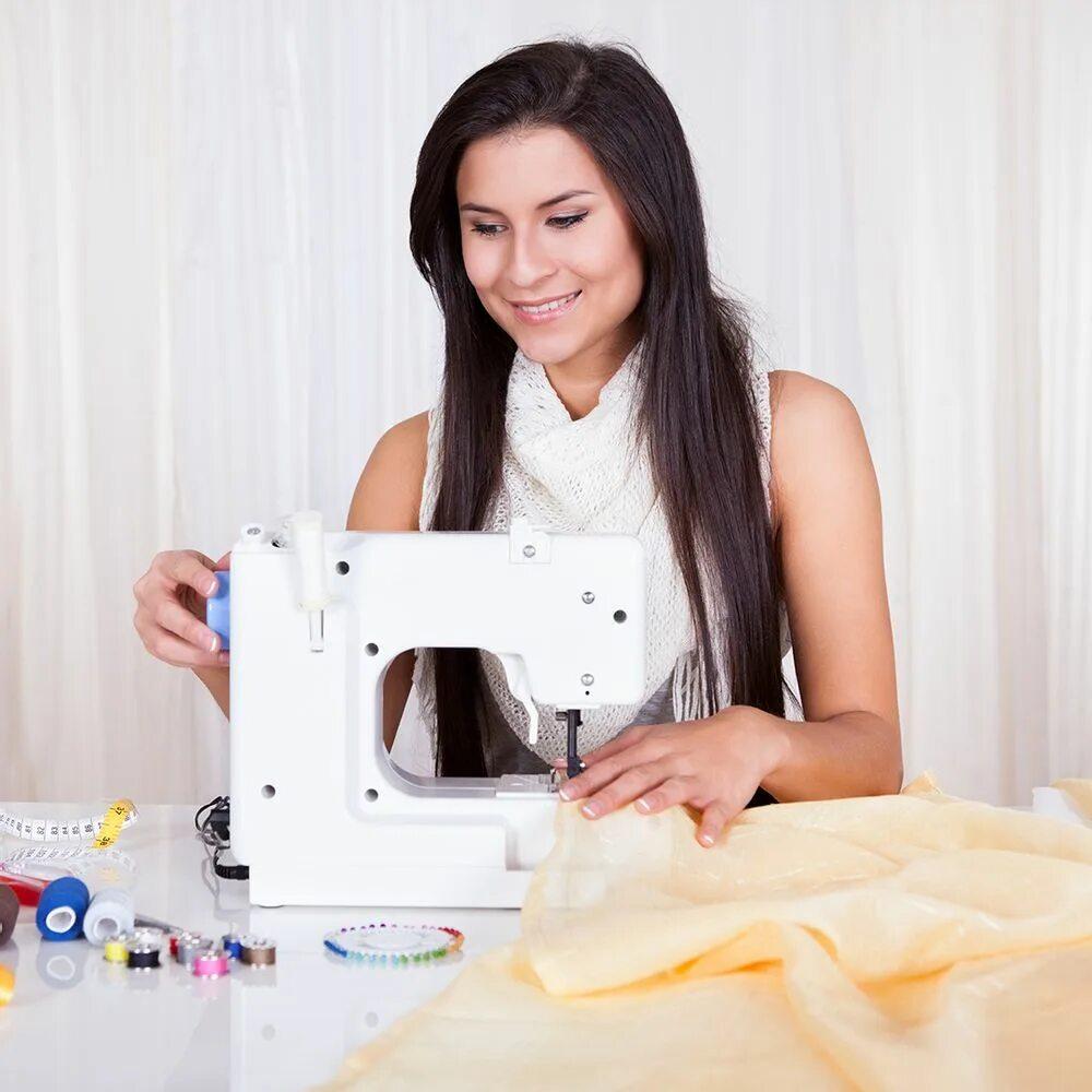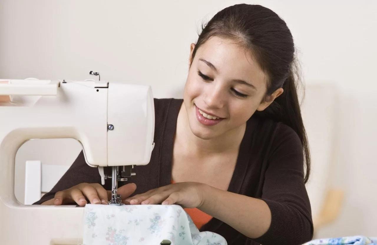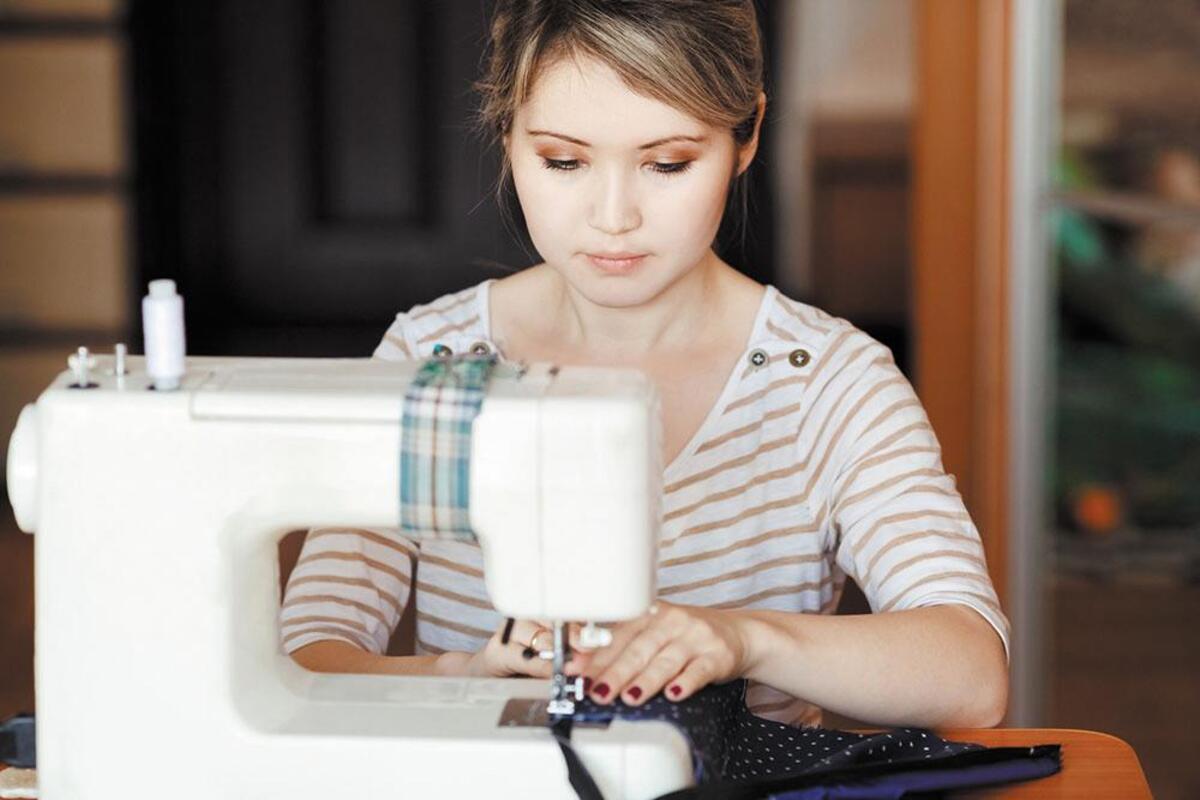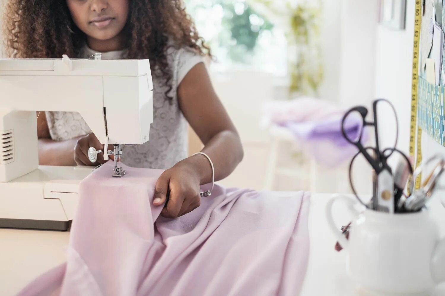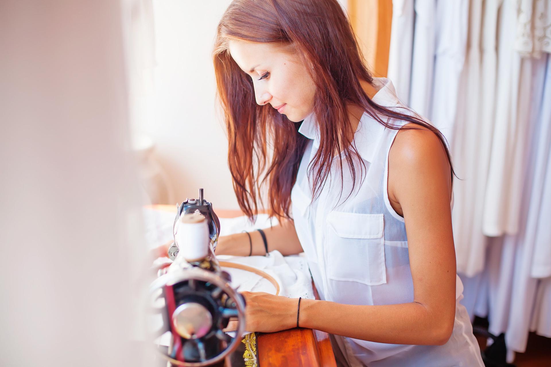Девушка шьет