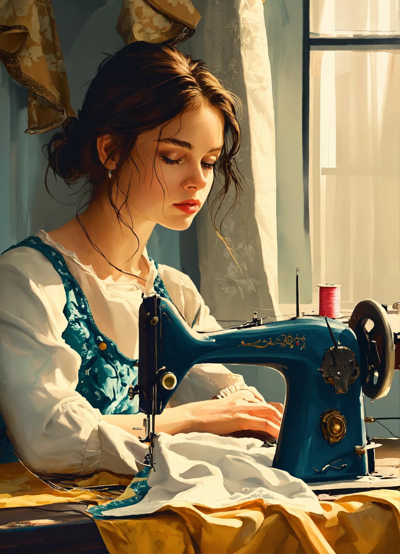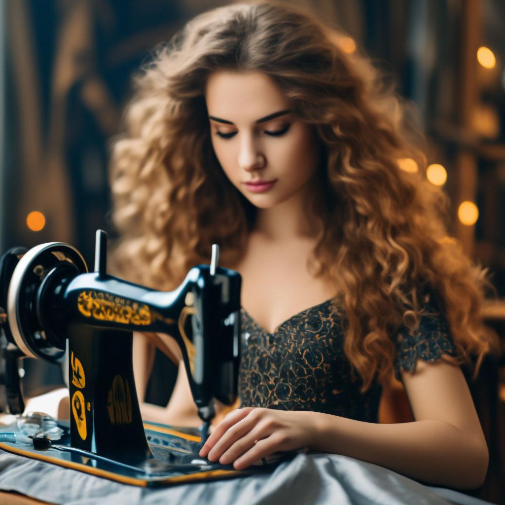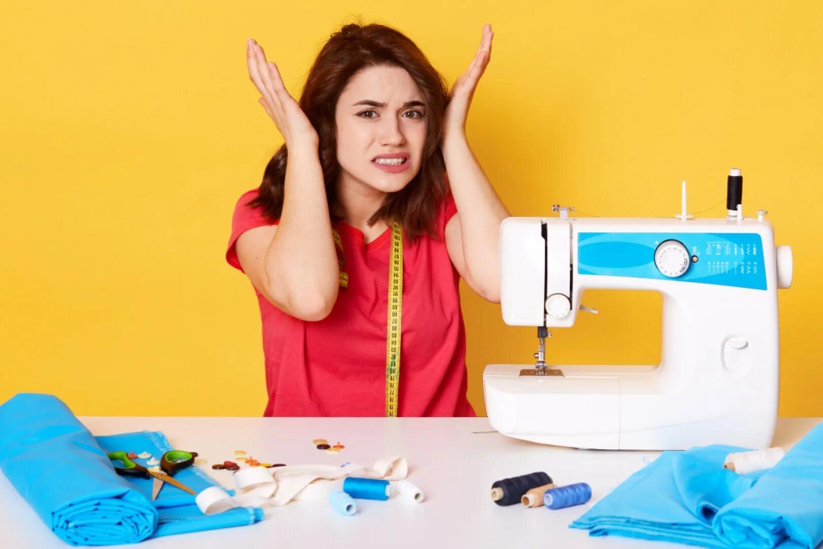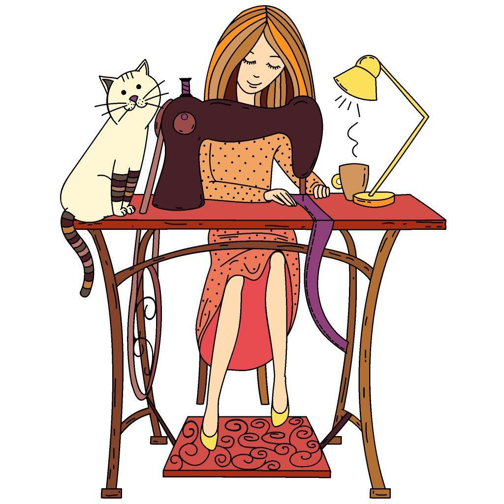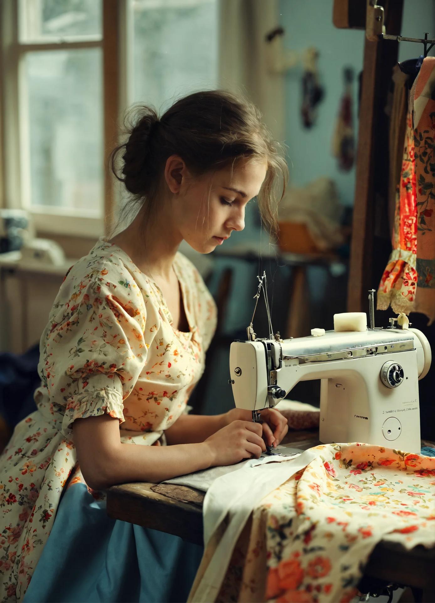 Девушка шьет