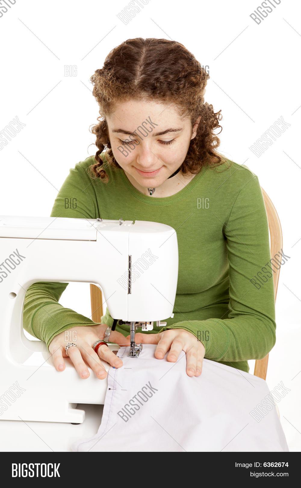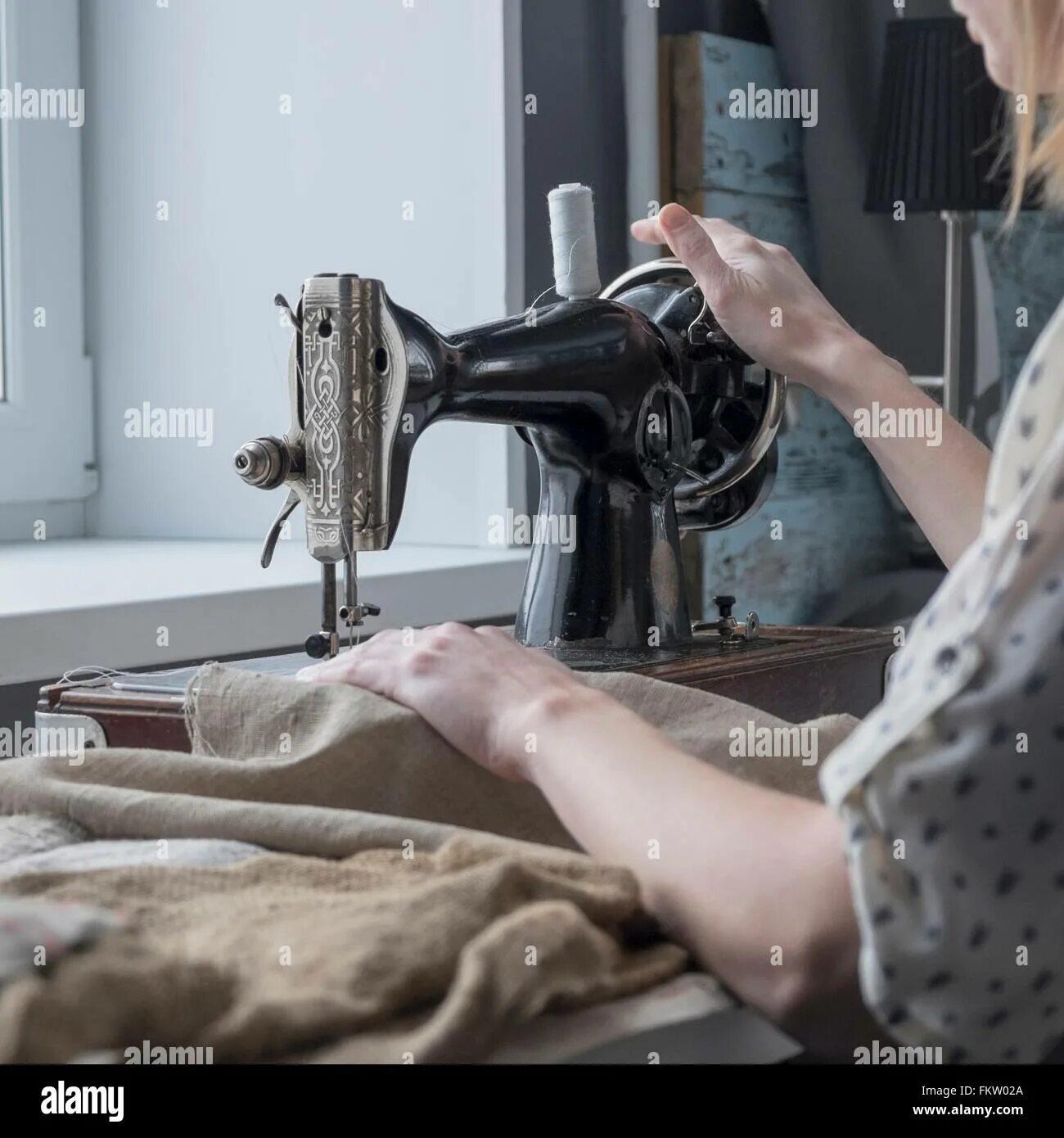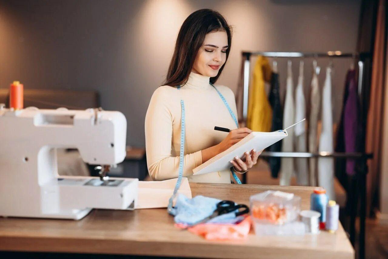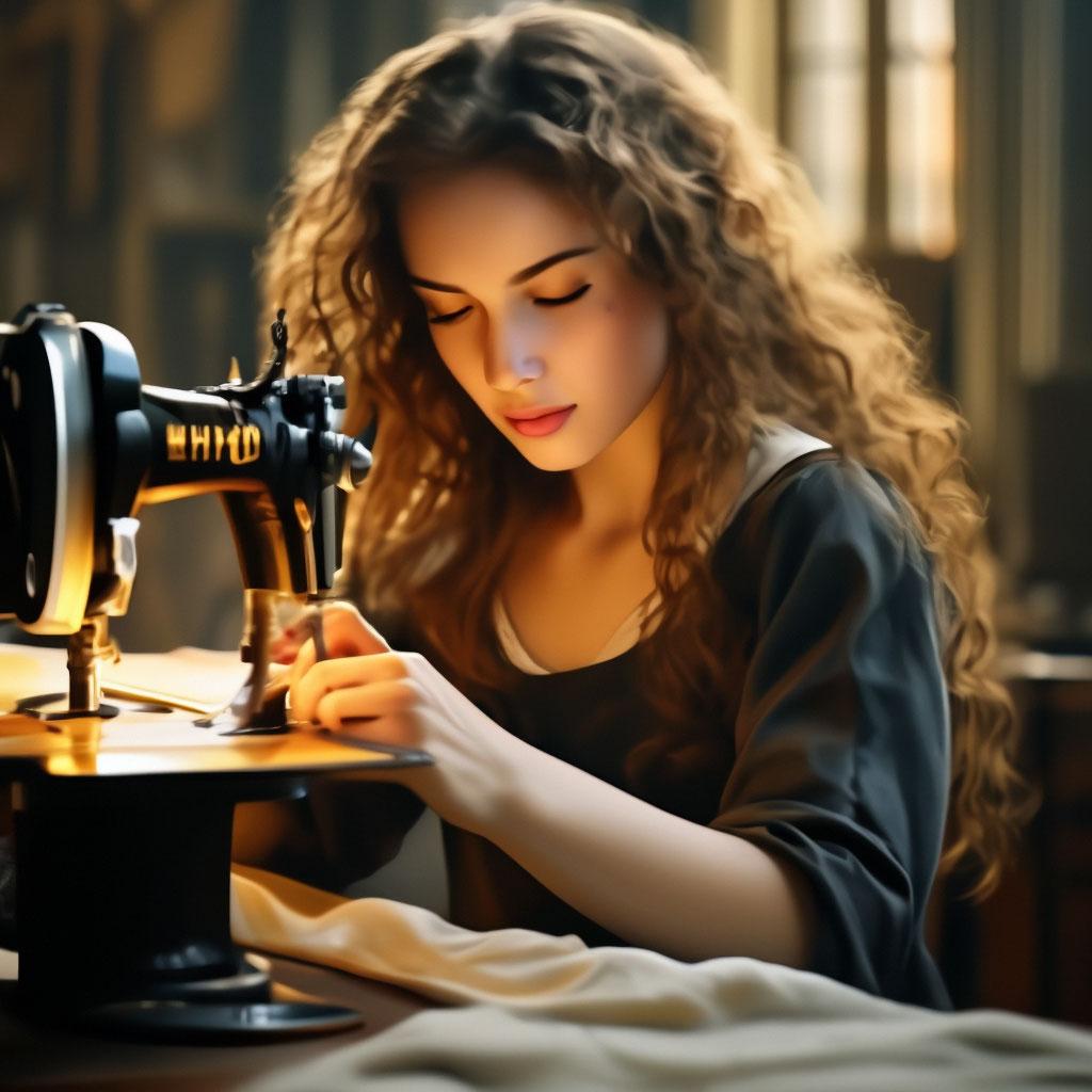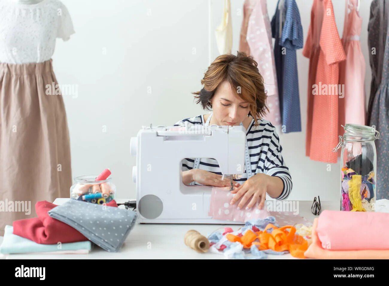 Девушка шьет