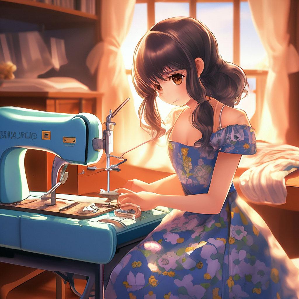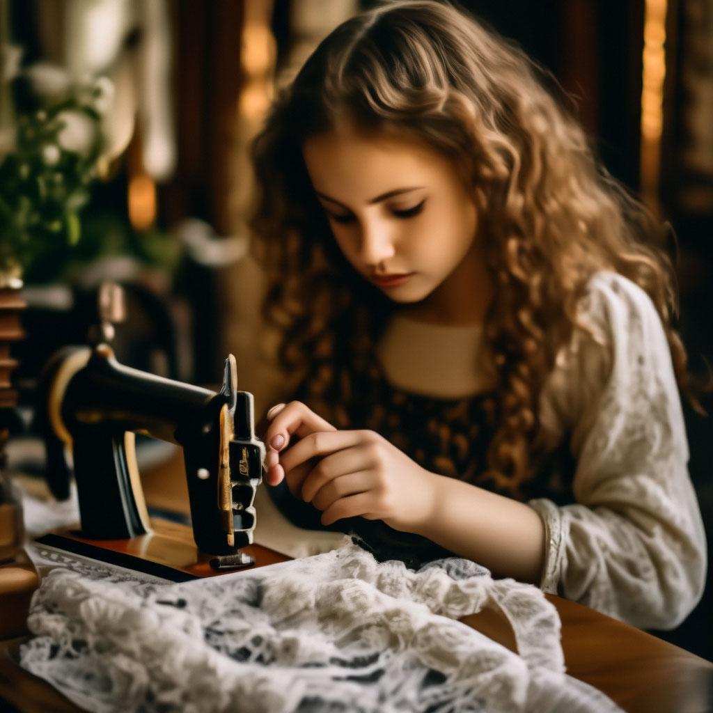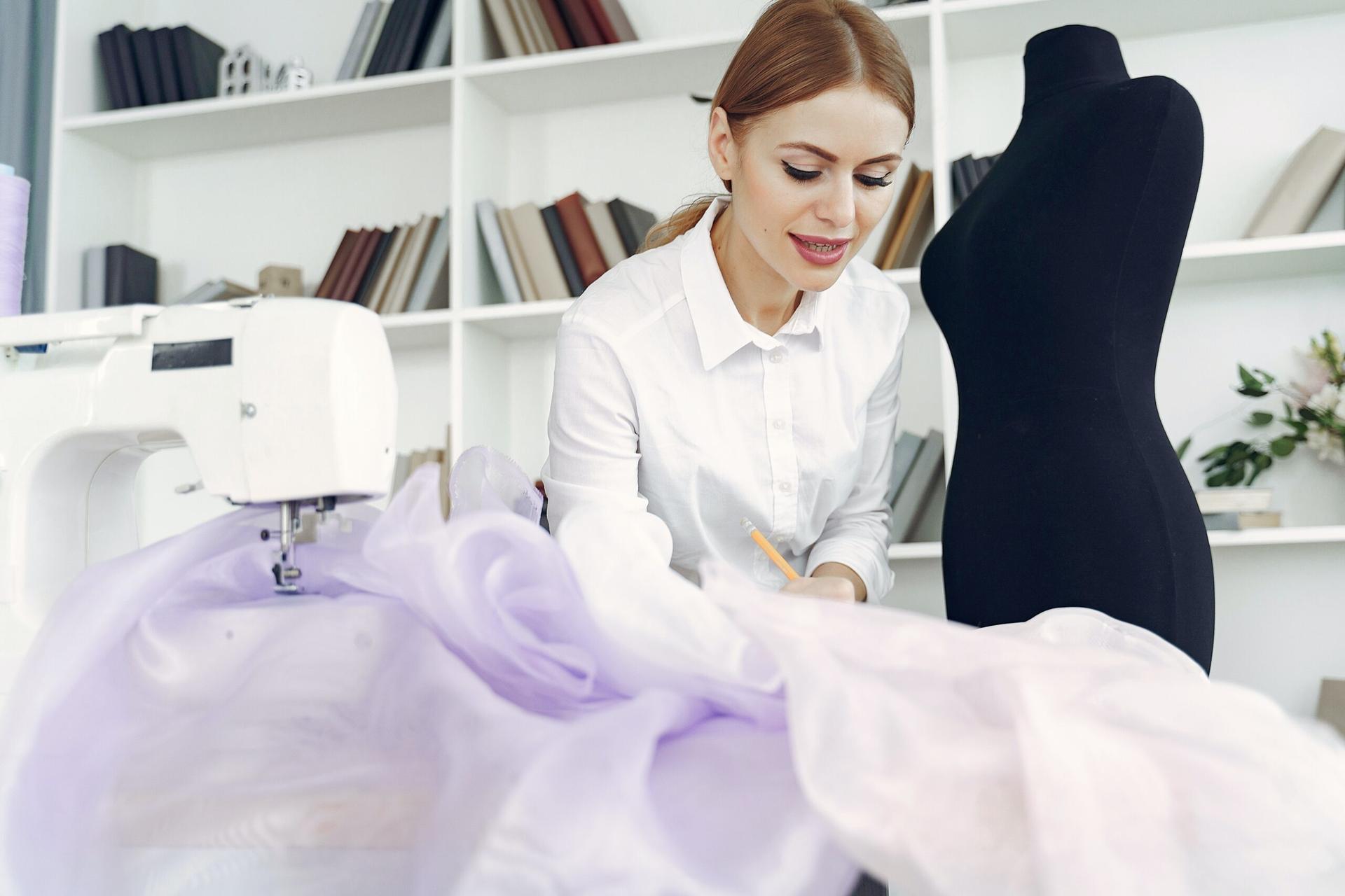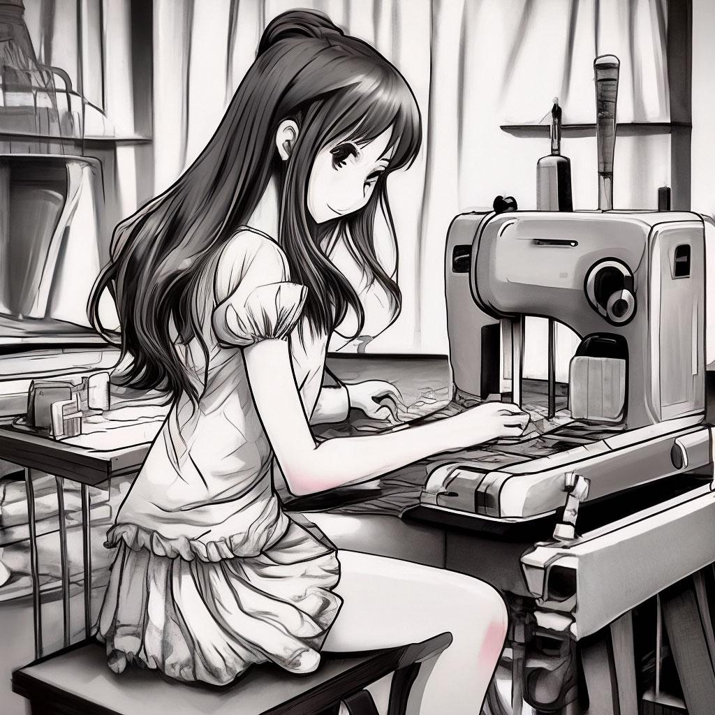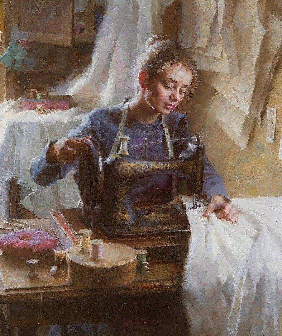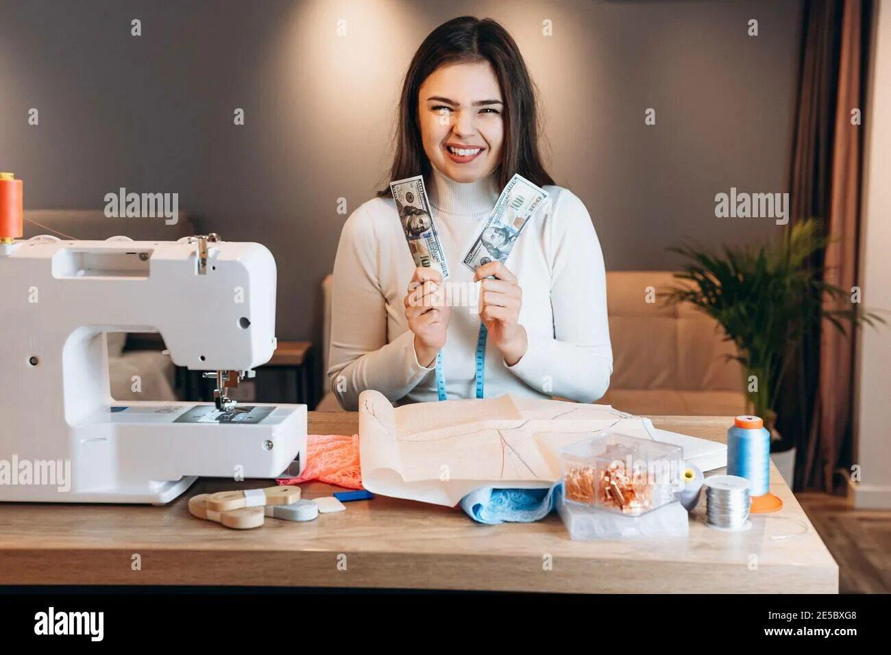 Девушка шьет