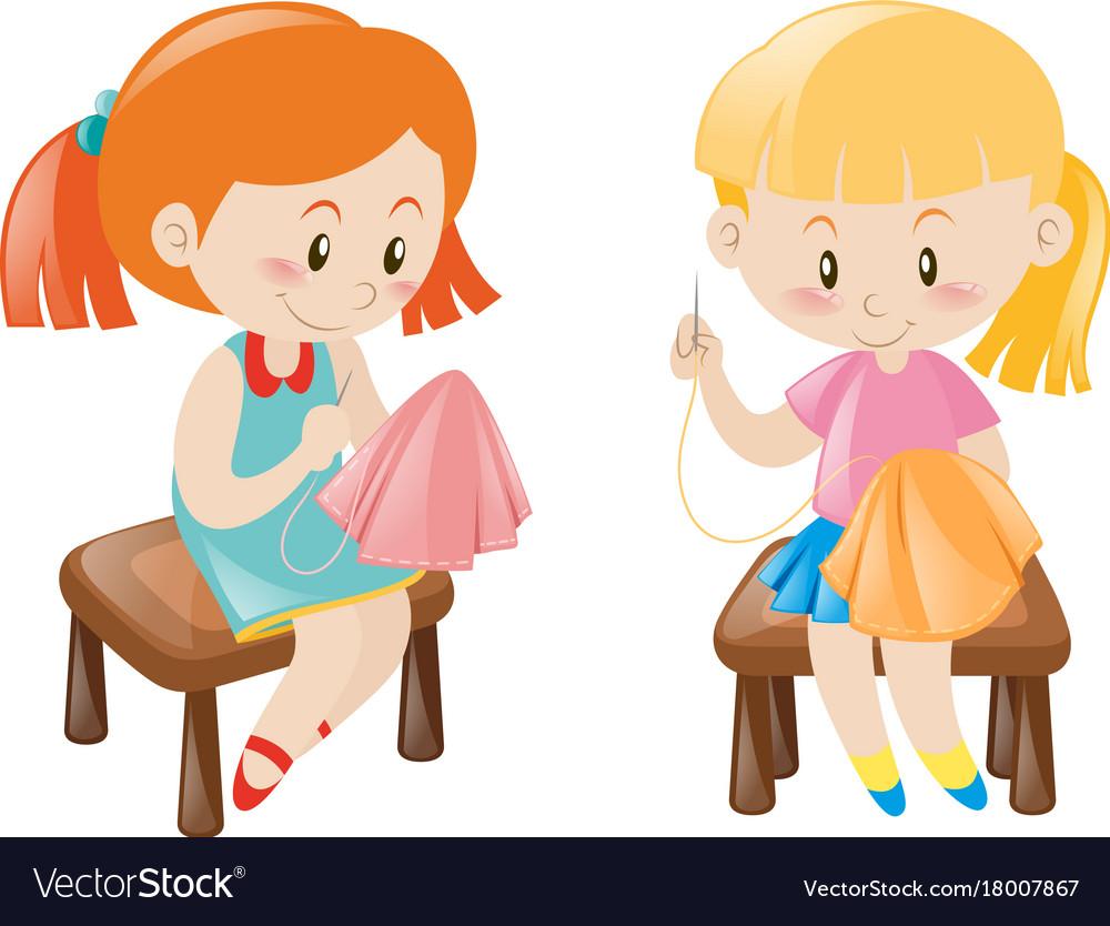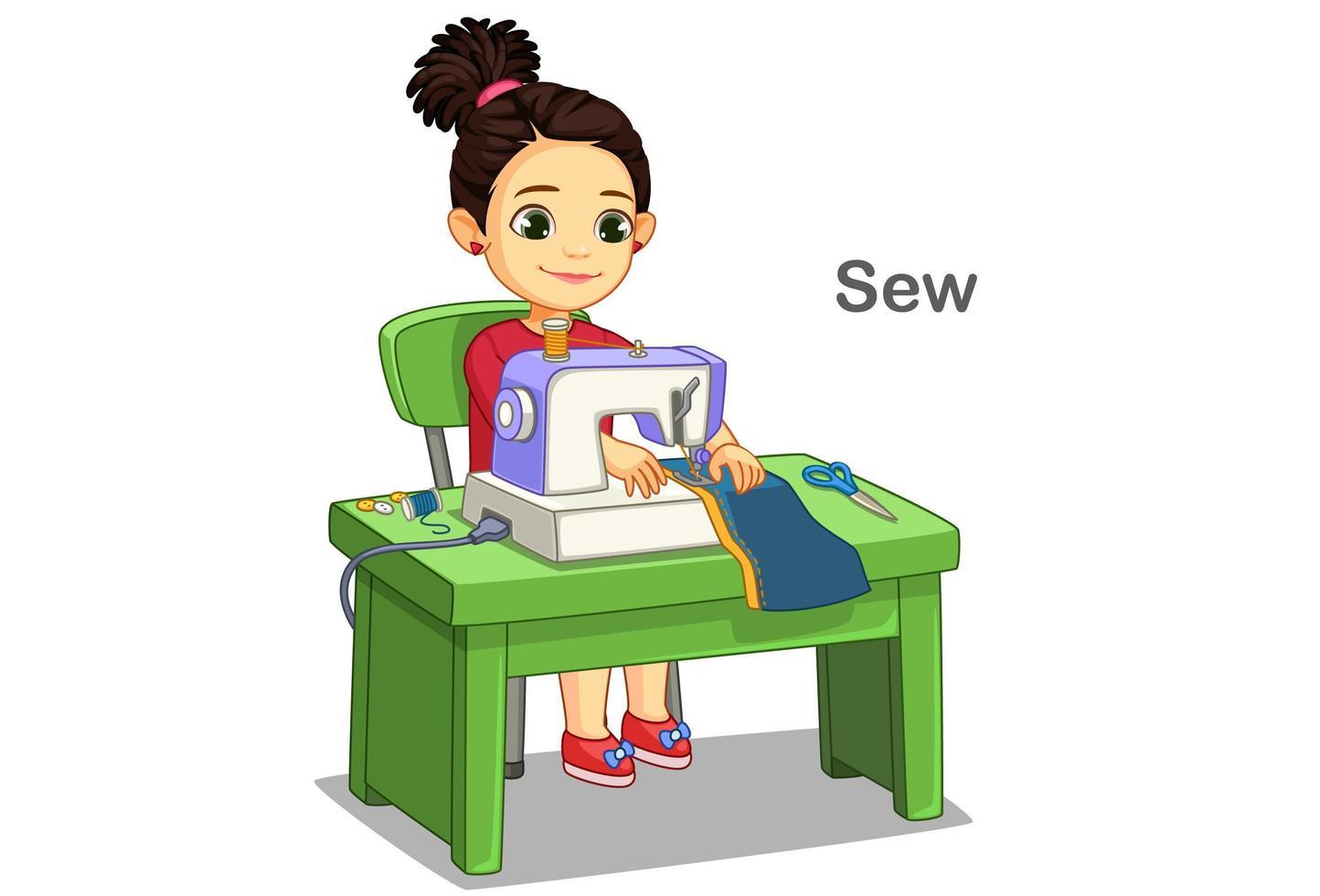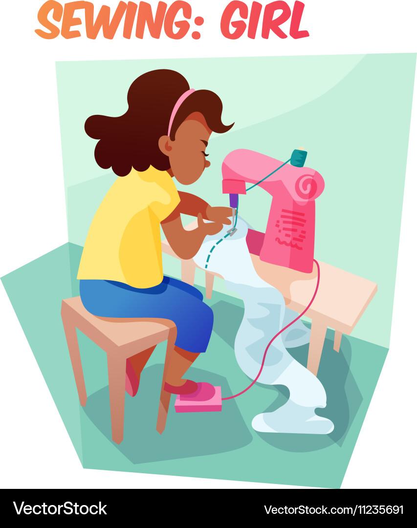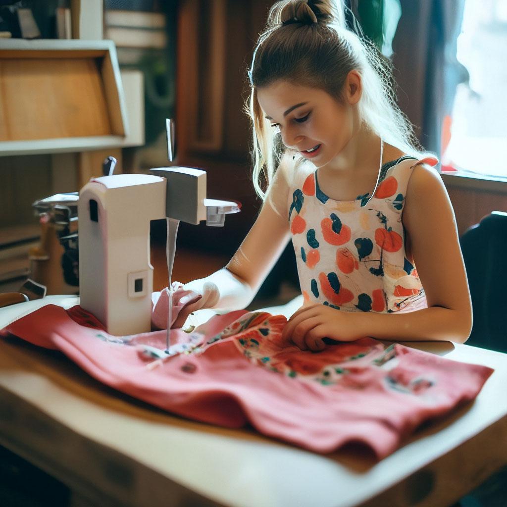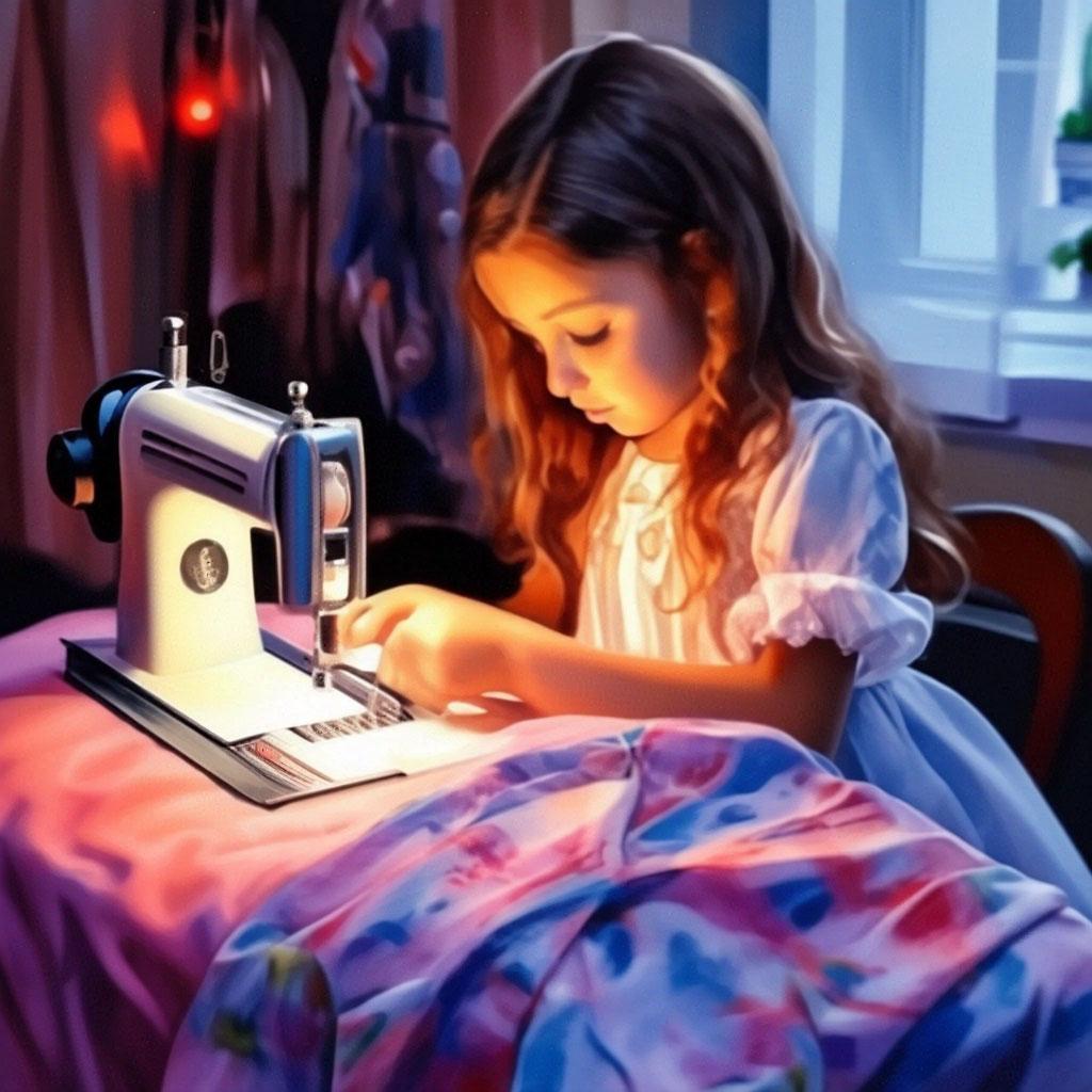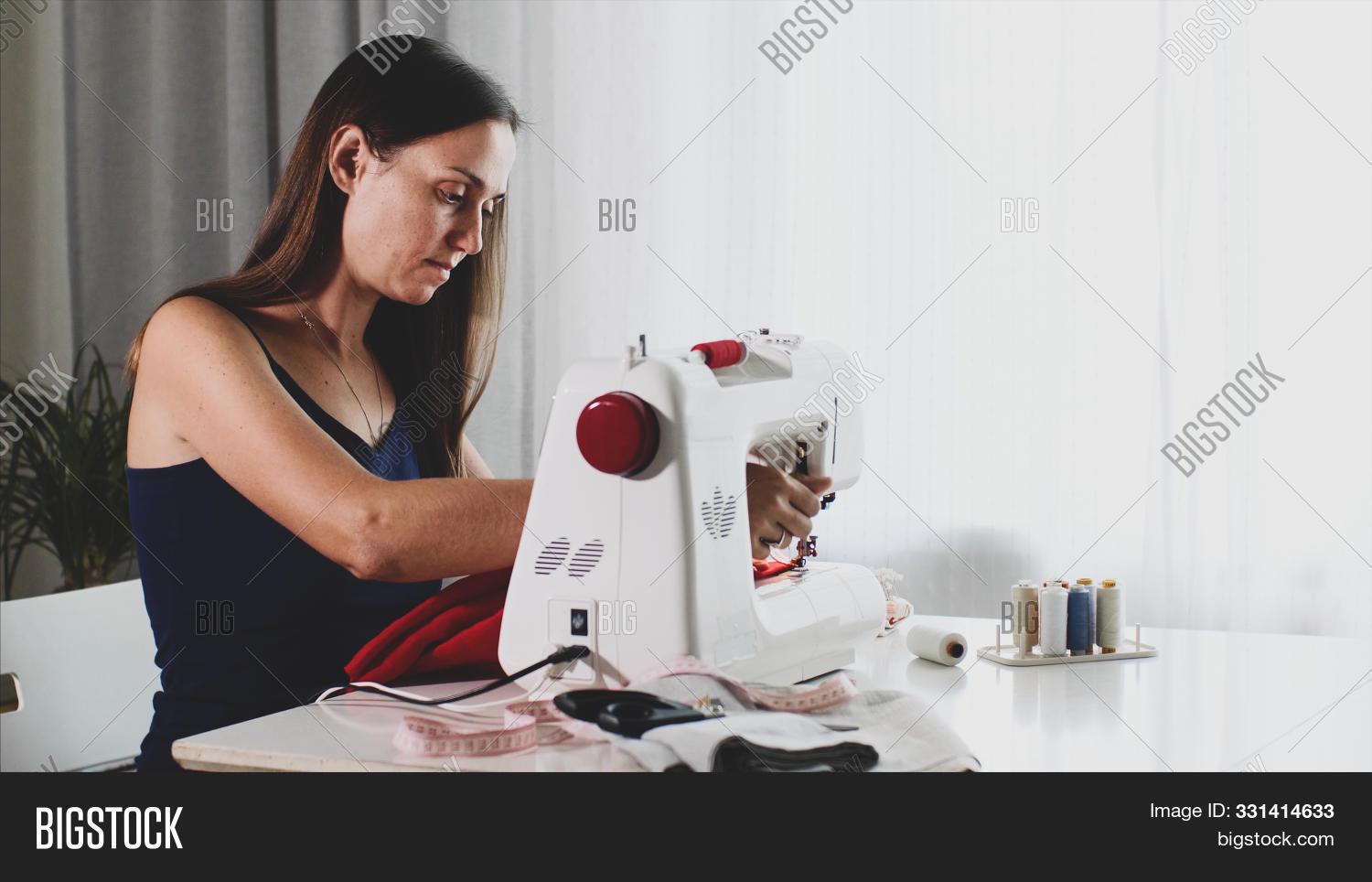 Девушка шьет