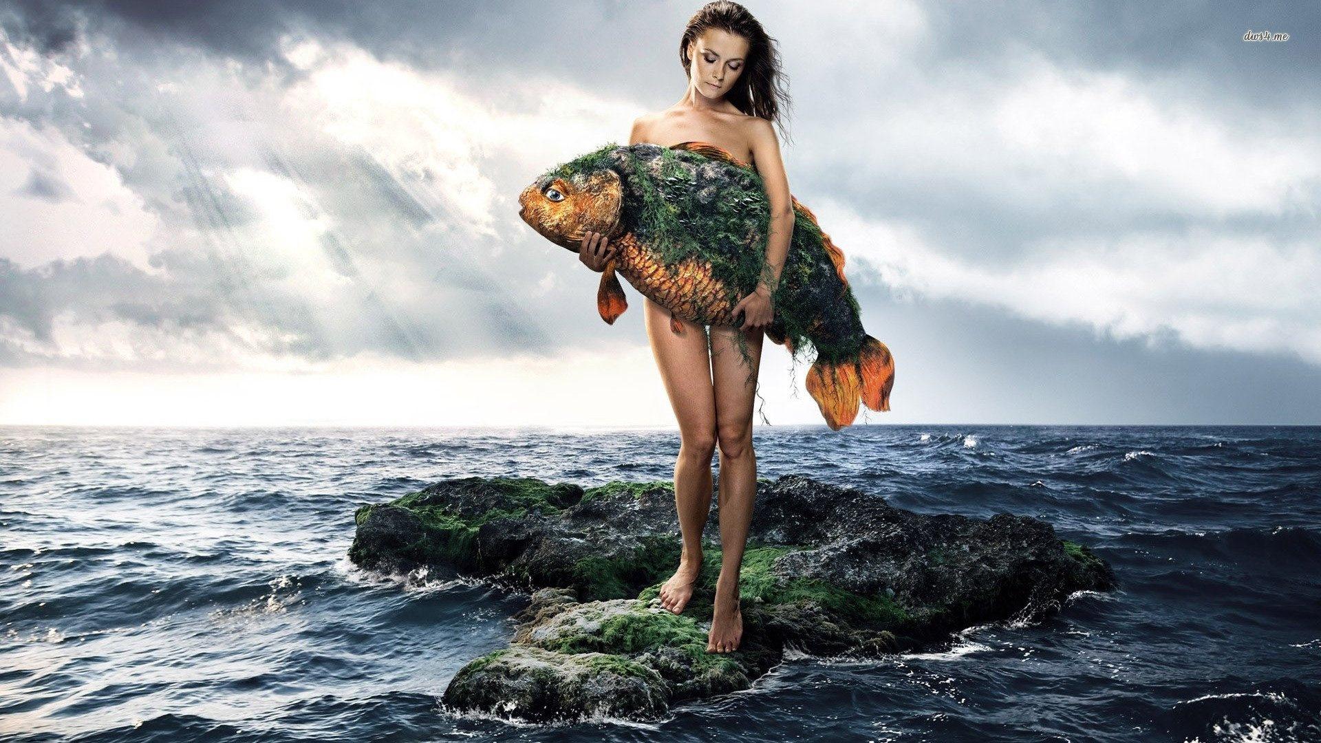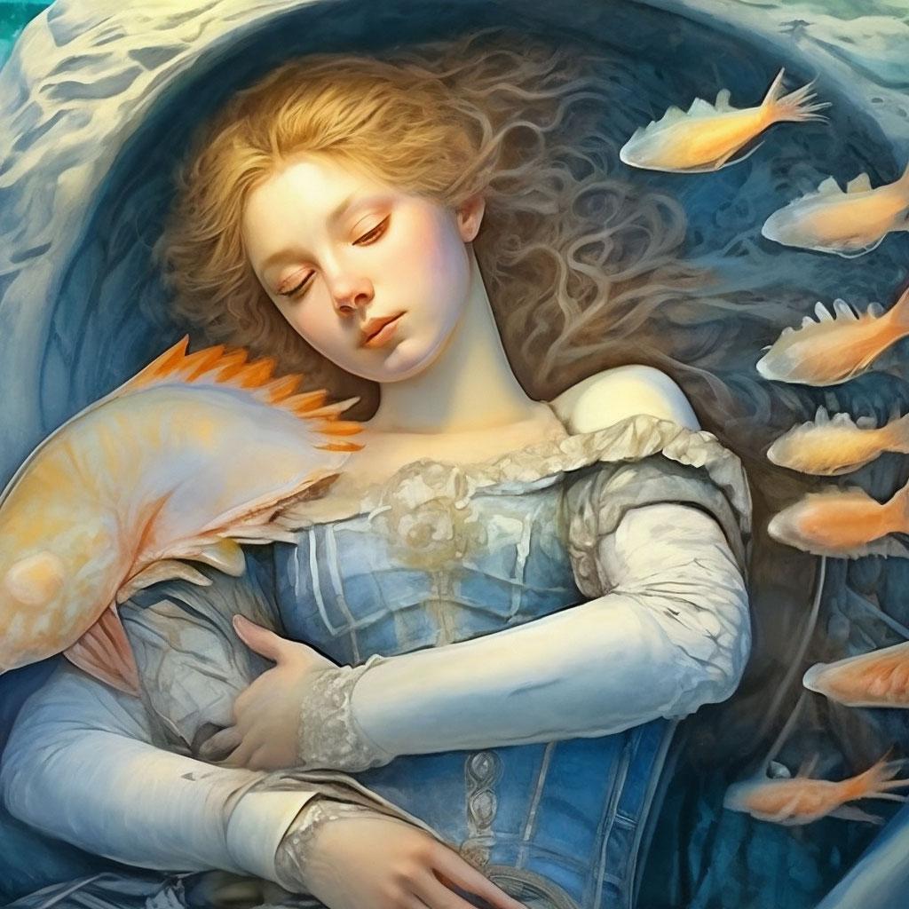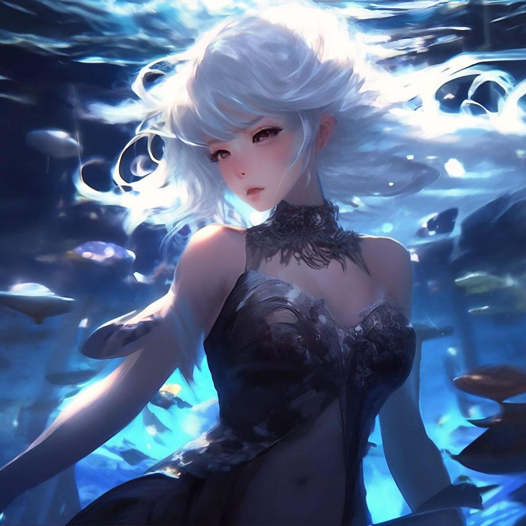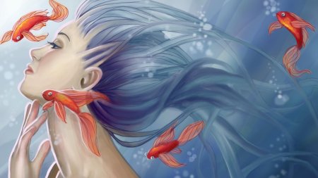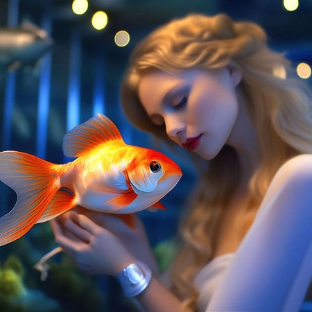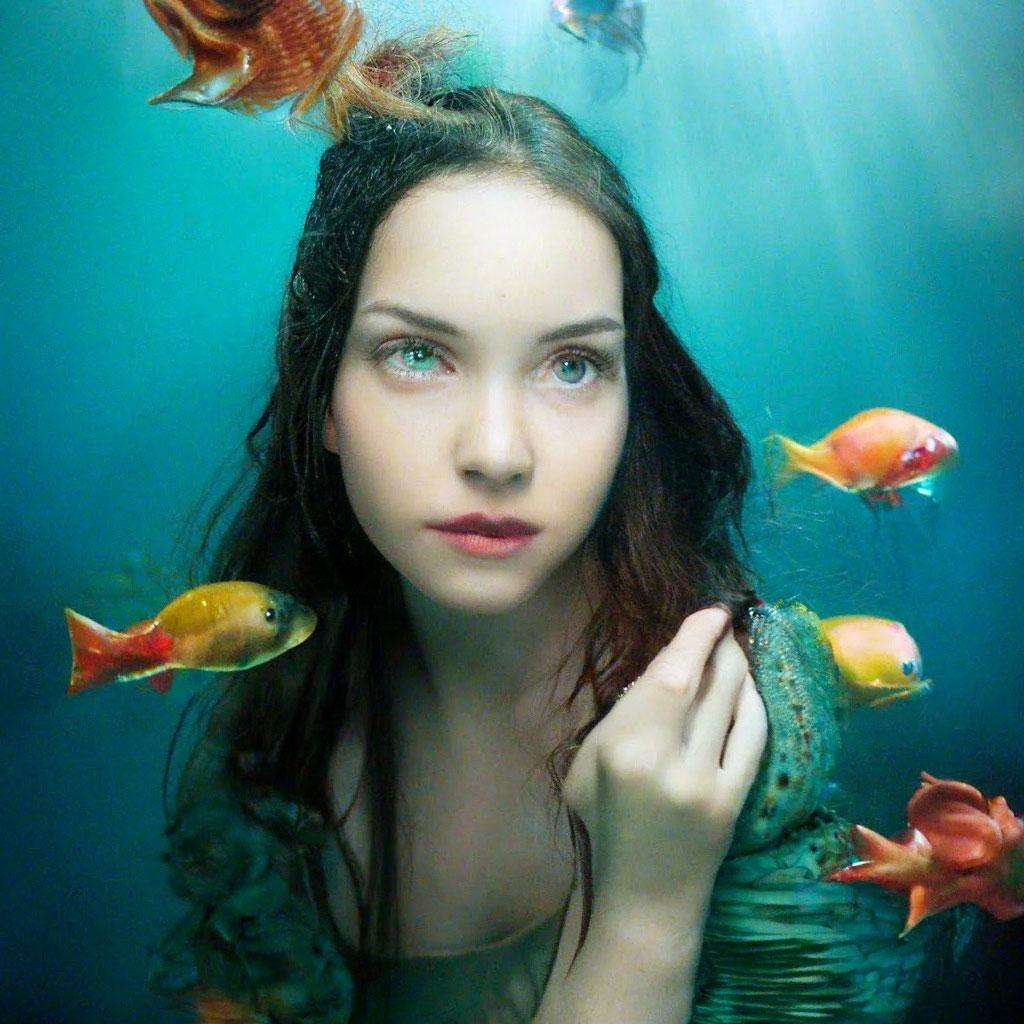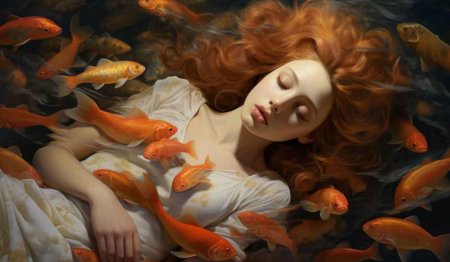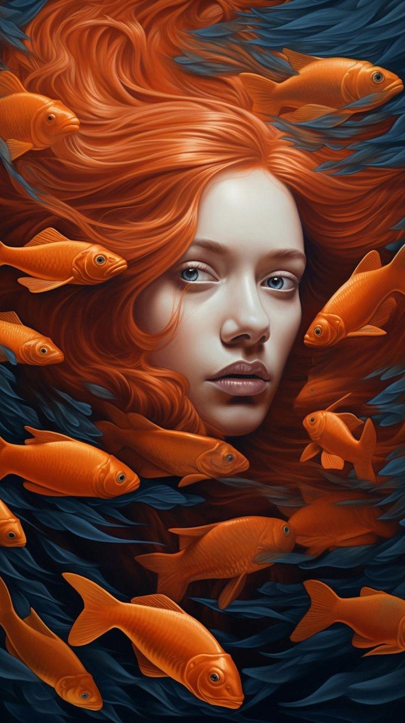Девушка-рыба - это фантастическое существо, соединяющее в себе человеческую красоту и морскую грацию. Она плавает в глубинах океана, её тело переливается всеми оттенками синего и зелёного. Чешуя на её коже блестит, словно драгоценные камни, а волосы развеваются в воде, как морские водоросли. Её глаза большие и выразительные, они словно хранят тайны морских глубин. Плавники на её теле позволяют ей легко скользить в воде, а хвост помогает ей развивать невероятную скорость. Эта девушка-рыба олицетворяет свободу и независимость, она не связана никакими условностями суши. В её движениях чувствуется природная грация и естественность, присущая всем обитателям моря. Она словно родилась в воде и никогда не знала других стихий.