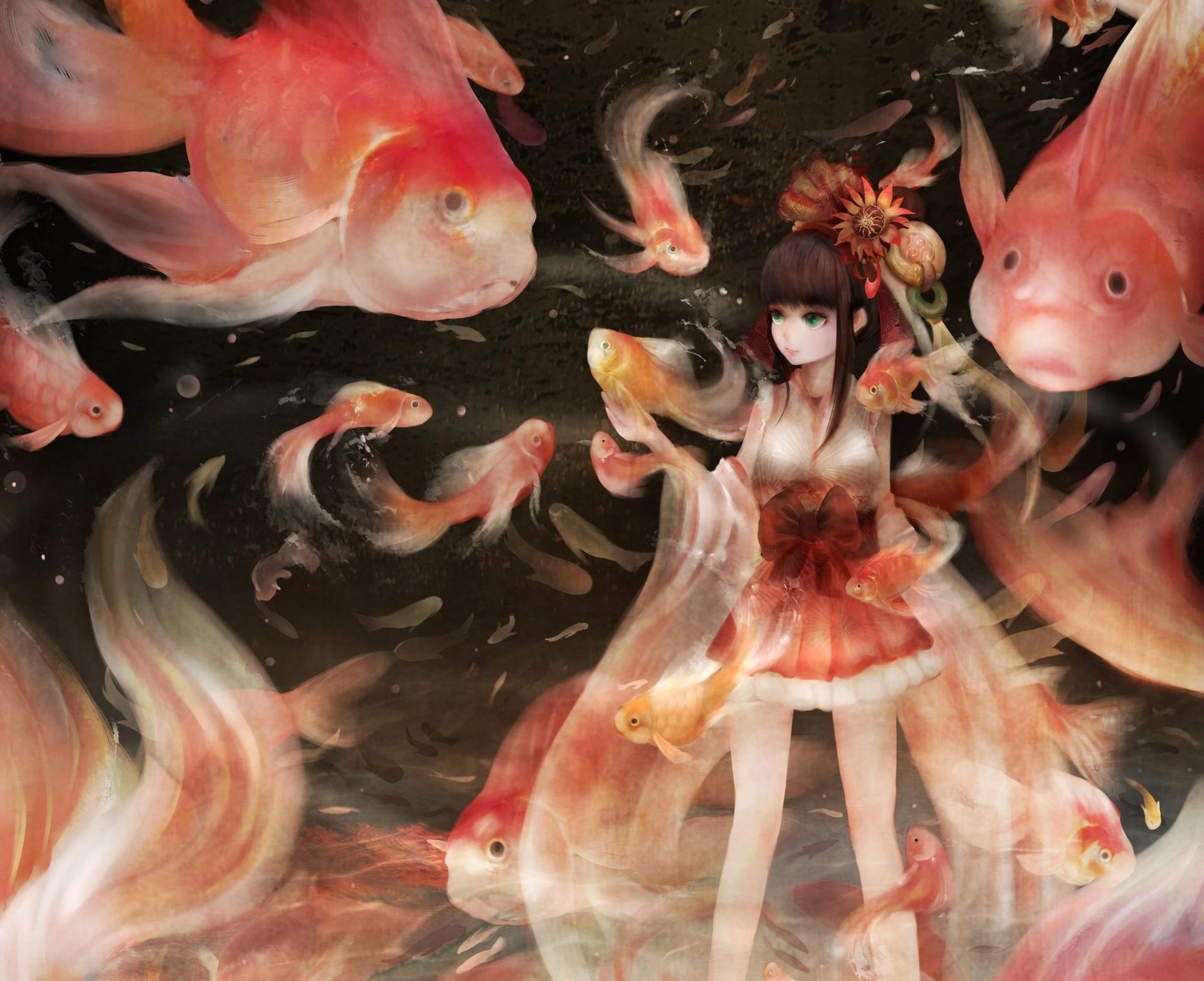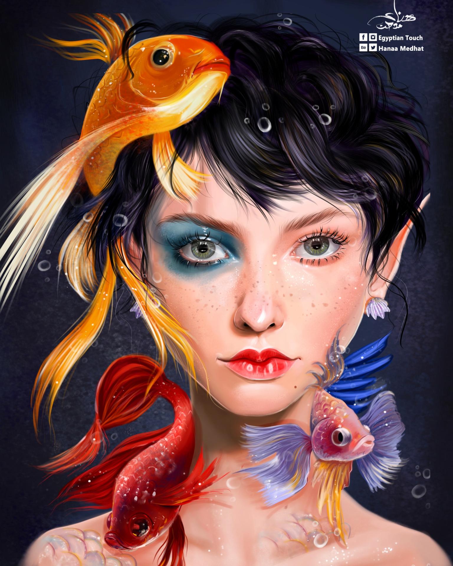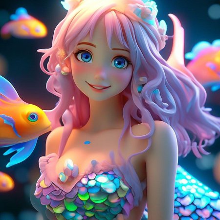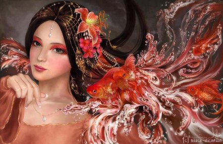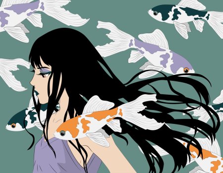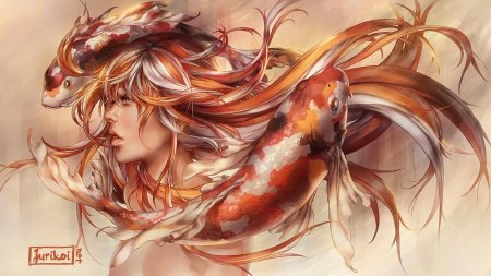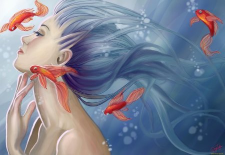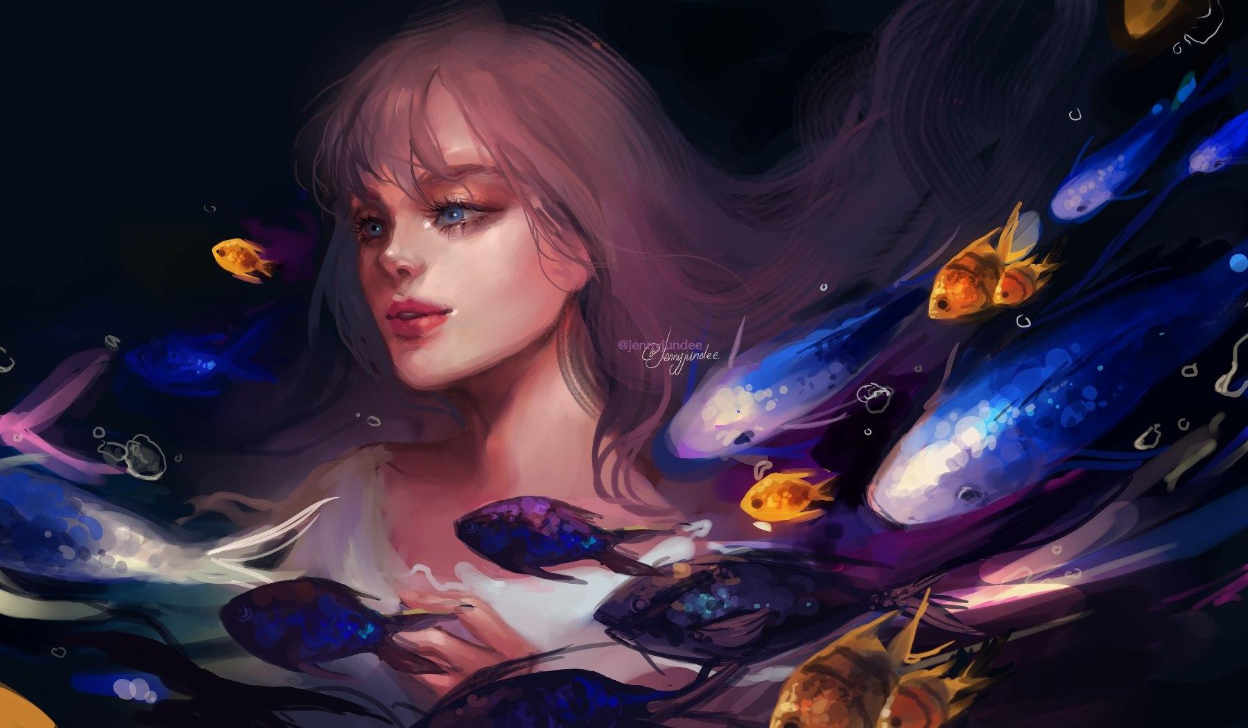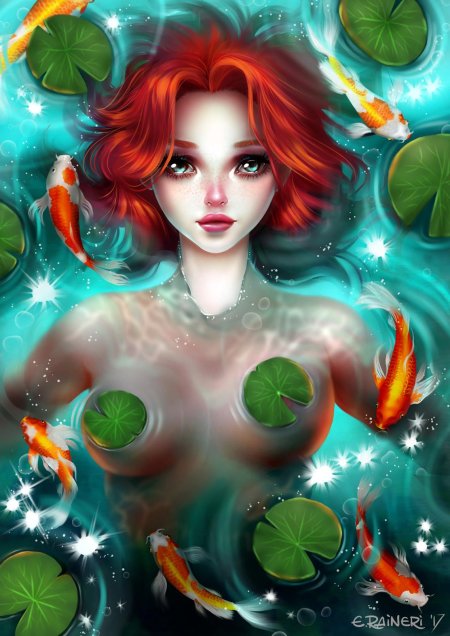 Девушка-рыба - это фантастическое существо, соединяющее в себе человеческую красоту и морскую грацию. Она плавает в глубинах океана, её тело переливается всеми оттенками синего и зелёного. Чешуя на её коже блестит, словно драгоценные камни, а волосы развеваются в воде, как морские водоросли. Её глаза большие и выразительные, они словно хранят тайны морских глубин. Плавники на её теле позволяют ей легко скользить в воде, а хвост помогает ей развивать невероятную скорость. Эта девушка-рыба олицетворяет свободу и независимость, она не связана никакими условностями суши. В её движениях чувствуется природная грация и естественность, присущая всем обитателям моря. Она словно родилась в воде и никогда не знала других стихий.