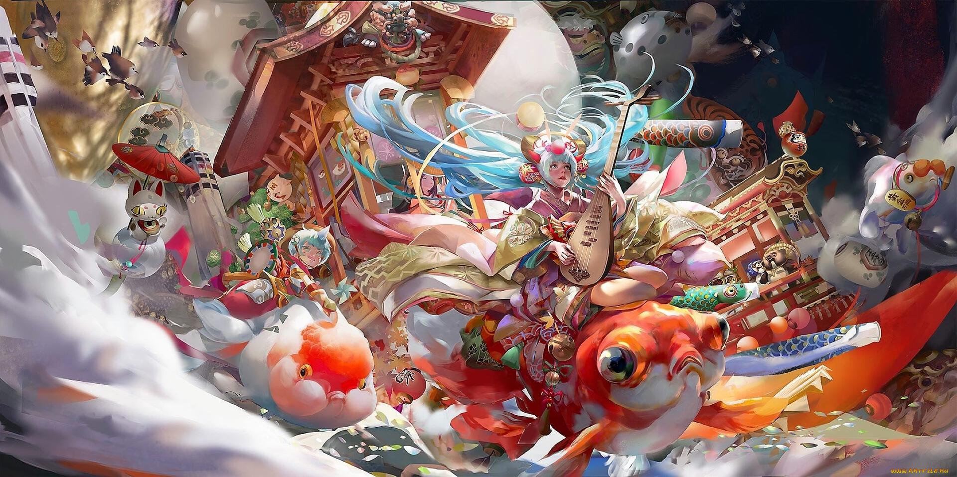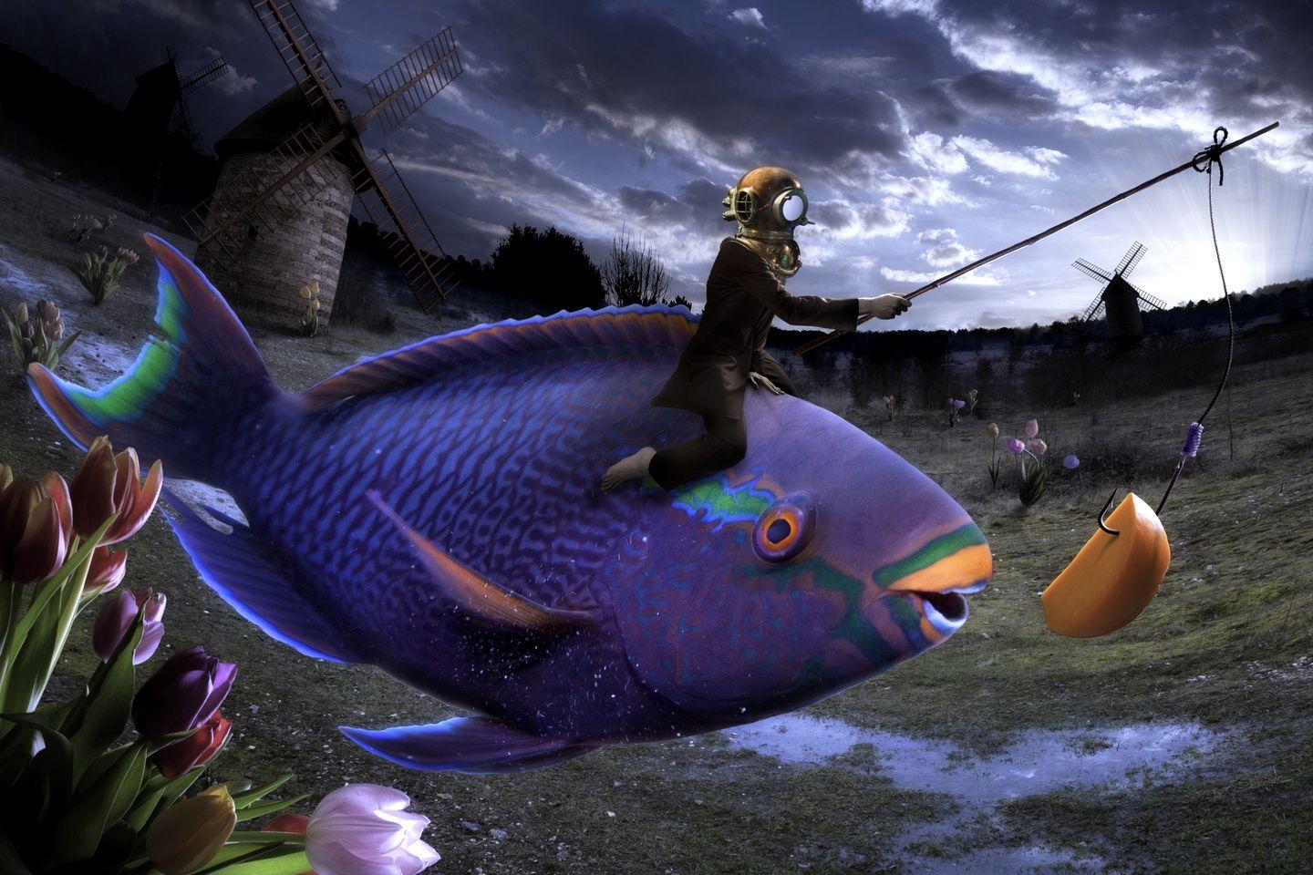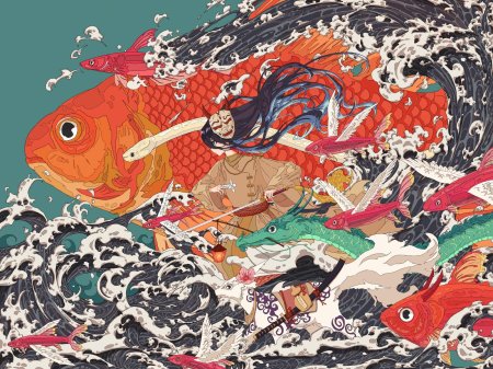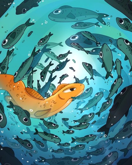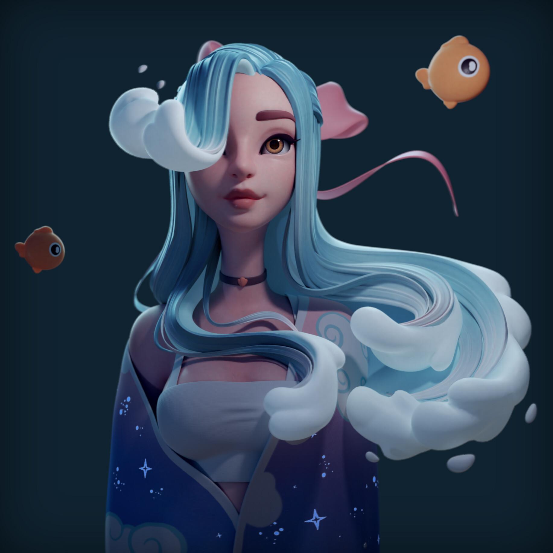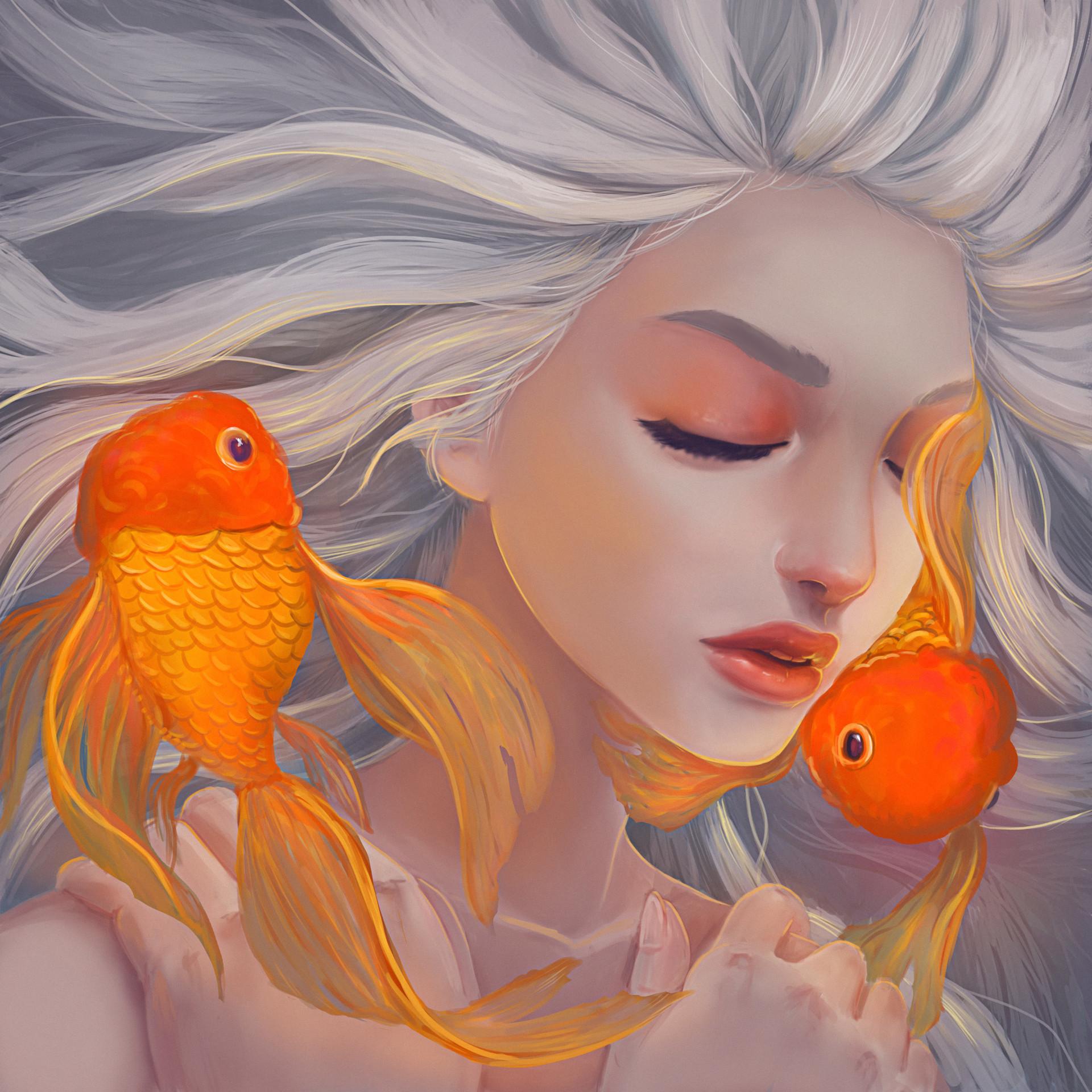 Девушка-рыба - это фантастическое существо, соединяющее в себе человеческую красоту и морскую грацию. Она плавает в глубинах океана, её тело переливается всеми оттенками синего и зелёного. Чешуя на её коже блестит, словно драгоценные камни, а волосы развеваются в воде, как морские водоросли. Её глаза большие и выразительные, они словно хранят тайны морских глубин. Плавники на её теле позволяют ей легко скользить в воде, а хвост помогает ей развивать невероятную скорость. Эта девушка-рыба олицетворяет свободу и независимость, она не связана никакими условностями суши. В её движениях чувствуется природная грация и естественность, присущая всем обитателям моря. Она словно родилась в воде и никогда не знала других стихий.