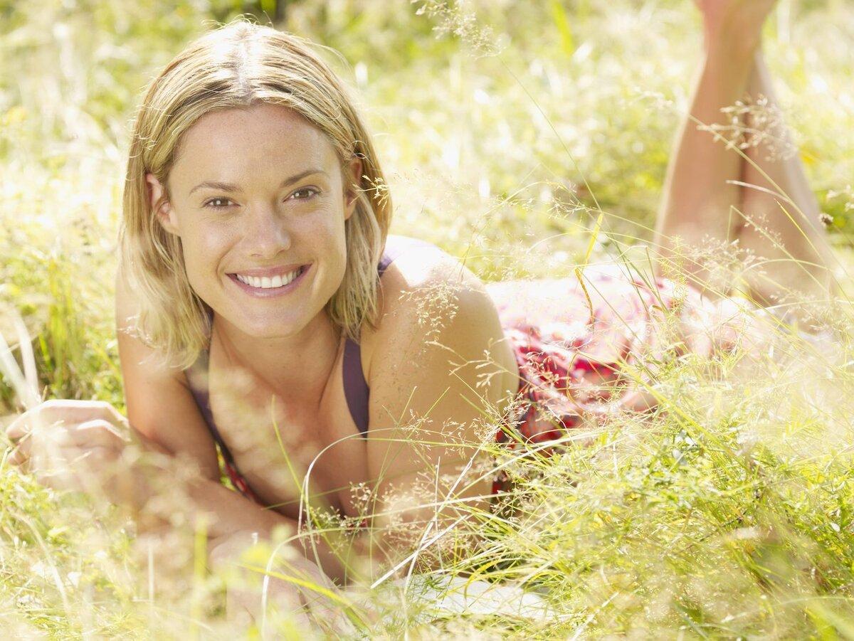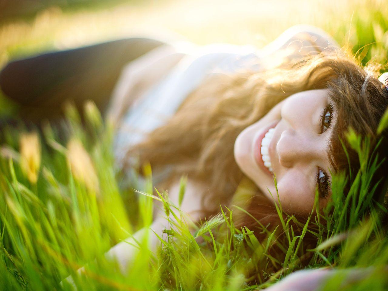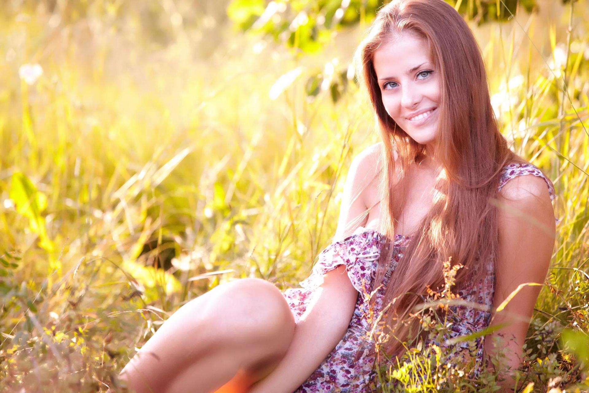 Девушка улыбается на природе