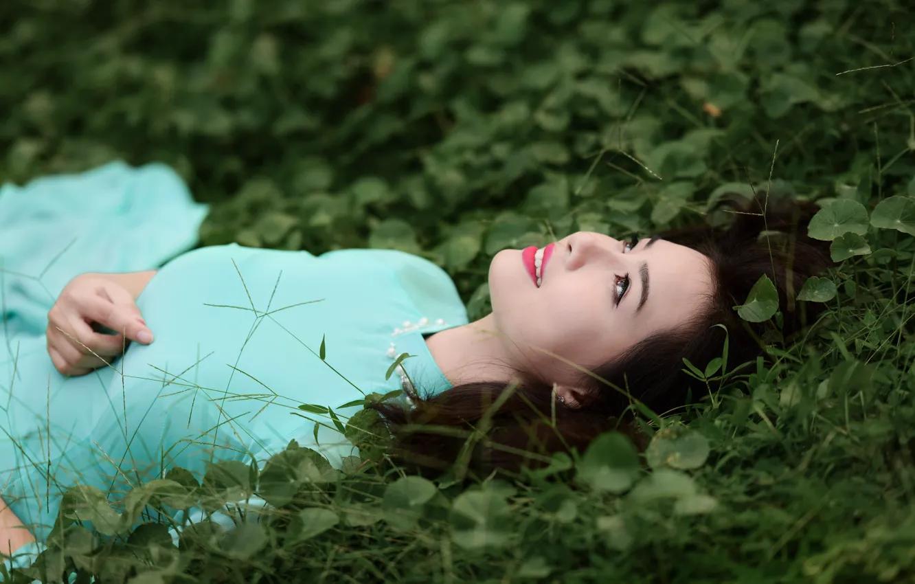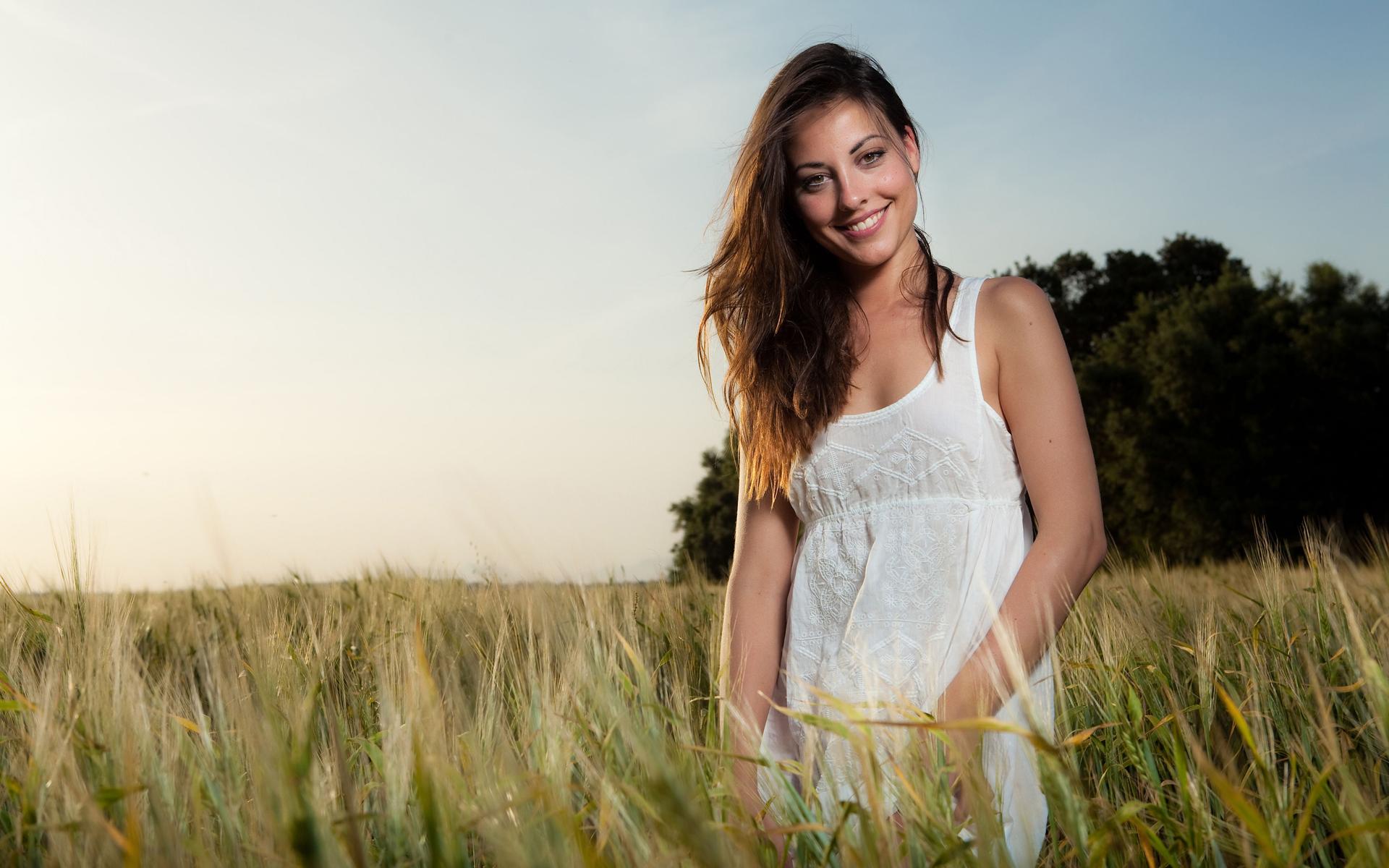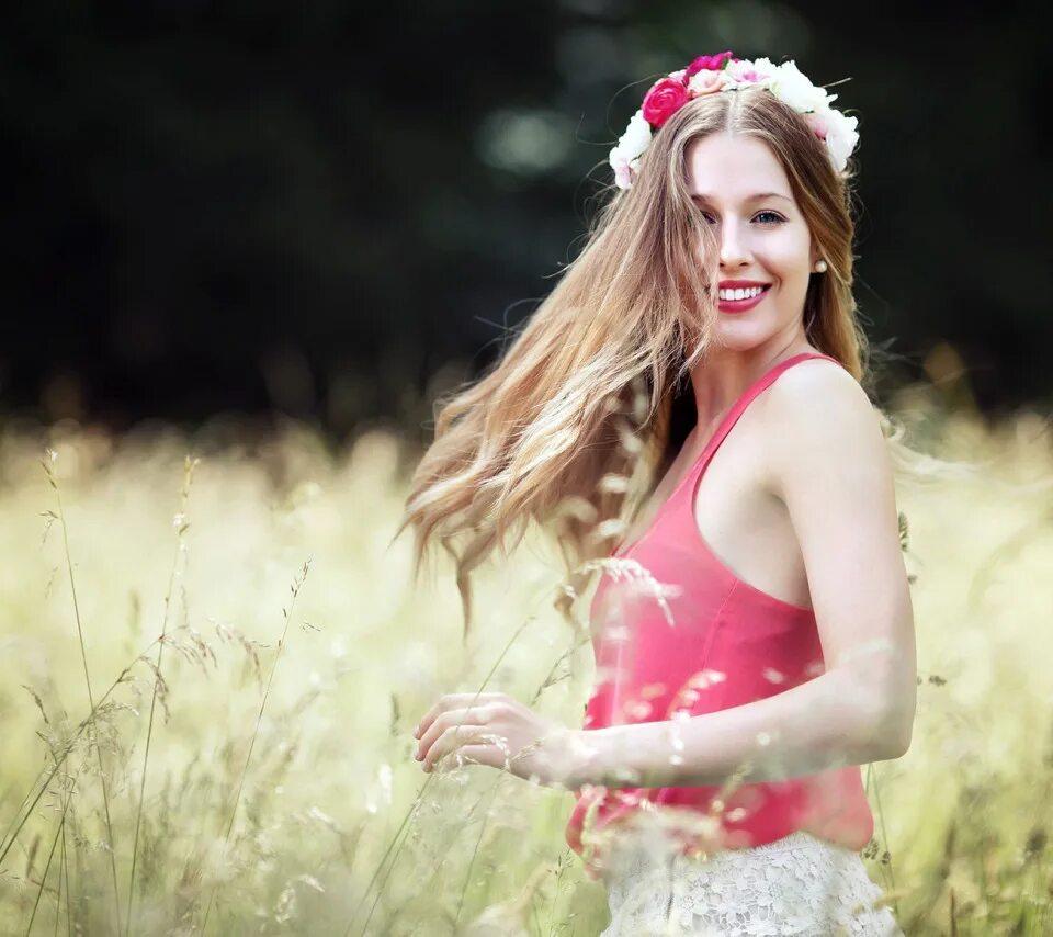 Девушка улыбается на природе