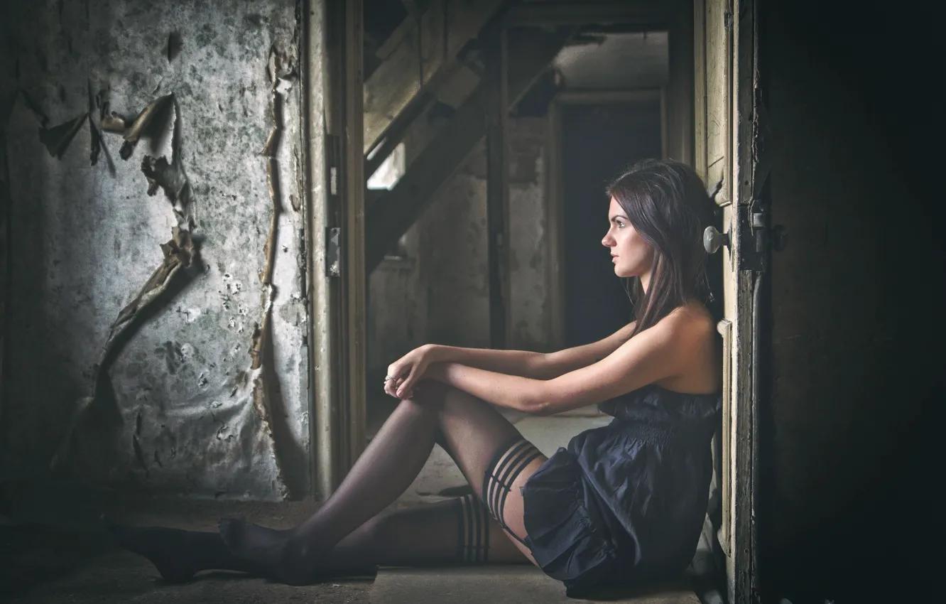 Девушка в чулках и платье