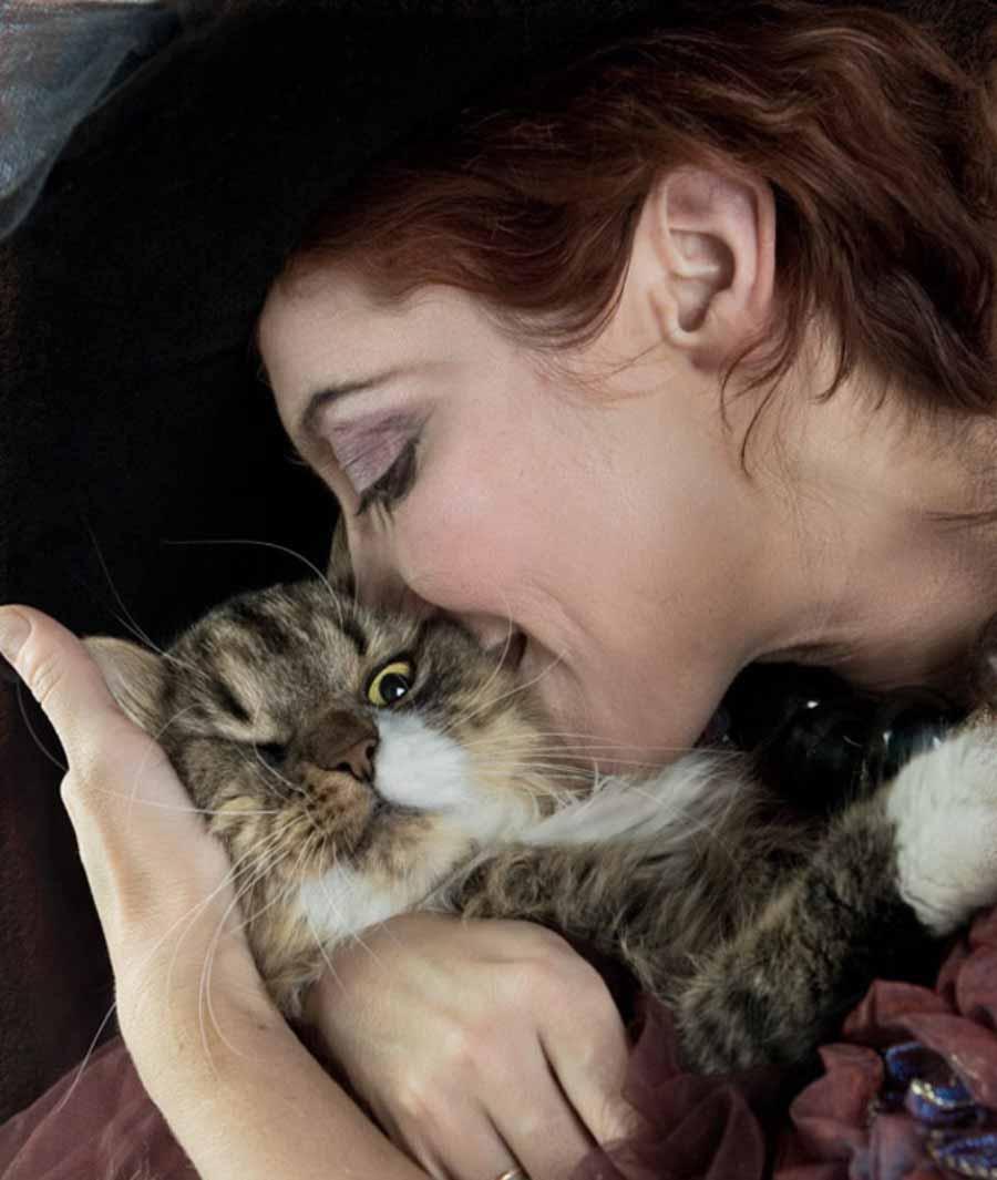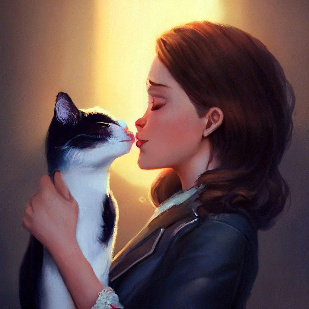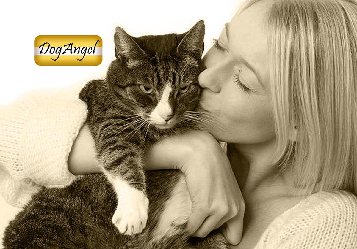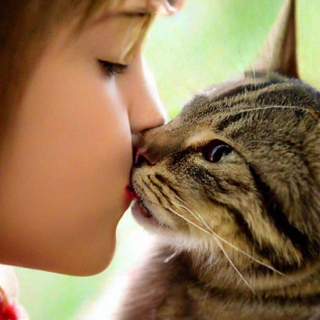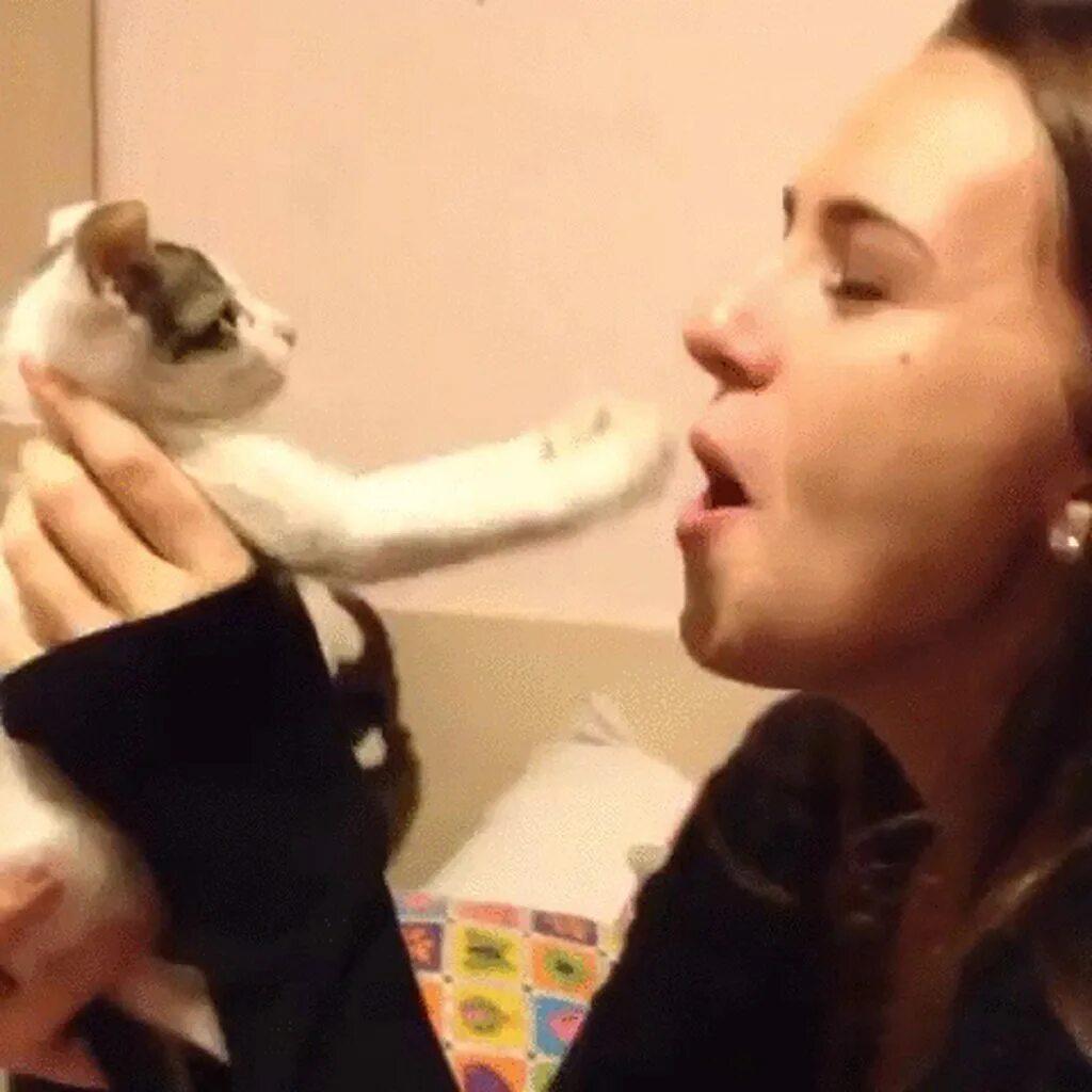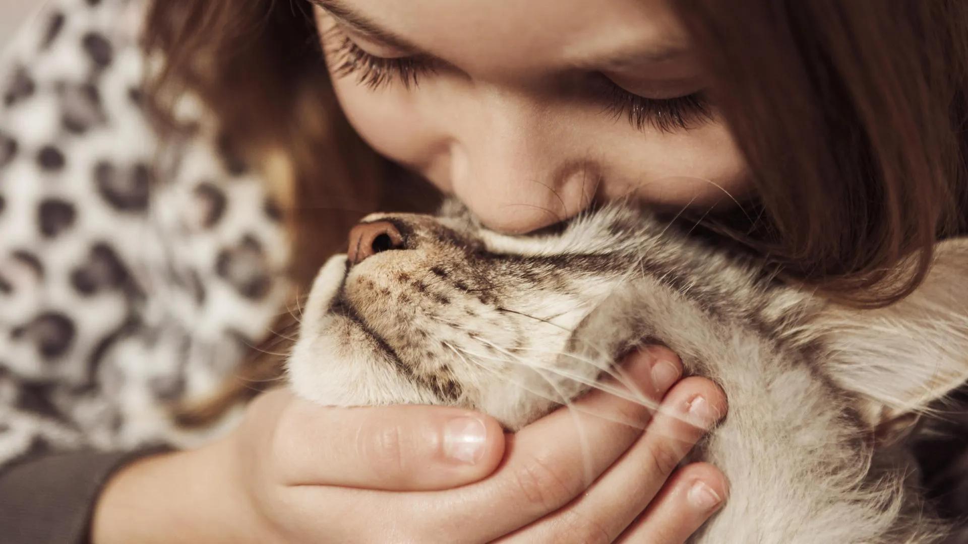 Девушка целует кота
