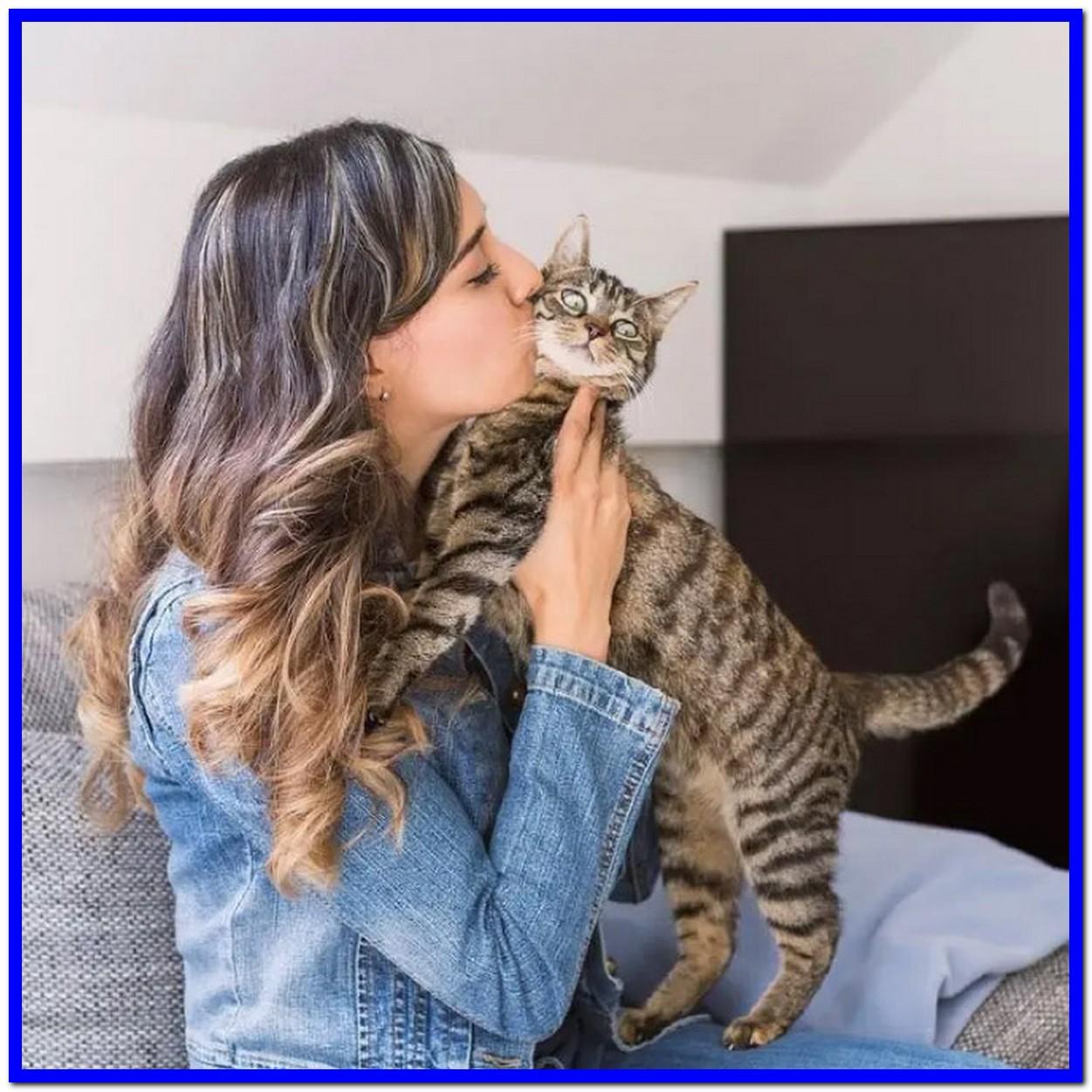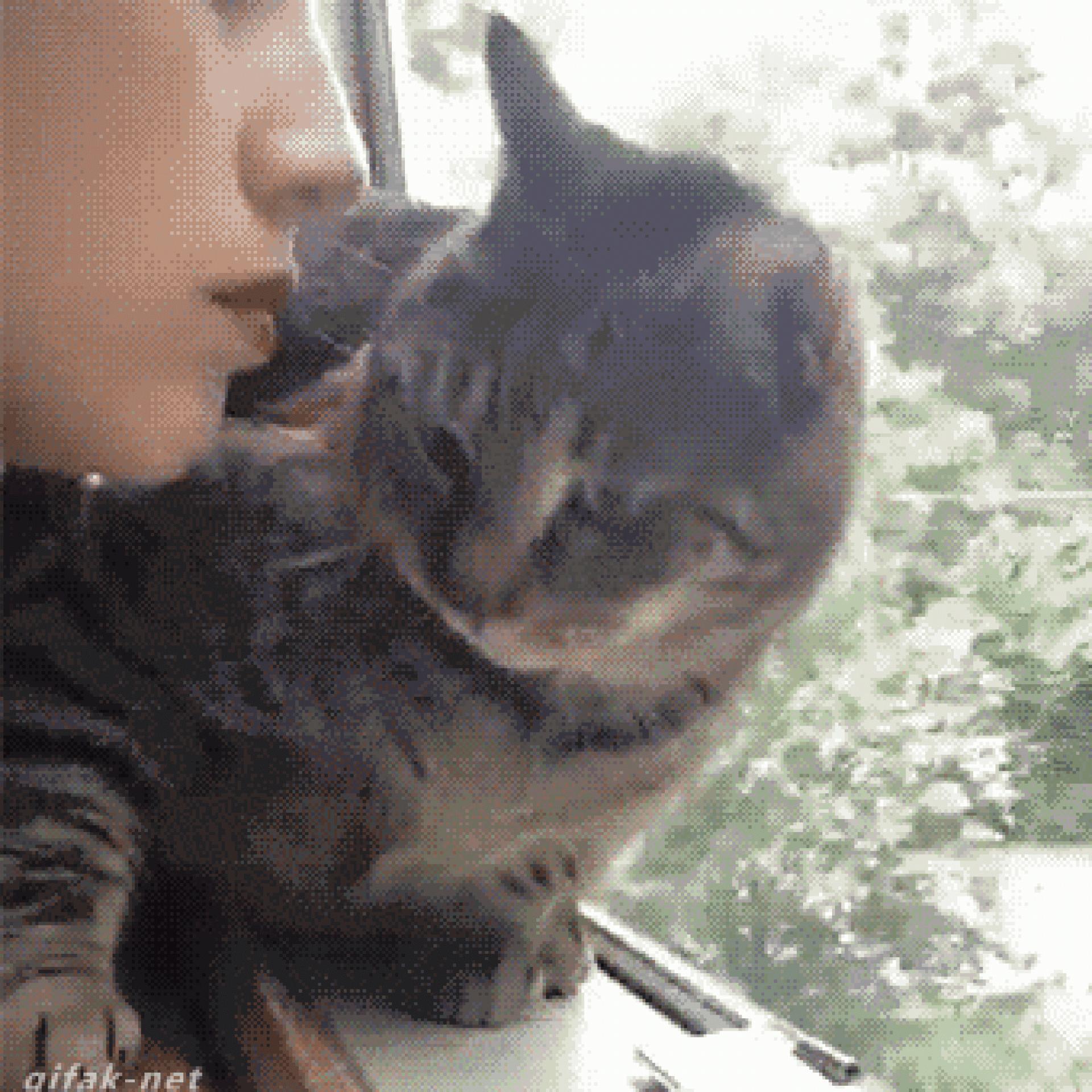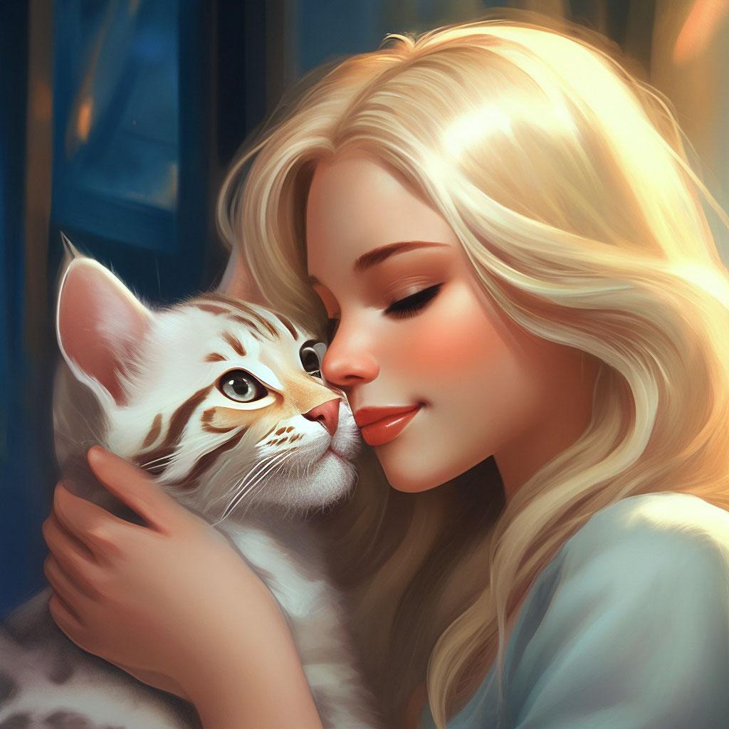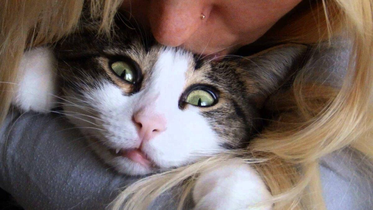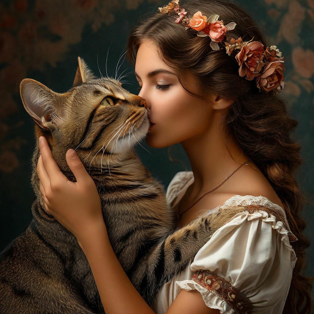 Девушка целует кота