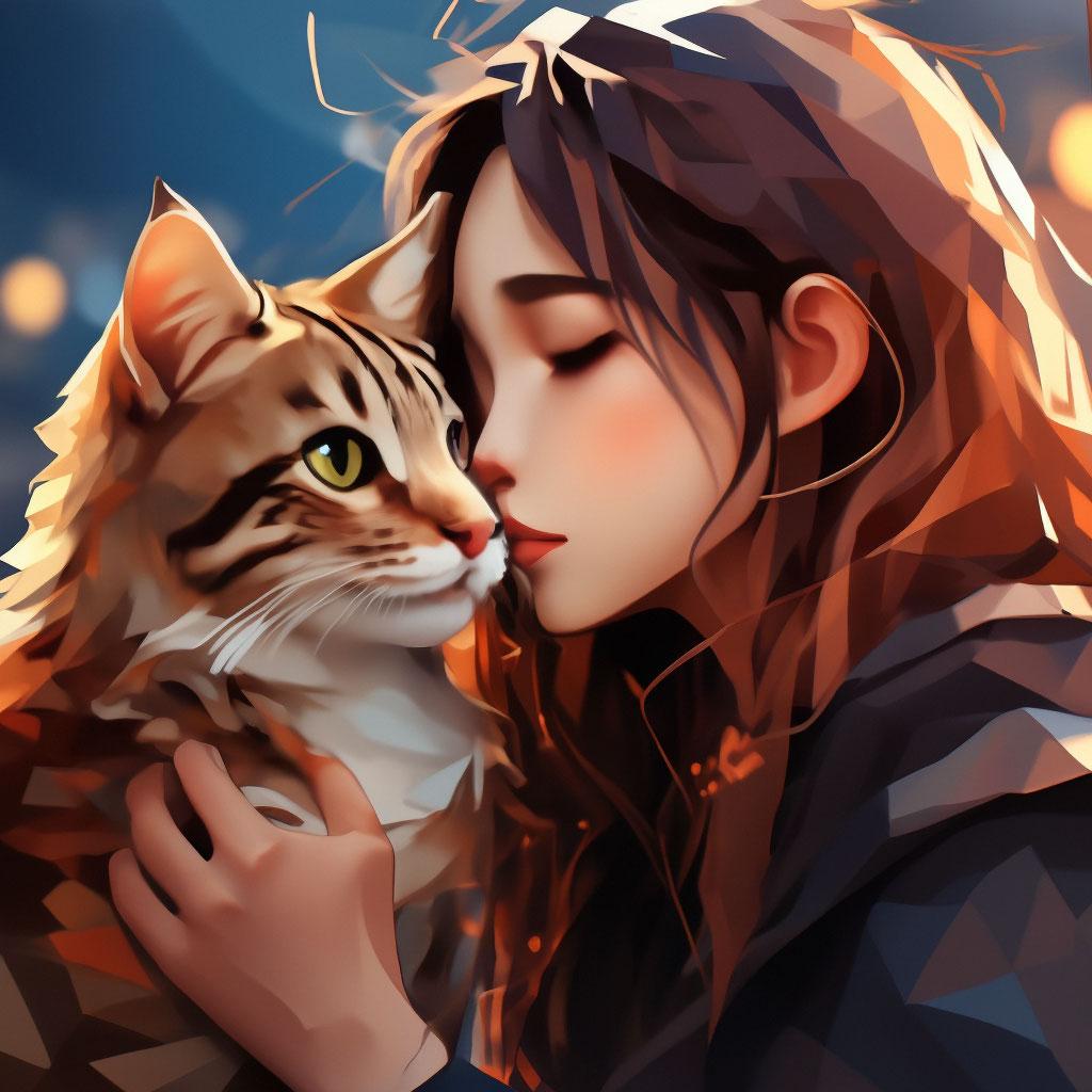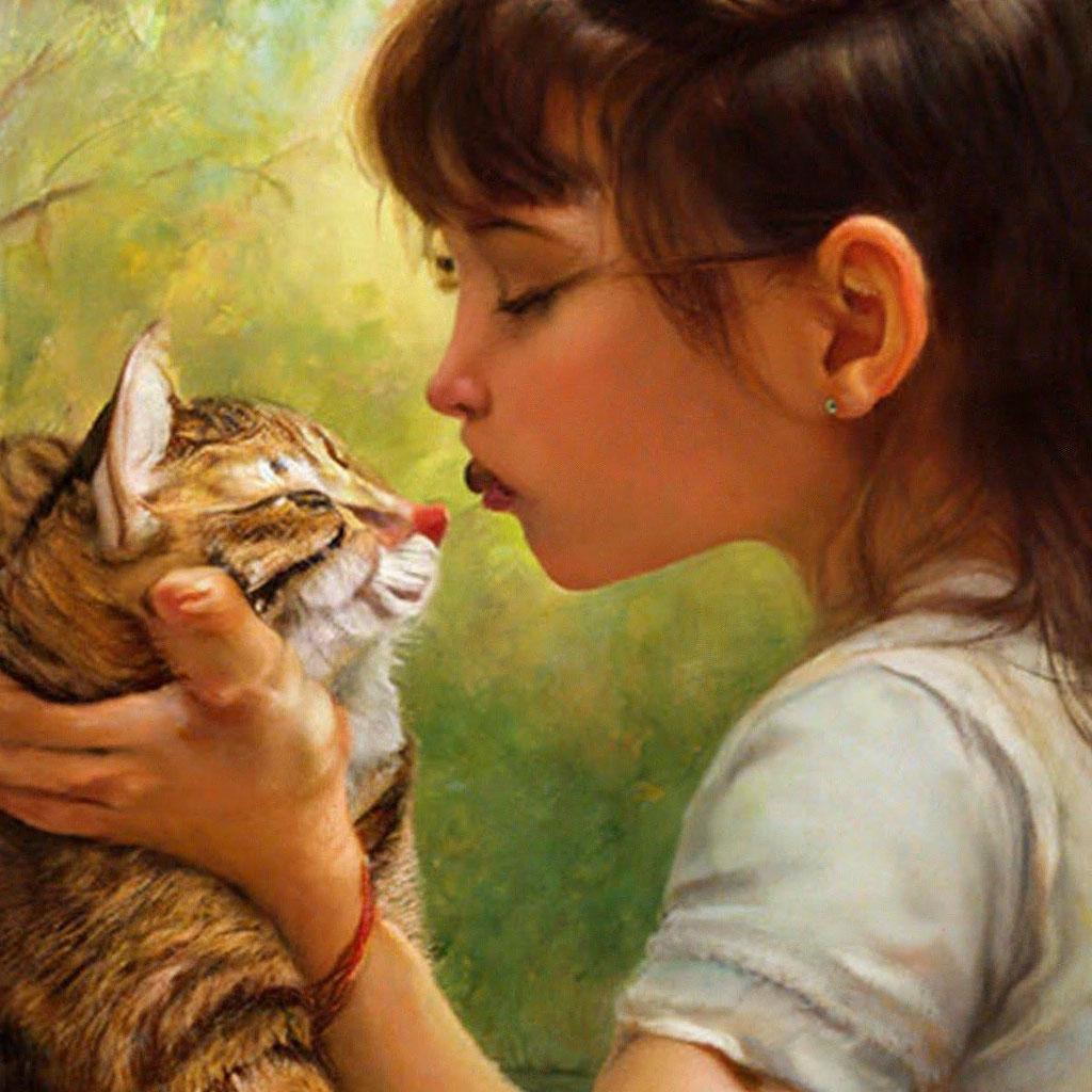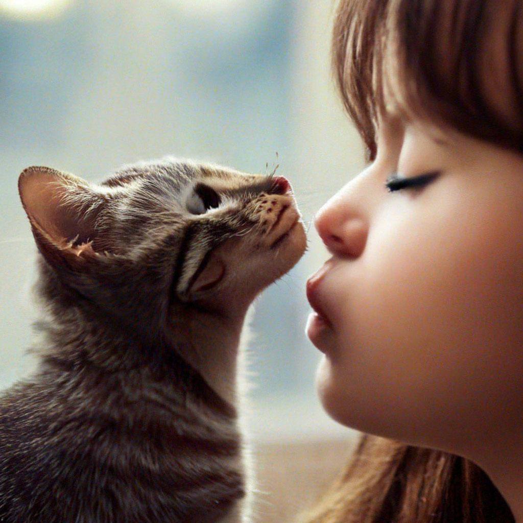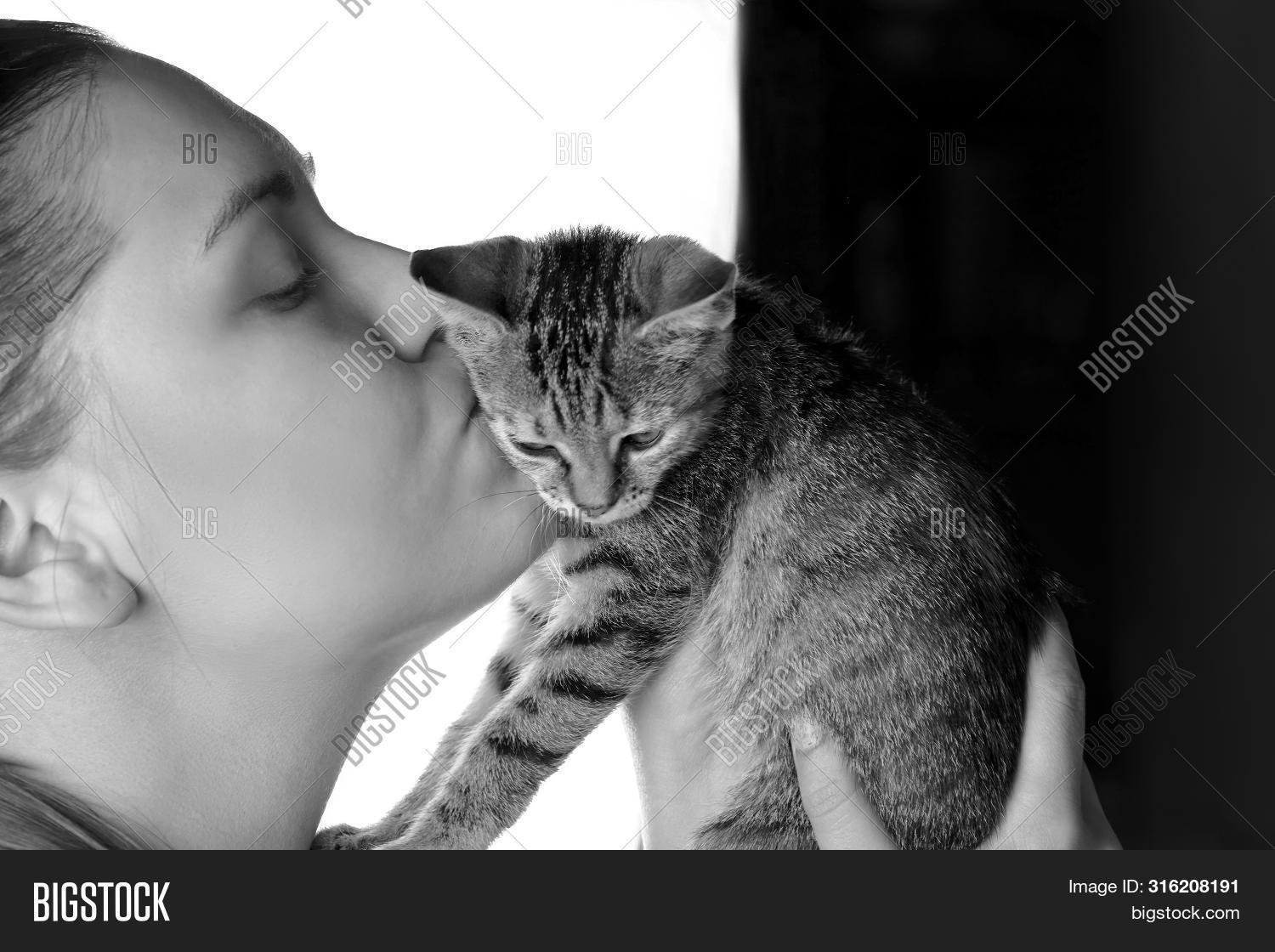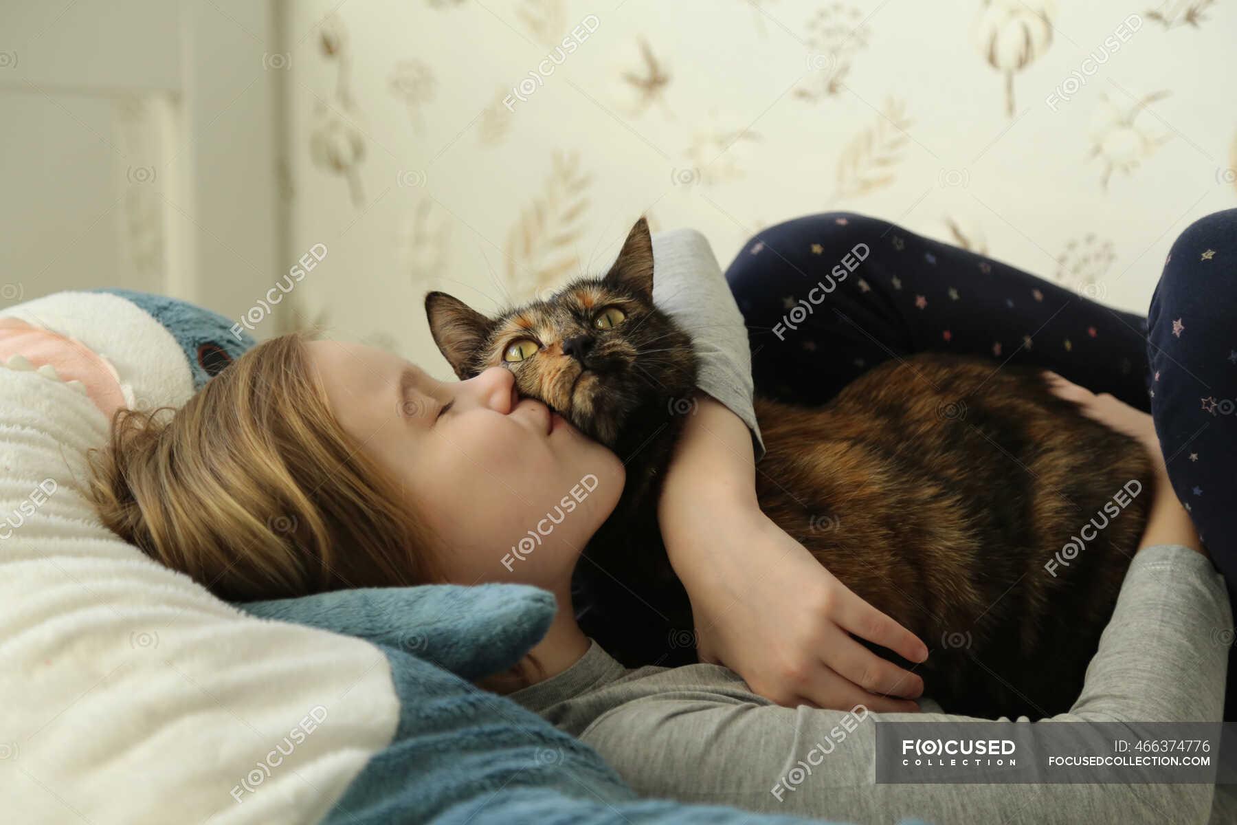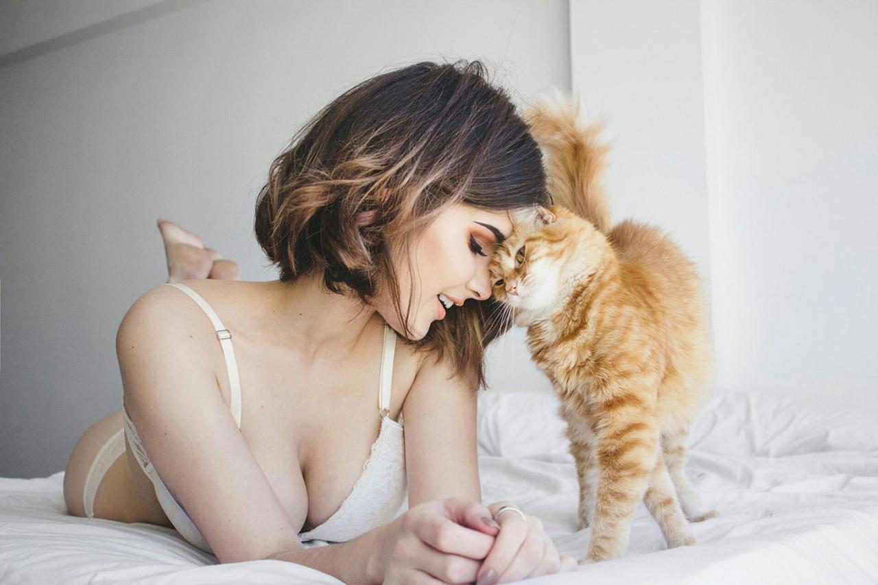 Девушка целует кота