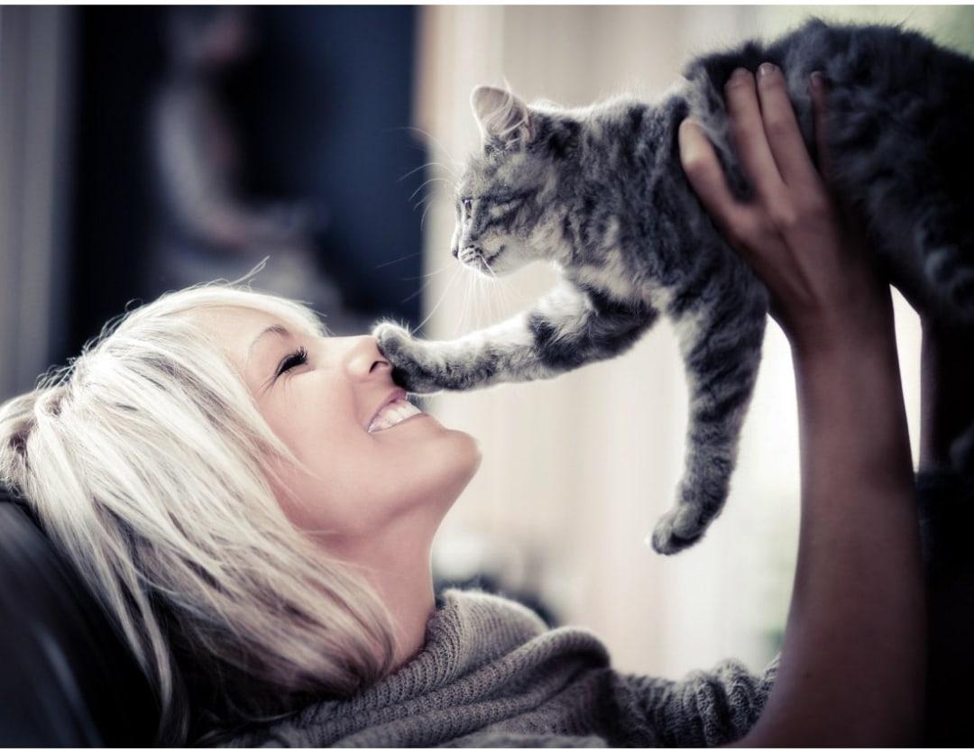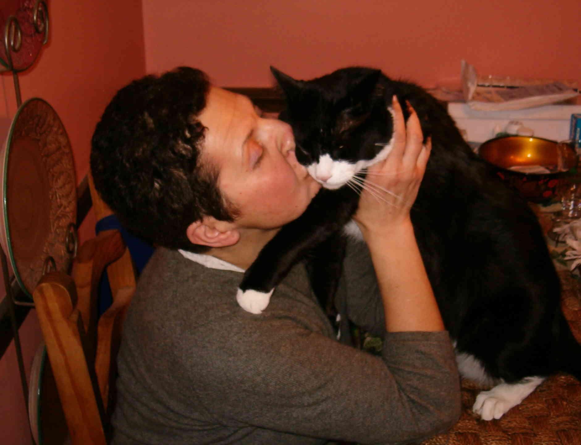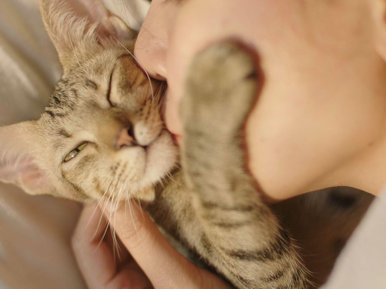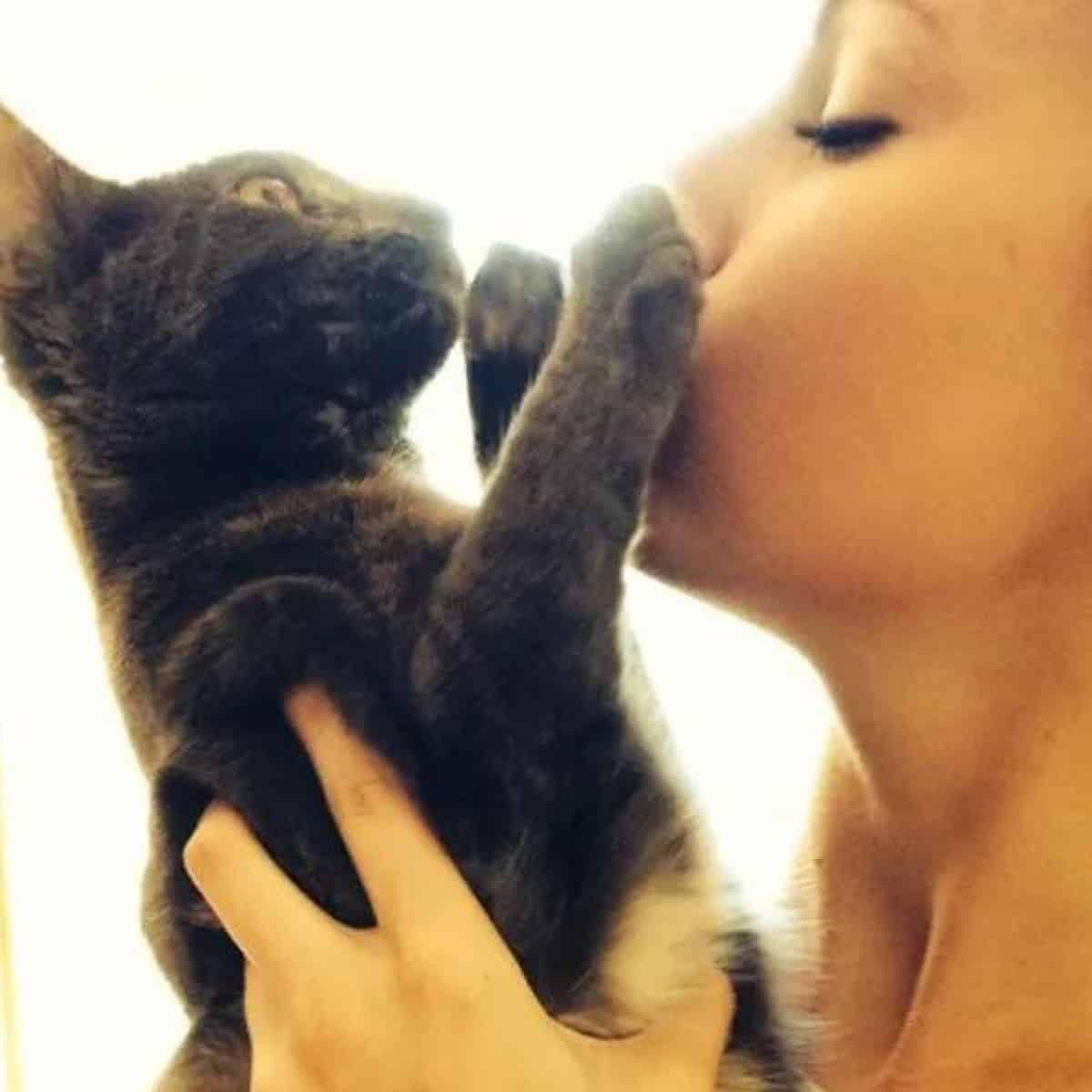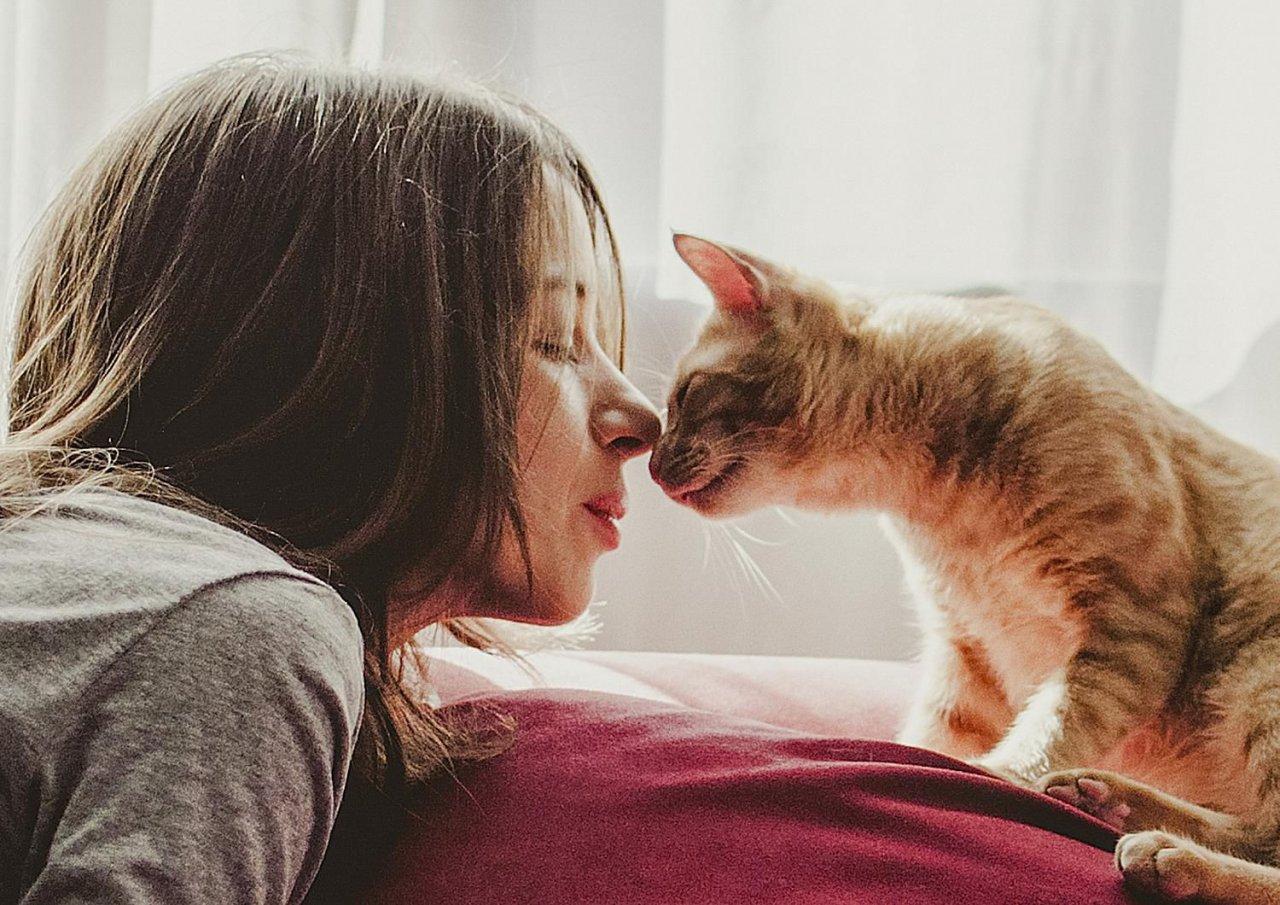 Девушка целует кота