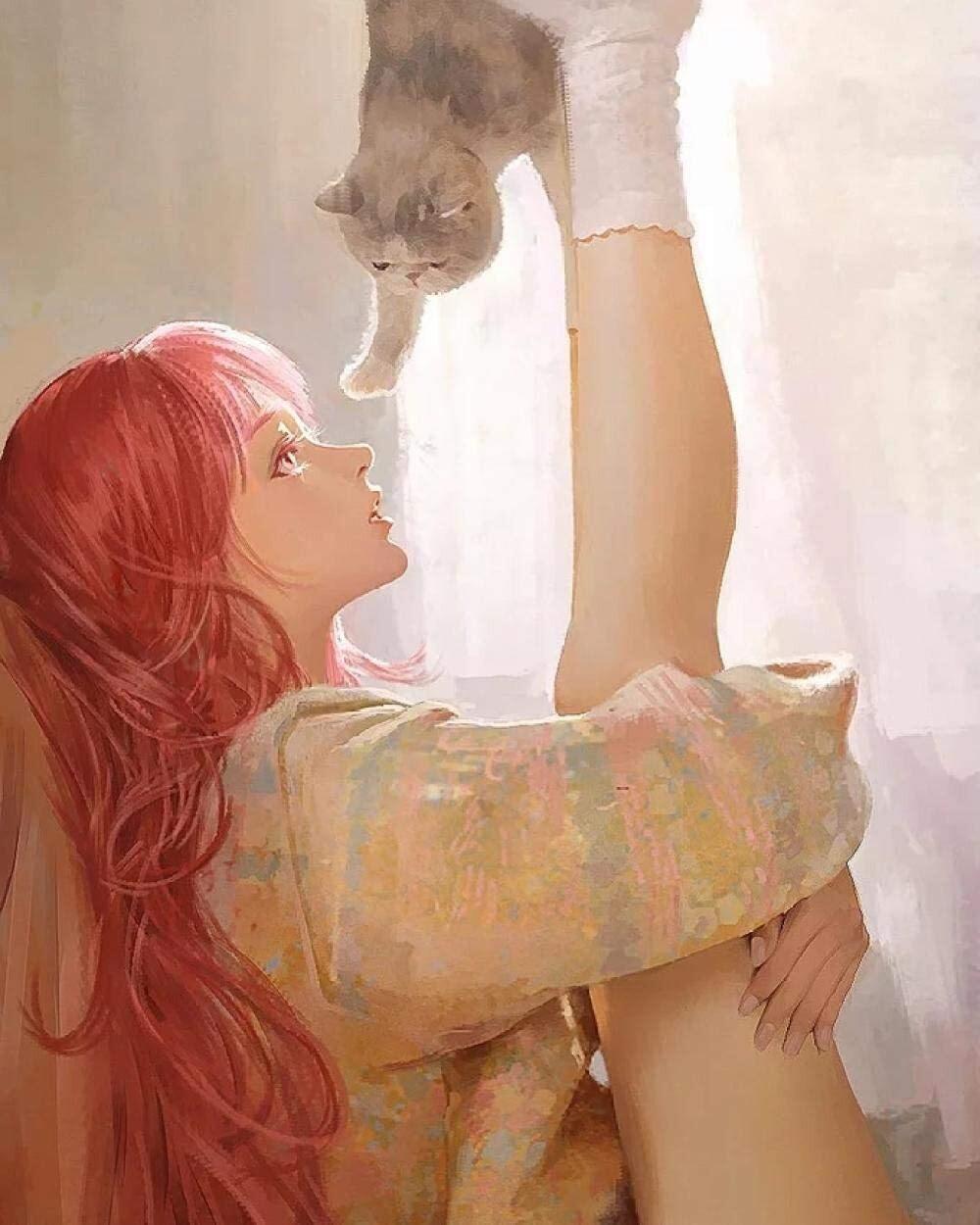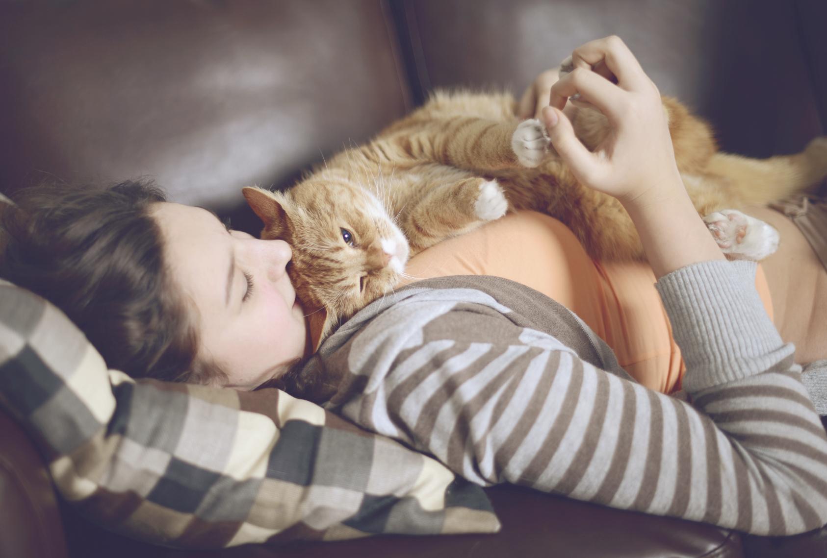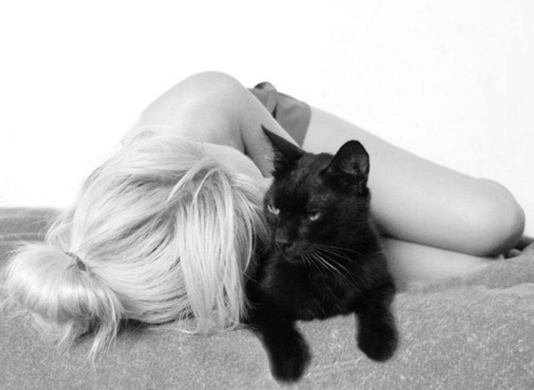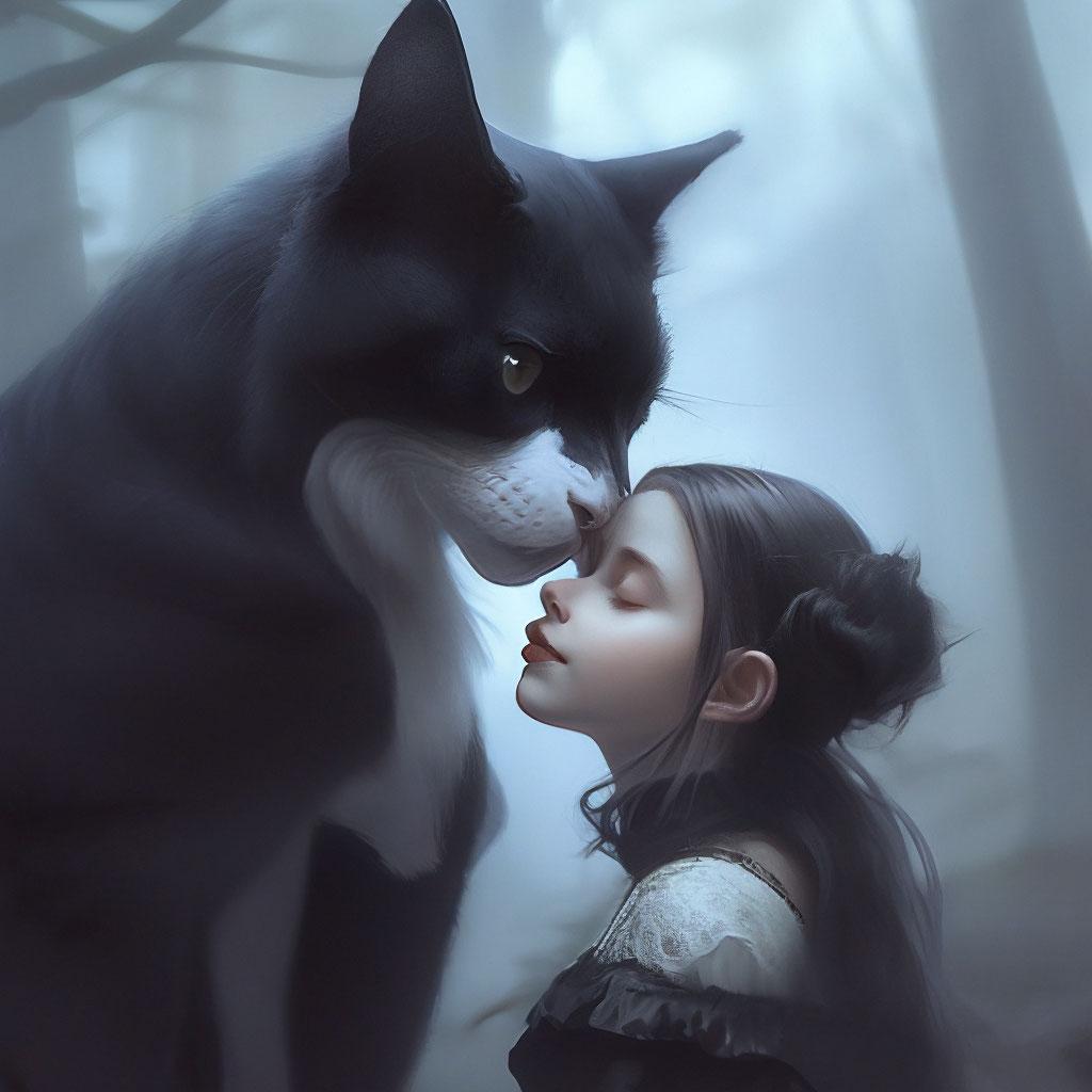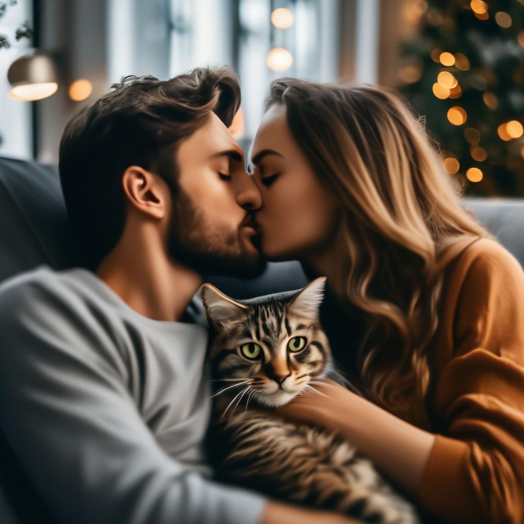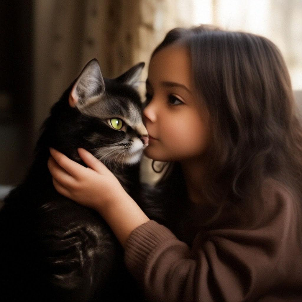 Девушка целует кота