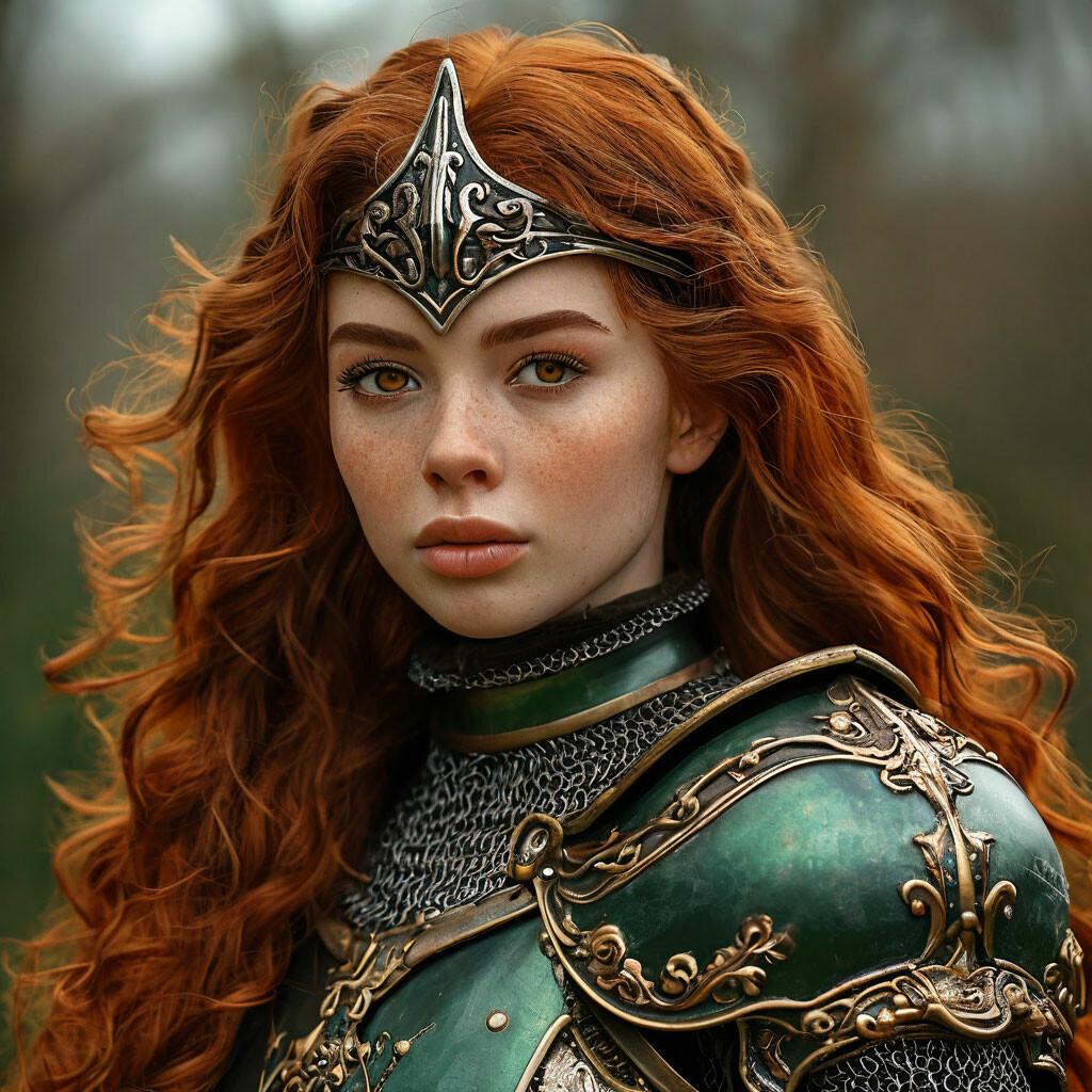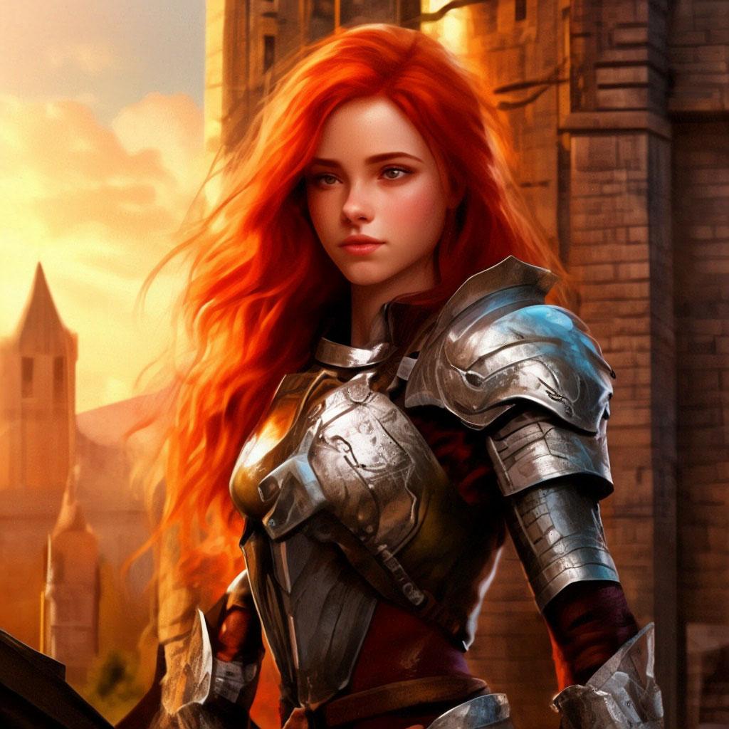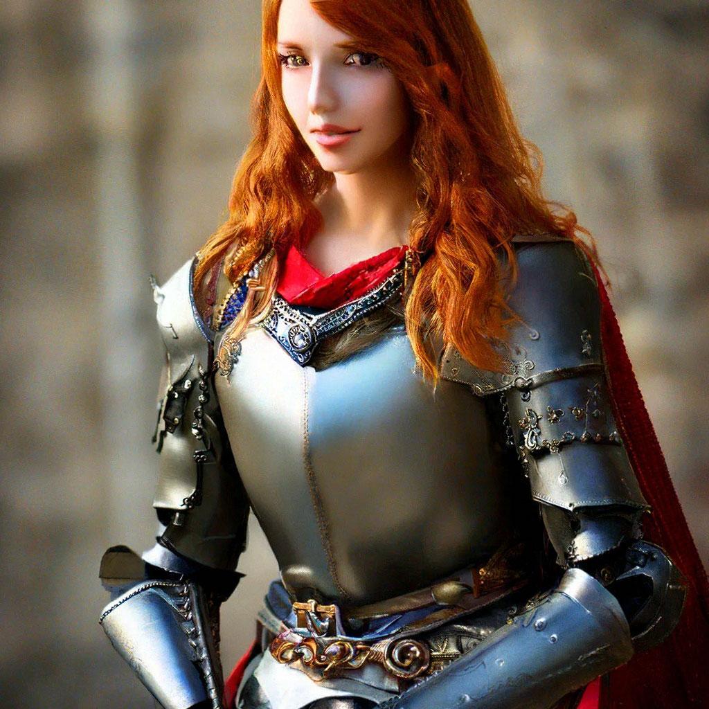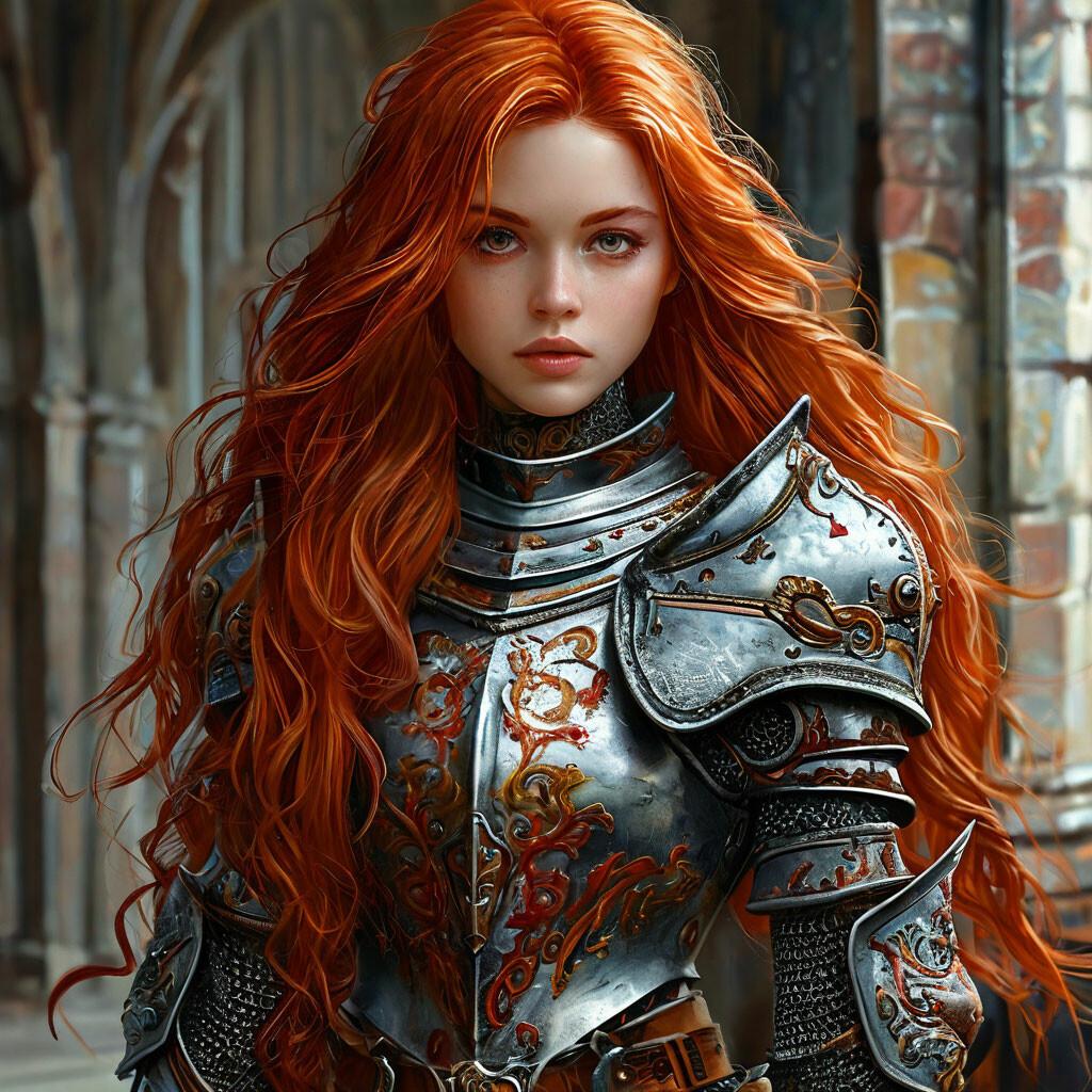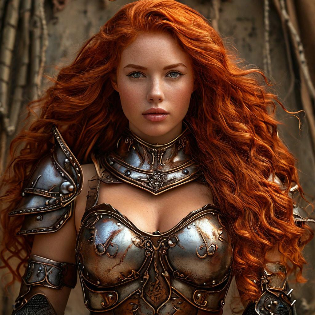 Уникальная коллекция иллюстраций рыжей девушки в доспехах демонстрирует тему страсти, отваги и огненного темперамента. Рыжий цвет волос становится символом энергии и непреклонности, гармонично сочетаясь с металлическими доспехами. Девушка предстает в образах средневековых воительниц, рыцарей и защитниц. Особое внимание уделено деталям: блеск доспехов, огонь волос, решительные выражения лица. Фигуры показаны в различных сценах - битвы, тренировки, моменты отдыха, демонстрируя ее универсальность как воина. Каждый рисунок рассказывает историю о девушке, которая сочетает нежность с силой и черпает энергию из внутреннего огня. Тематические ключевые слова: рыцарская культура, женская отвага, огненный темперамент, средневековые образы, воинская сила.