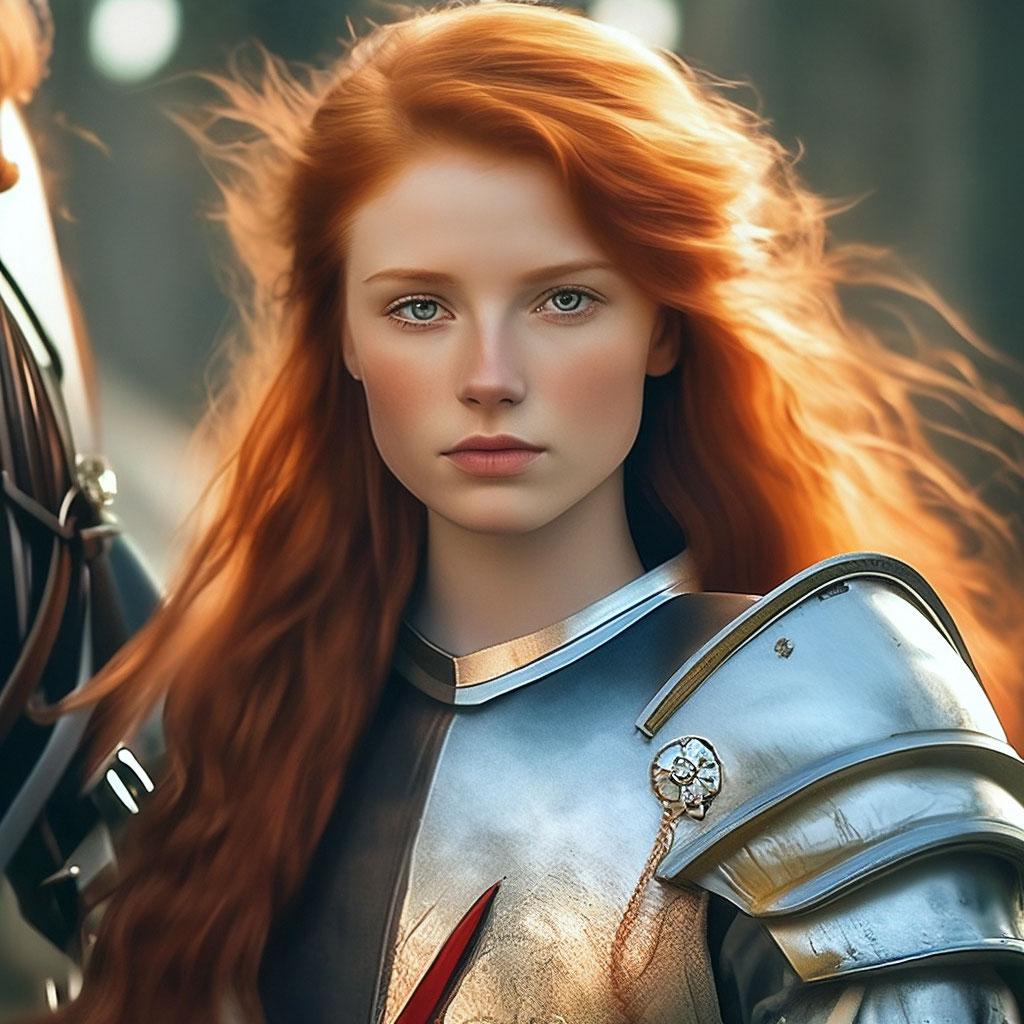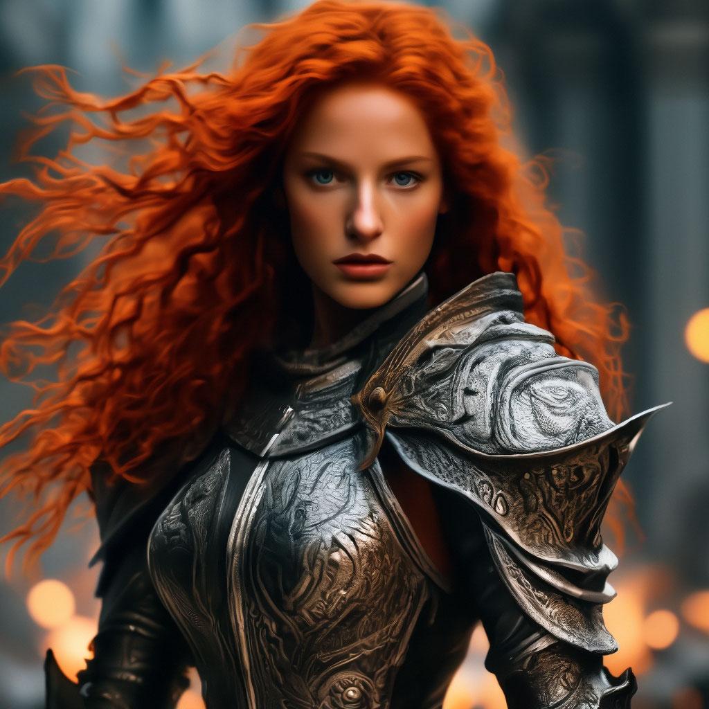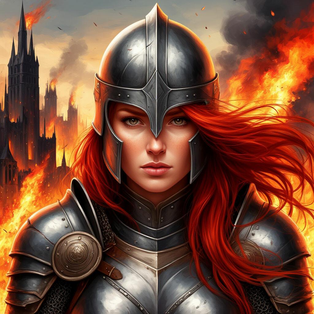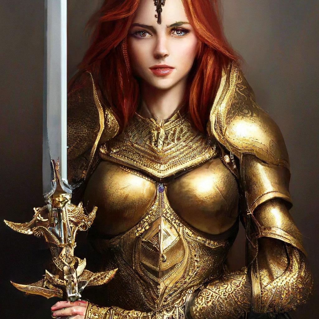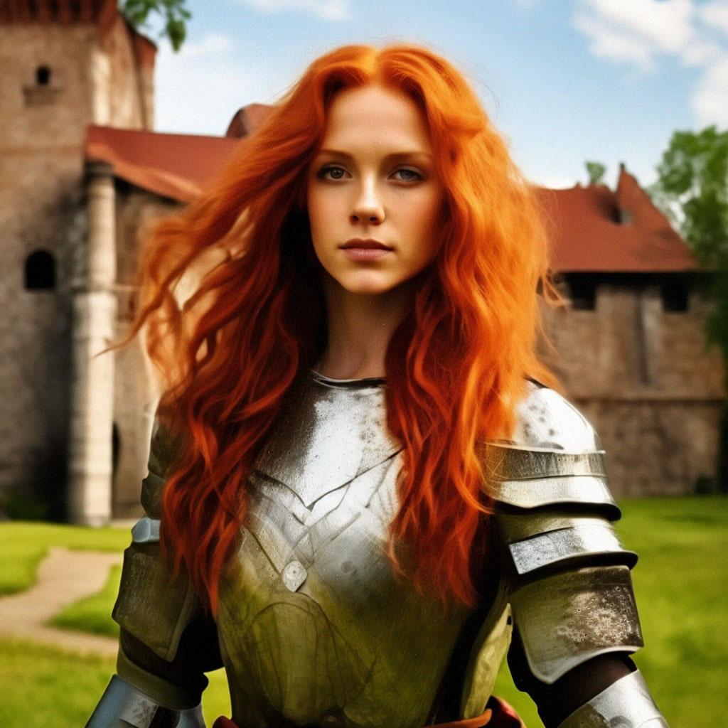 Уникальная коллекция иллюстраций рыжей девушки в доспехах демонстрирует тему страсти, отваги и огненного темперамента. Рыжий цвет волос становится символом энергии и непреклонности, гармонично сочетаясь с металлическими доспехами. Девушка предстает в образах средневековых воительниц, рыцарей и защитниц. Особое внимание уделено деталям: блеск доспехов, огонь волос, решительные выражения лица. Фигуры показаны в различных сценах - битвы, тренировки, моменты отдыха, демонстрируя ее универсальность как воина. Каждый рисунок рассказывает историю о девушке, которая сочетает нежность с силой и черпает энергию из внутреннего огня. Тематические ключевые слова: рыцарская культура, женская отвага, огненный темперамент, средневековые образы, воинская сила.