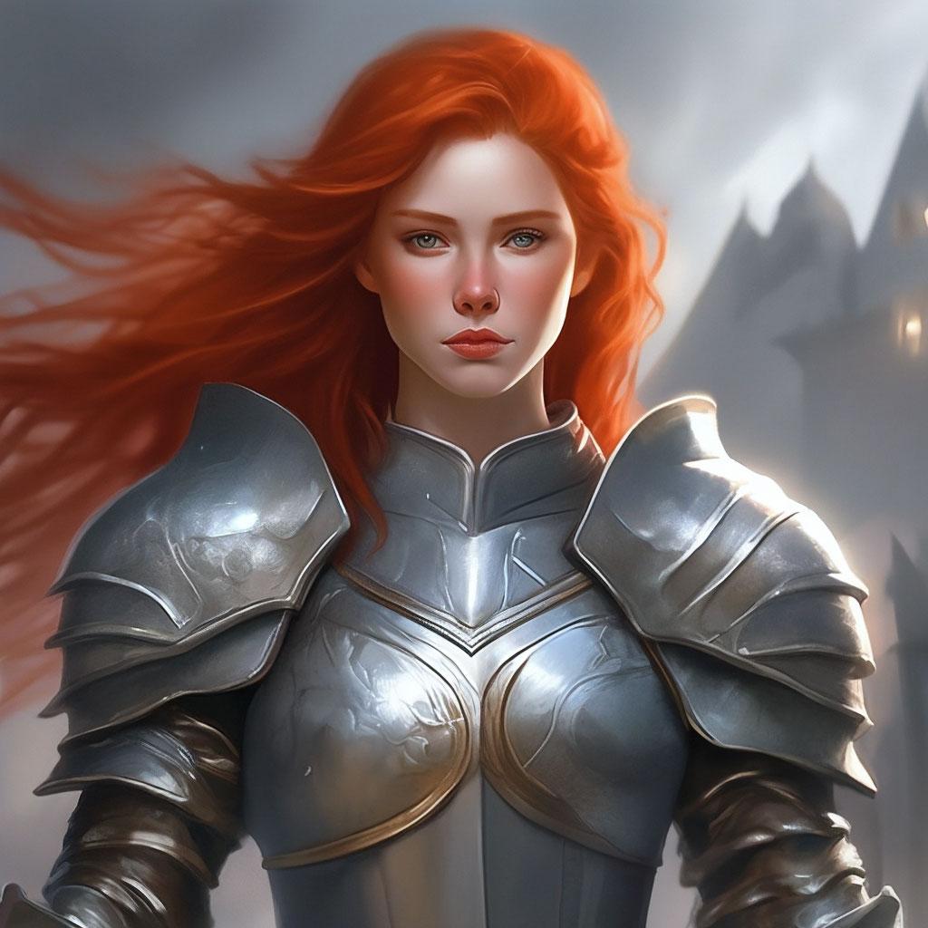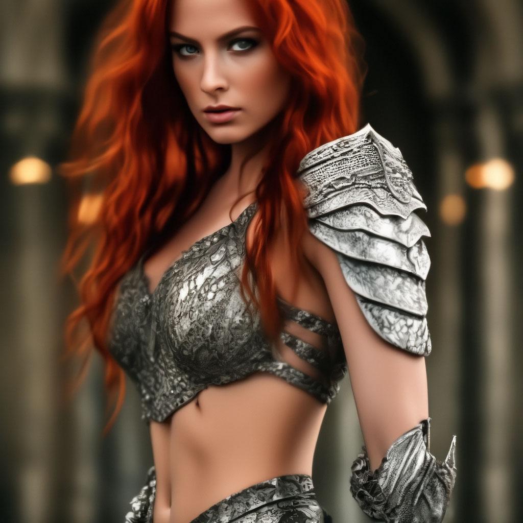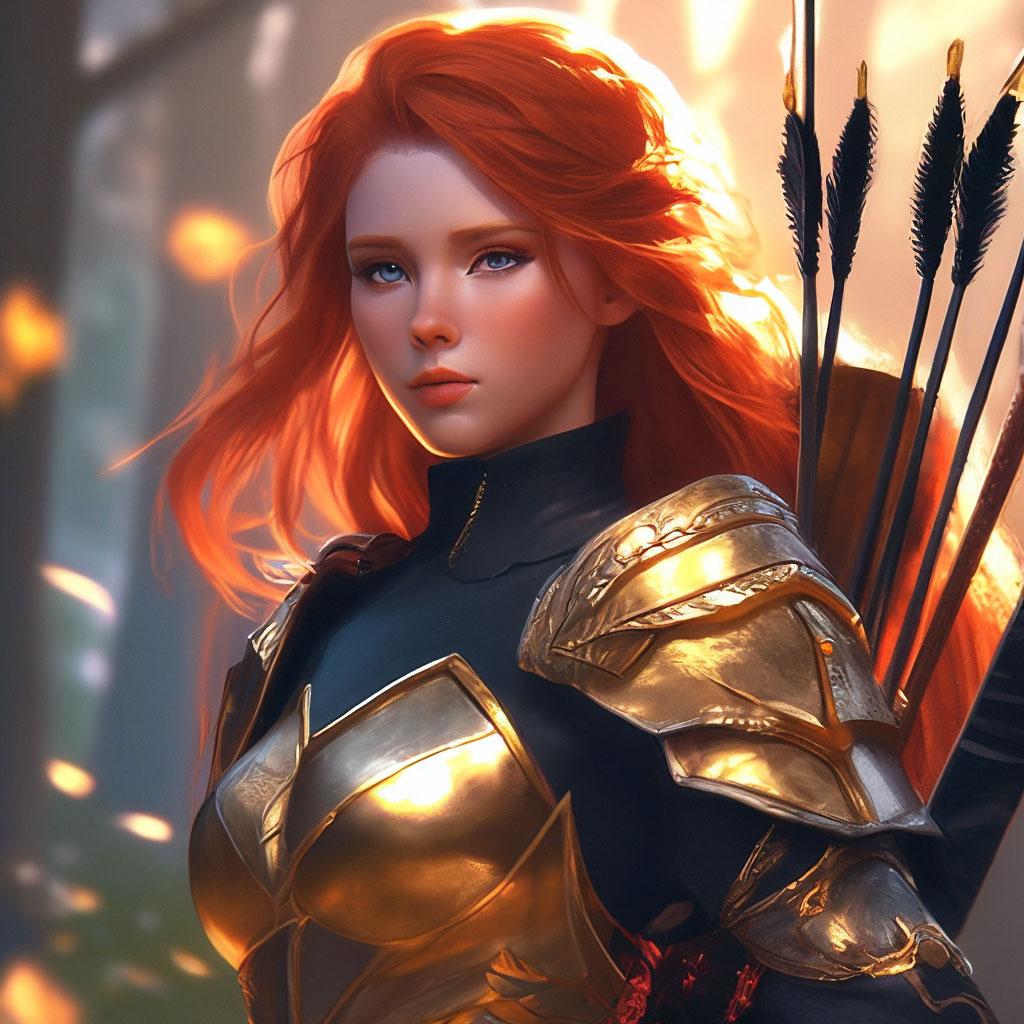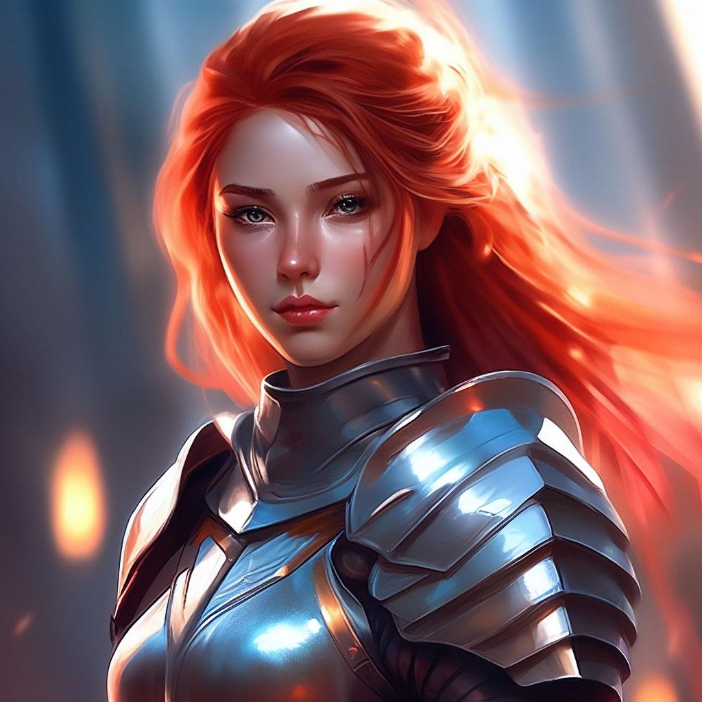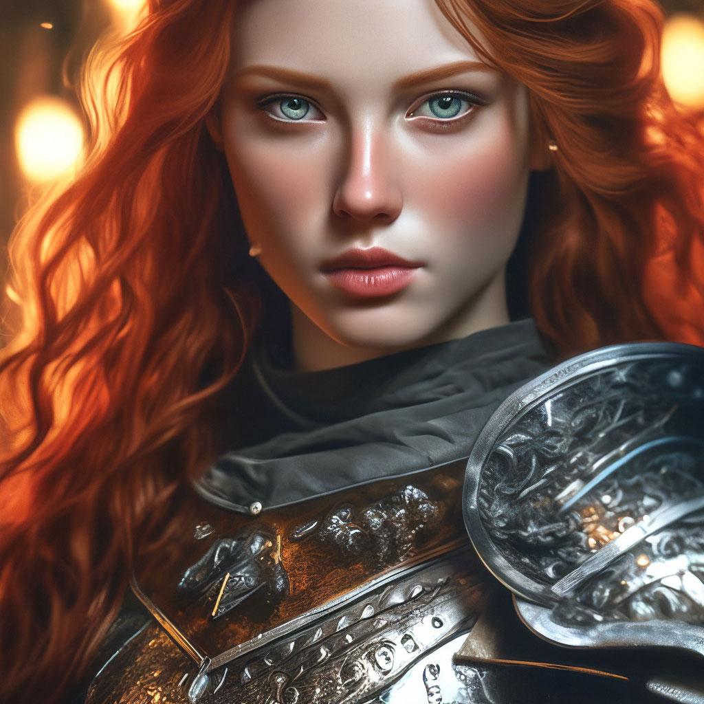 Уникальная коллекция иллюстраций рыжей девушки в доспехах демонстрирует тему страсти, отваги и огненного темперамента. Рыжий цвет волос становится символом энергии и непреклонности, гармонично сочетаясь с металлическими доспехами. Девушка предстает в образах средневековых воительниц, рыцарей и защитниц. Особое внимание уделено деталям: блеск доспехов, огонь волос, решительные выражения лица. Фигуры показаны в различных сценах - битвы, тренировки, моменты отдыха, демонстрируя ее универсальность как воина. Каждый рисунок рассказывает историю о девушке, которая сочетает нежность с силой и черпает энергию из внутреннего огня. Тематические ключевые слова: рыцарская культура, женская отвага, огненный темперамент, средневековые образы, воинская сила.