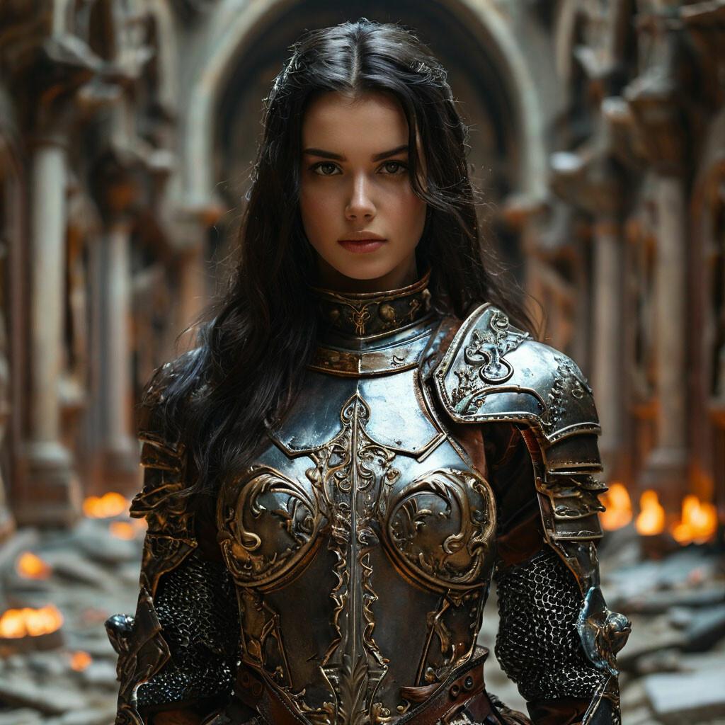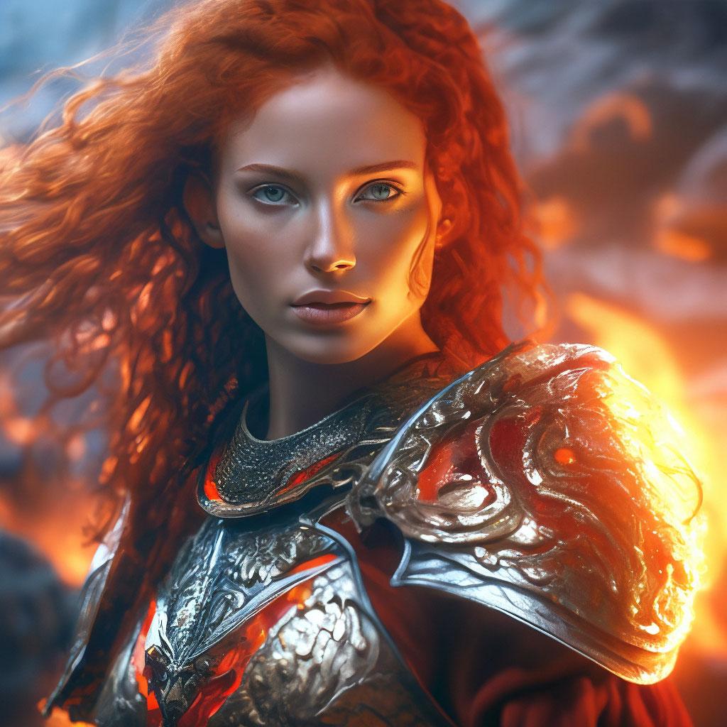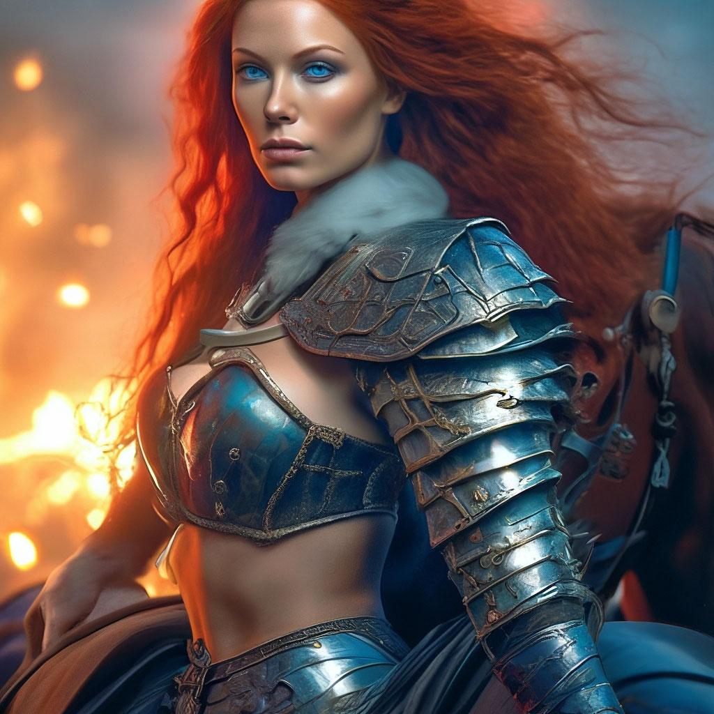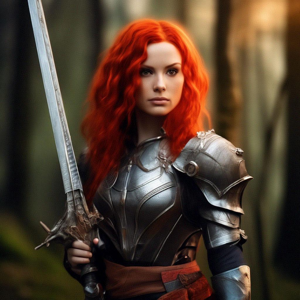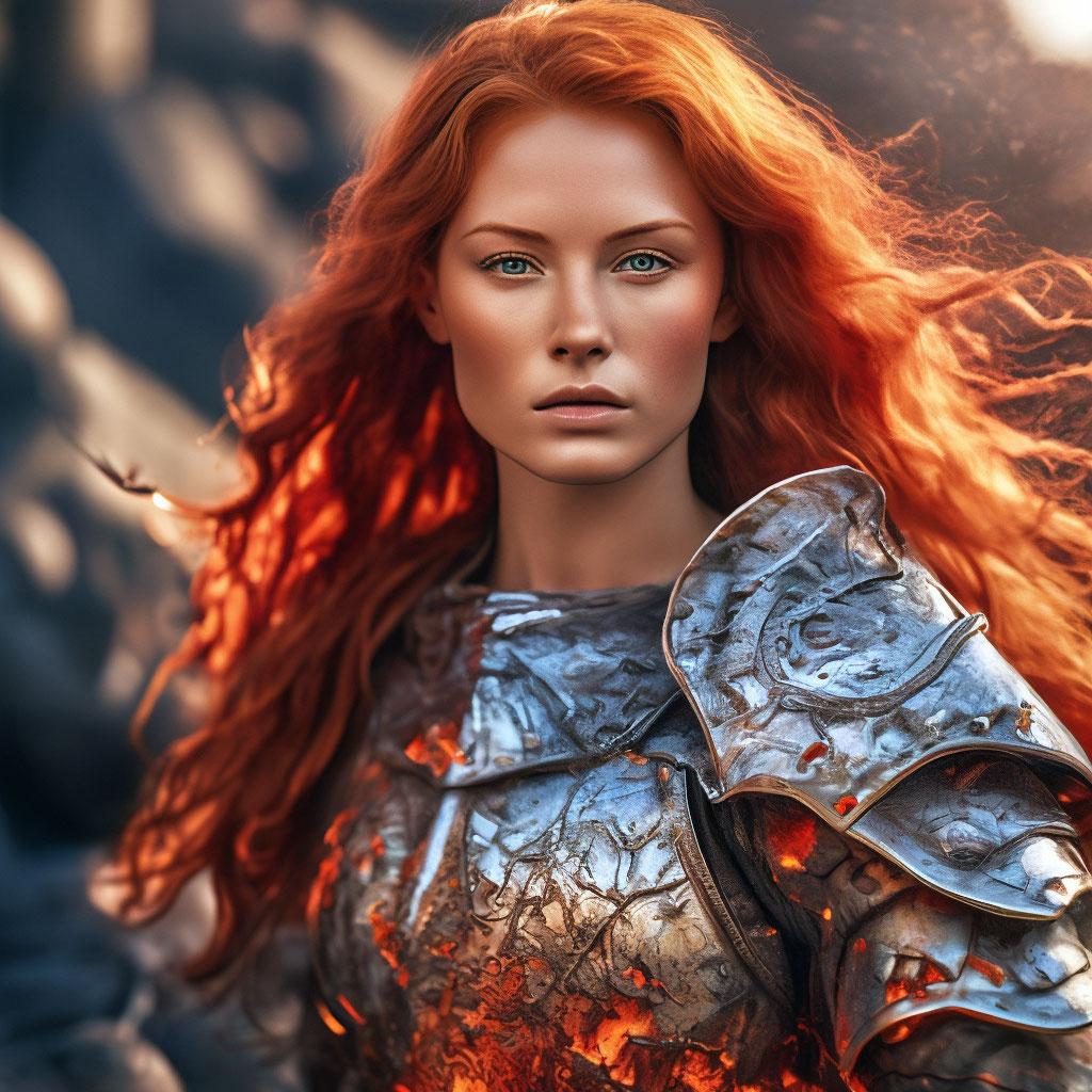 Уникальная коллекция иллюстраций рыжей девушки в доспехах демонстрирует тему страсти, отваги и огненного темперамента. Рыжий цвет волос становится символом энергии и непреклонности, гармонично сочетаясь с металлическими доспехами. Девушка предстает в образах средневековых воительниц, рыцарей и защитниц. Особое внимание уделено деталям: блеск доспехов, огонь волос, решительные выражения лица. Фигуры показаны в различных сценах - битвы, тренировки, моменты отдыха, демонстрируя ее универсальность как воина. Каждый рисунок рассказывает историю о девушке, которая сочетает нежность с силой и черпает энергию из внутреннего огня. Тематические ключевые слова: рыцарская культура, женская отвага, огненный темперамент, средневековые образы, воинская сила.