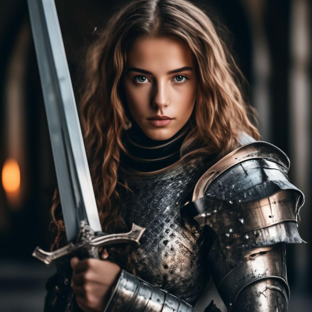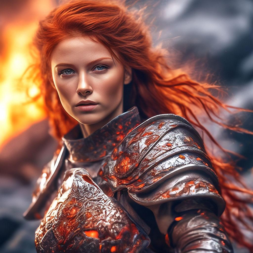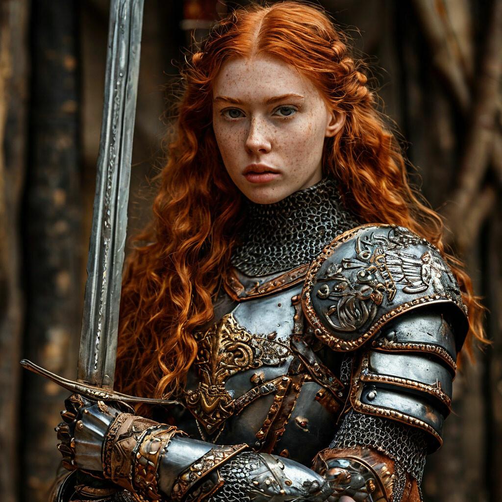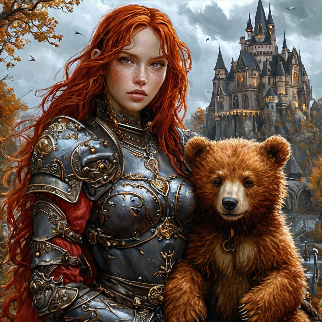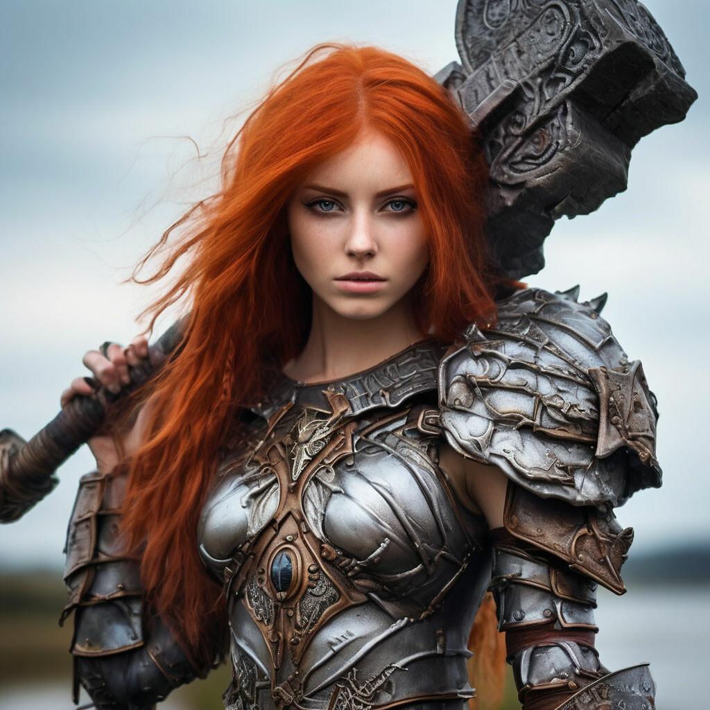 Уникальная коллекция иллюстраций рыжей девушки в доспехах демонстрирует тему страсти, отваги и огненного темперамента. Рыжий цвет волос становится символом энергии и непреклонности, гармонично сочетаясь с металлическими доспехами. Девушка предстает в образах средневековых воительниц, рыцарей и защитниц. Особое внимание уделено деталям: блеск доспехов, огонь волос, решительные выражения лица. Фигуры показаны в различных сценах - битвы, тренировки, моменты отдыха, демонстрируя ее универсальность как воина. Каждый рисунок рассказывает историю о девушке, которая сочетает нежность с силой и черпает энергию из внутреннего огня. Тематические ключевые слова: рыцарская культура, женская отвага, огненный темперамент, средневековые образы, воинская сила.