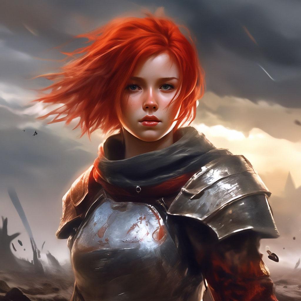 Рыжая девушка в доспехах