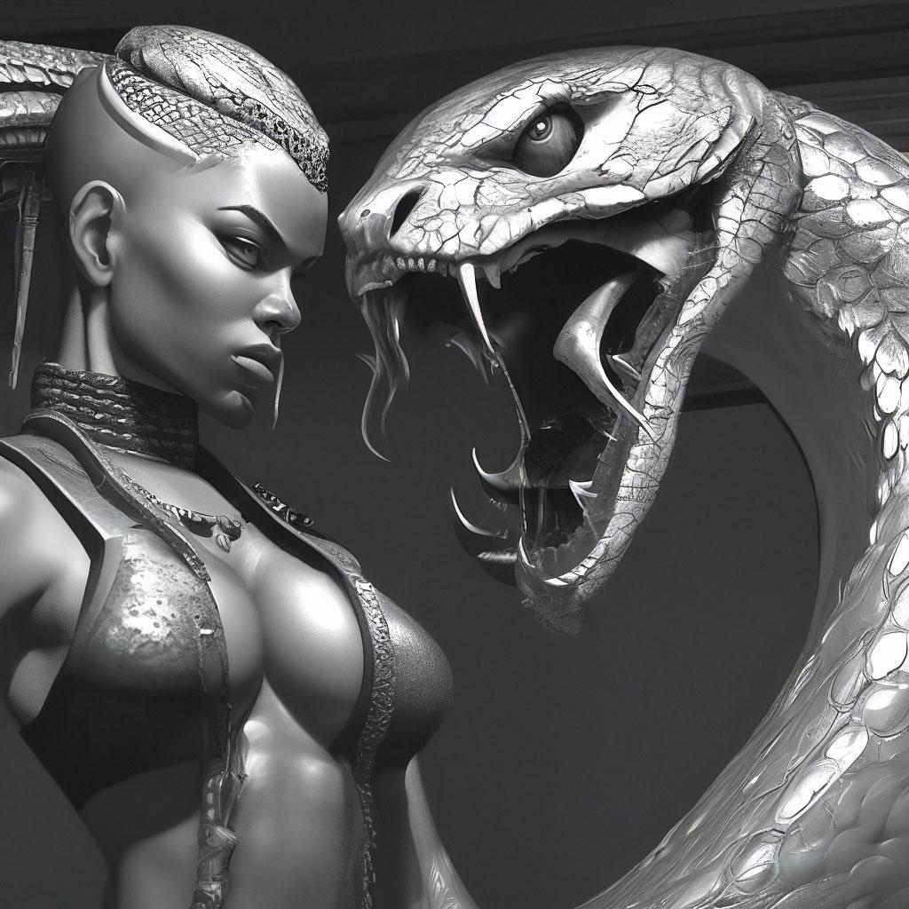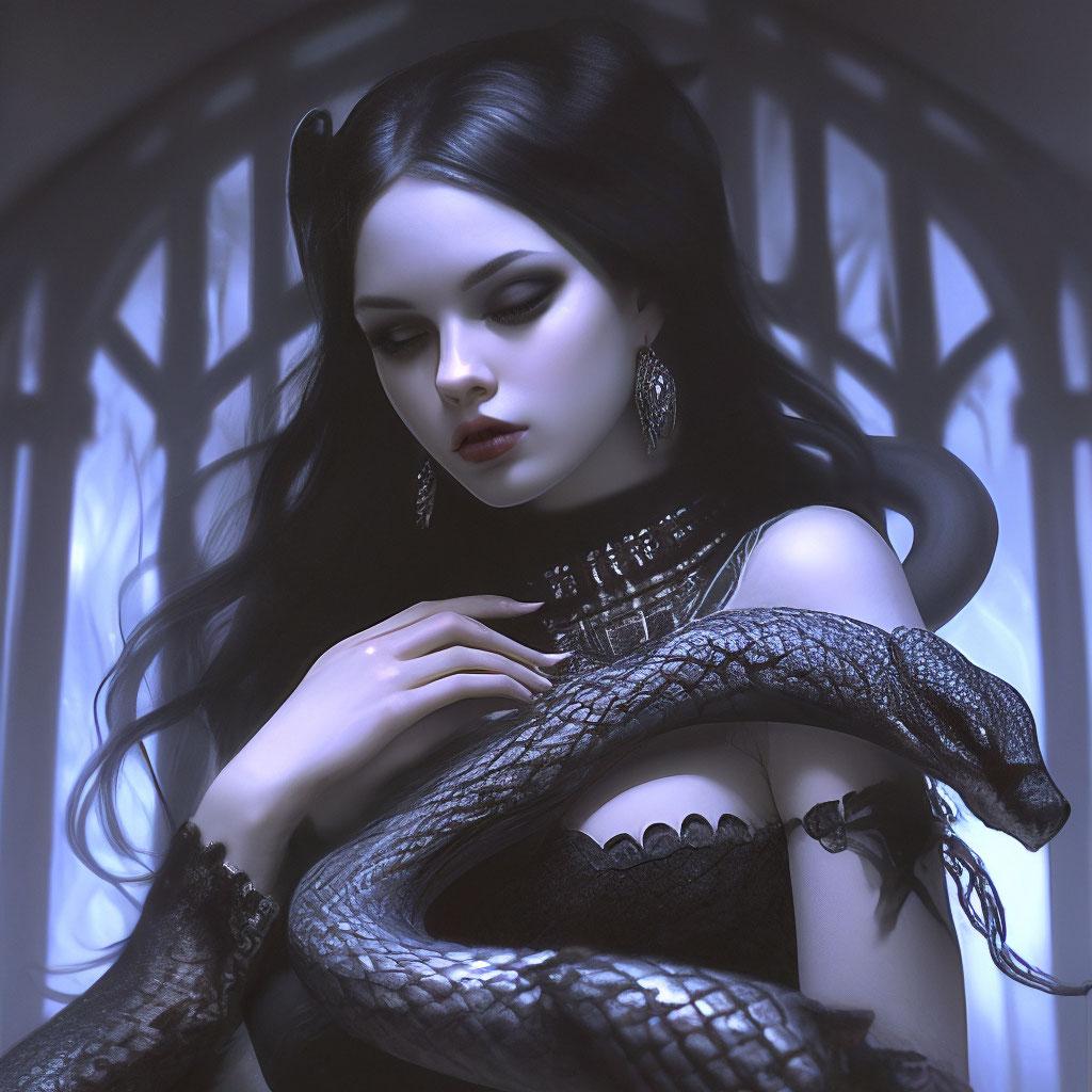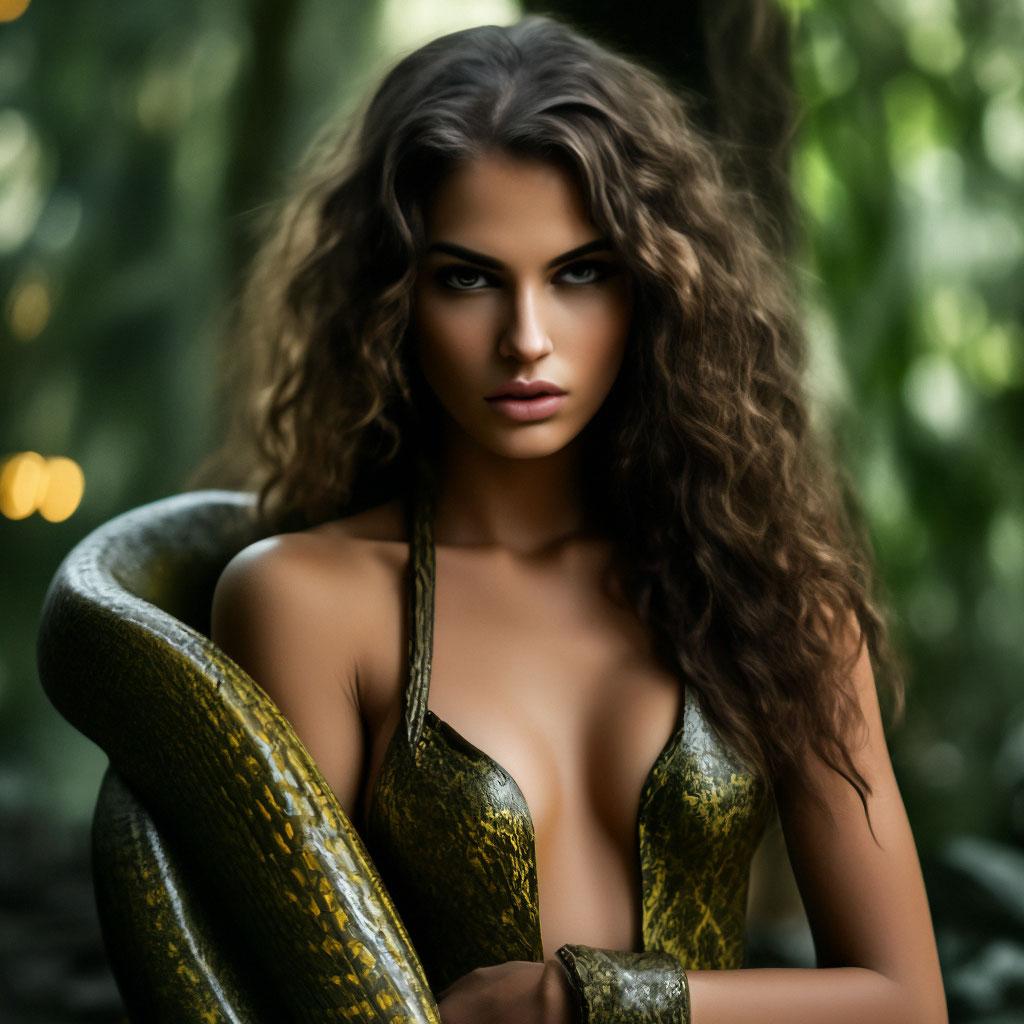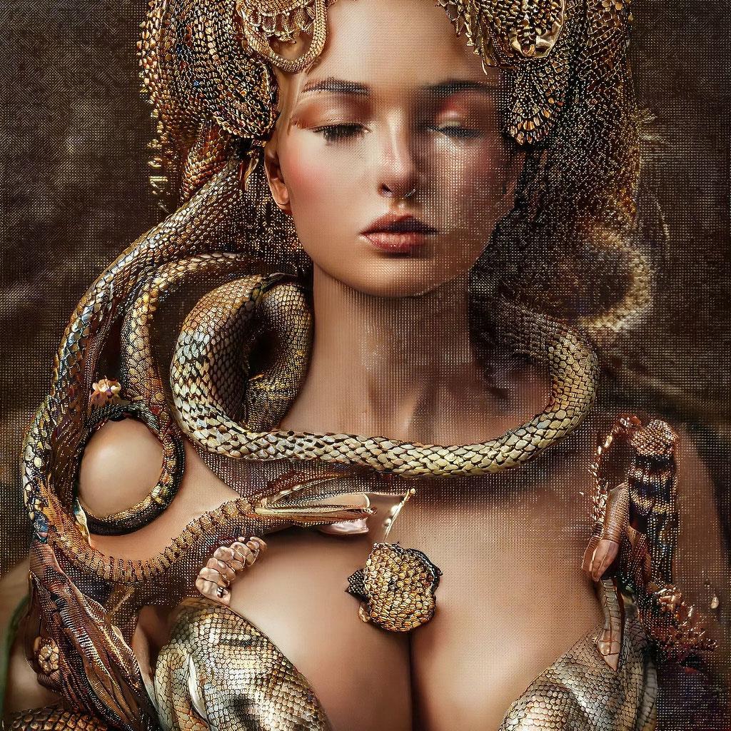 Коллекция иллюстраций девушки со змеей воплощает тему мистики, трансформации и древней мудрости. Змея становится символом загадочности, обновления и женской силы, гармонично интегрируясь в образ девушки. Фигуры предстают в различных композициях: девушка, держащая змею, частичное превращение, символические позы. Особое внимание уделено деталям: чешуя, глаза, движения, которые создают атмосферу тайны и магии. Девушка показана то как укротительница, то как равная партнерша змеи, демонстрируя гармонию с дикими силами природы. Каждый рисунок рассказывает историю о женщине, которая обладает внутренней силой и мудростью древних времен. Тематические ключевые слова: мистические образы, змеиная символика, женская трансформация, древняя мудрость, природная сила.