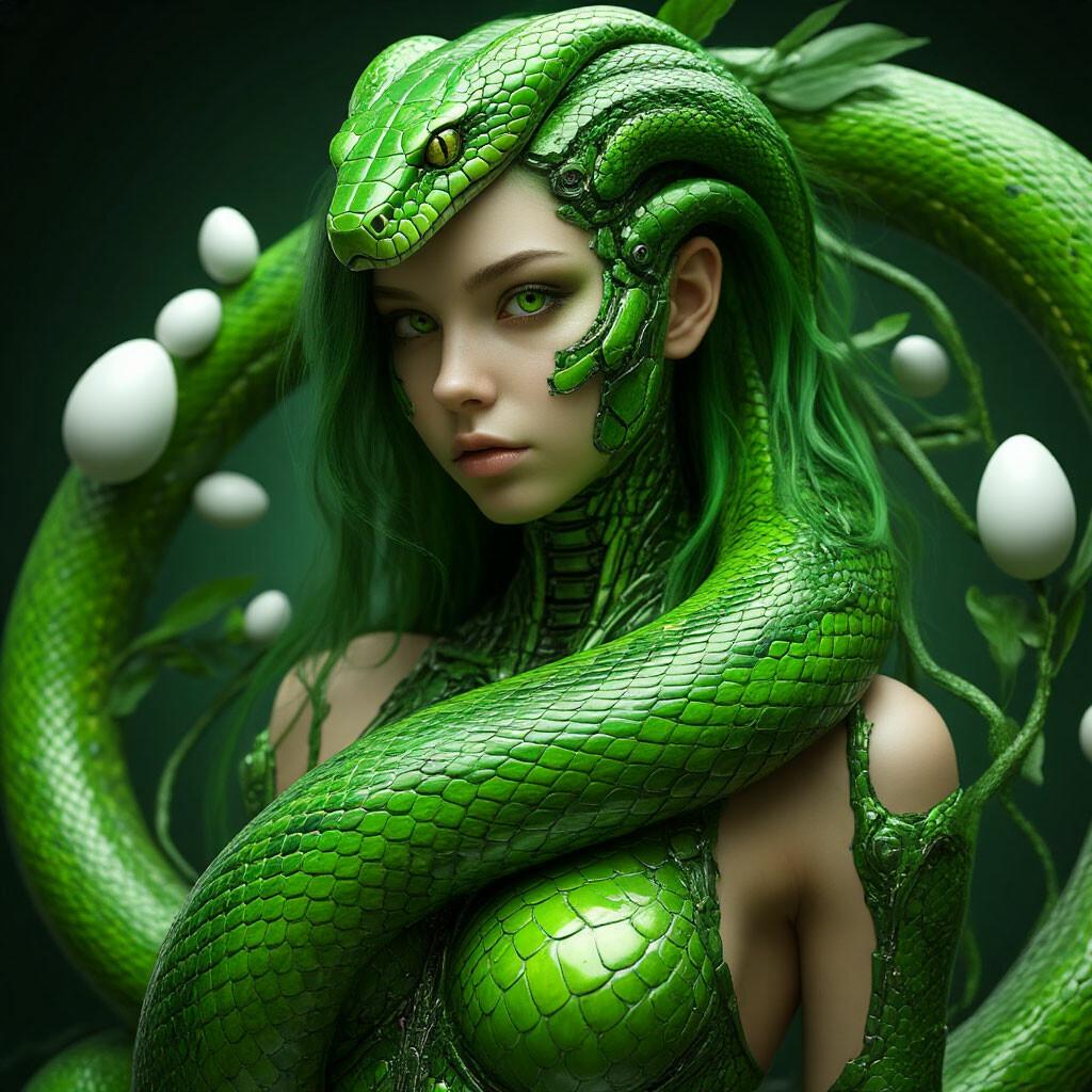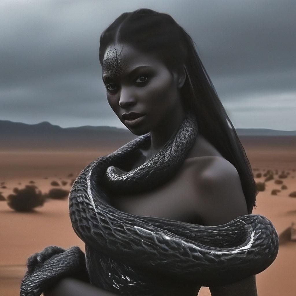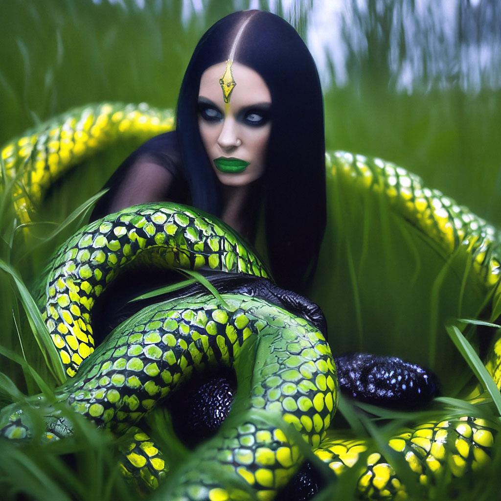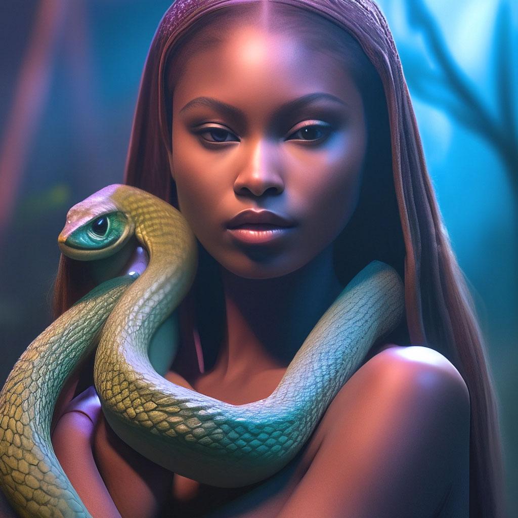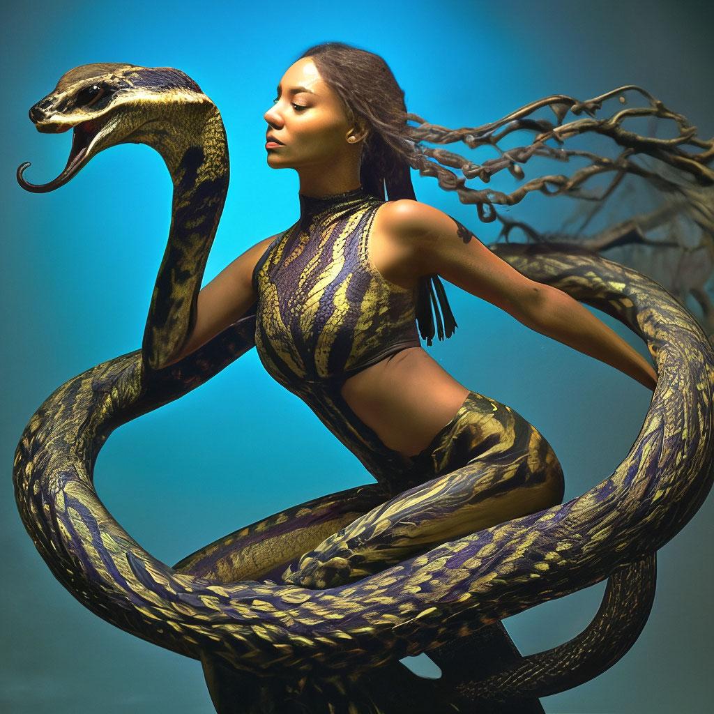 Коллекция иллюстраций девушки со змеей воплощает тему мистики, трансформации и древней мудрости. Змея становится символом загадочности, обновления и женской силы, гармонично интегрируясь в образ девушки. Фигуры предстают в различных композициях: девушка, держащая змею, частичное превращение, символические позы. Особое внимание уделено деталям: чешуя, глаза, движения, которые создают атмосферу тайны и магии. Девушка показана то как укротительница, то как равная партнерша змеи, демонстрируя гармонию с дикими силами природы. Каждый рисунок рассказывает историю о женщине, которая обладает внутренней силой и мудростью древних времен. Тематические ключевые слова: мистические образы, змеиная символика, женская трансформация, древняя мудрость, природная сила.