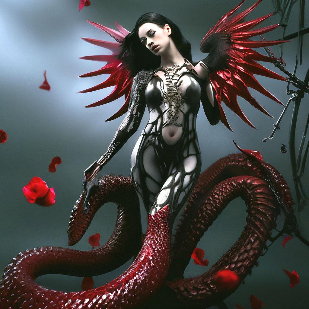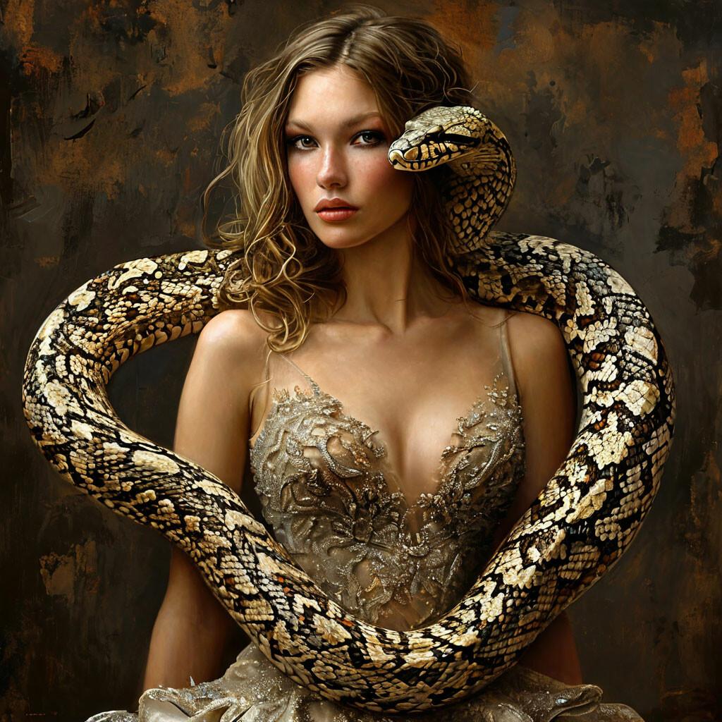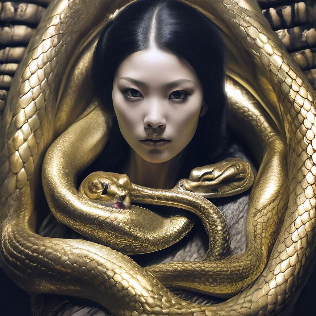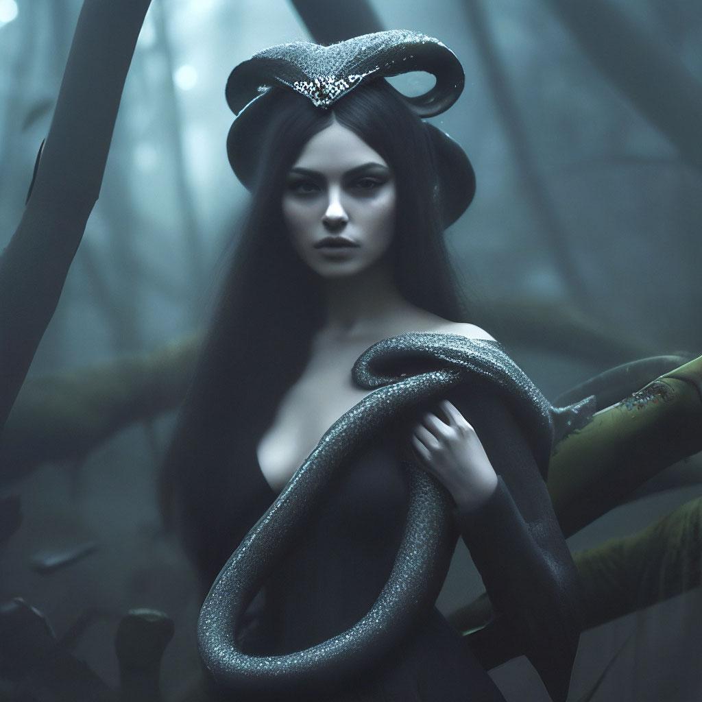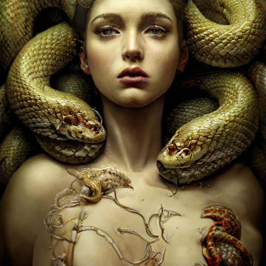 Коллекция иллюстраций девушки со змеей воплощает тему мистики, трансформации и древней мудрости. Змея становится символом загадочности, обновления и женской силы, гармонично интегрируясь в образ девушки. Фигуры предстают в различных композициях: девушка, держащая змею, частичное превращение, символические позы. Особое внимание уделено деталям: чешуя, глаза, движения, которые создают атмосферу тайны и магии. Девушка показана то как укротительница, то как равная партнерша змеи, демонстрируя гармонию с дикими силами природы. Каждый рисунок рассказывает историю о женщине, которая обладает внутренней силой и мудростью древних времен. Тематические ключевые слова: мистические образы, змеиная символика, женская трансформация, древняя мудрость, природная сила.