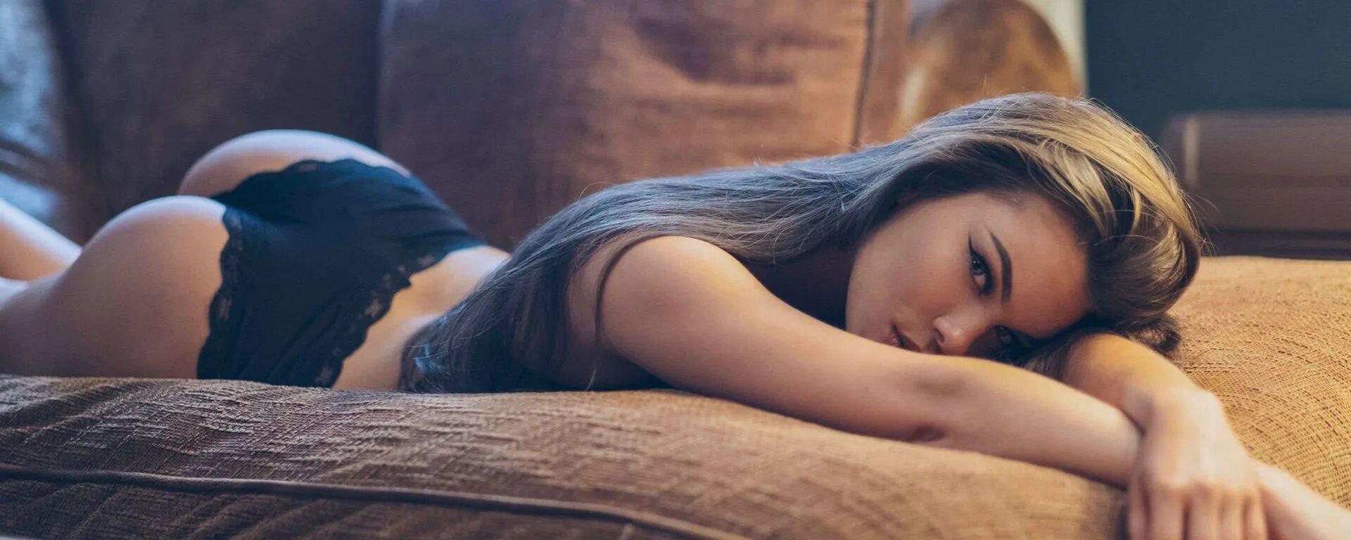 Девушка лежит на диване