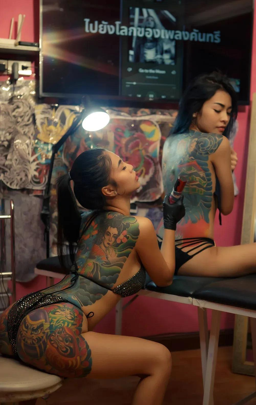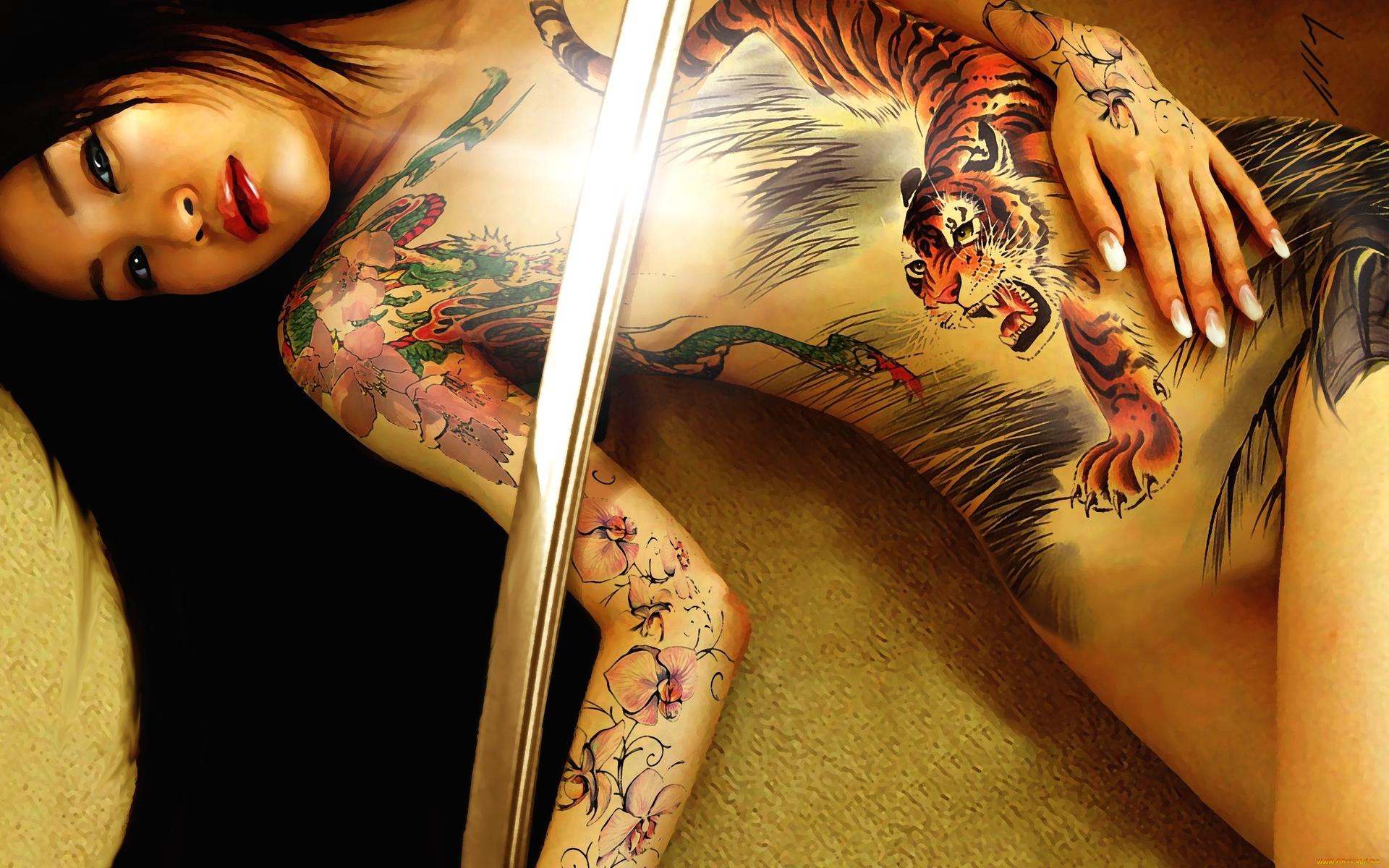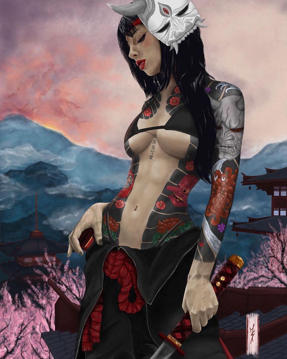 Полураздетые девушки якудза