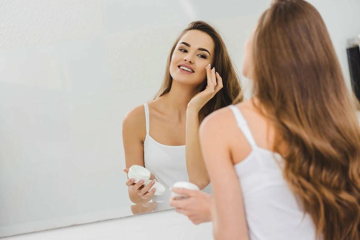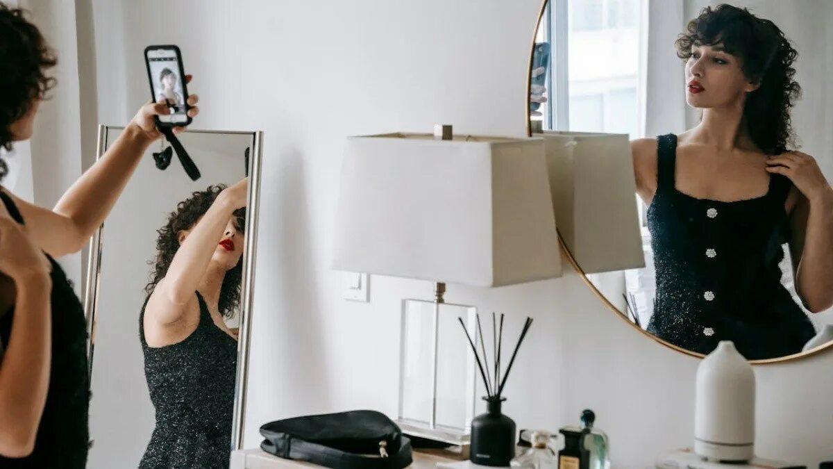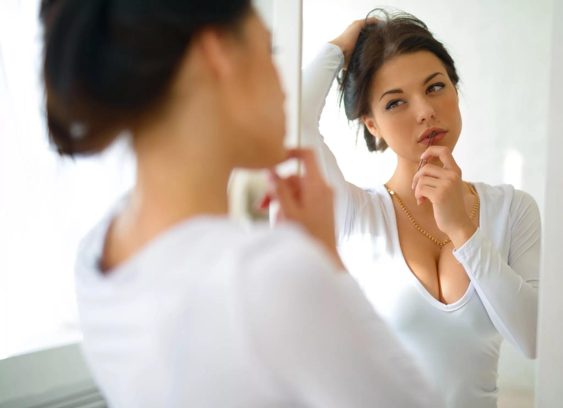 Девушка любуется собой