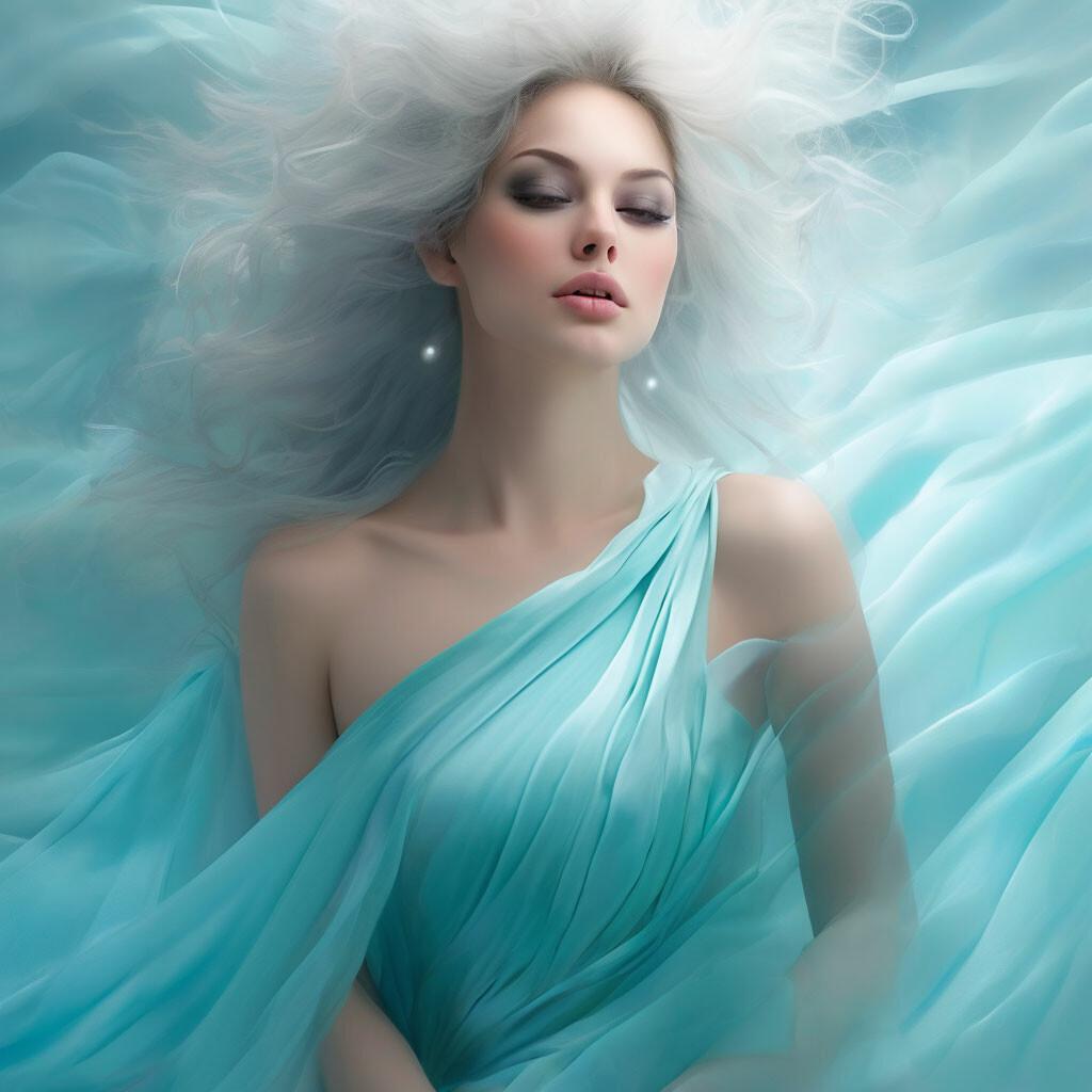 Небесная грация: девушка в голубых тонах