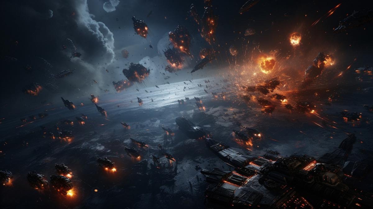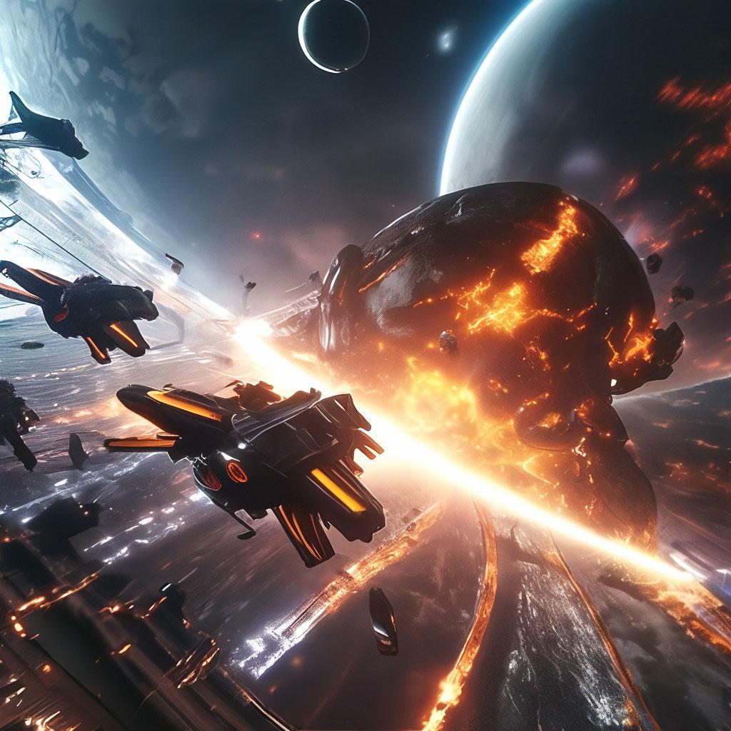 Серия изображений космических боев воплощает эпические масштабы межзвездных конфликтов. Каждая картинка показывает звездолеты в динамичных сражениях, с лазерными вспышками и взрывами на фоне космической бездны. Арты демонстрируют атмосферу техно-триллера, где каждый маневр может решить судьбу цивилизаций. Фотки передают ощущение скорости и опасности, где космос становится ареной для героических и трагических историй. Сюжеты затрагивают темы войны, технологий и выживания в экстремальных условиях. Иллюстрации выполнены с акцентом на световые эффекты, перспективу и атмосферные композиции.