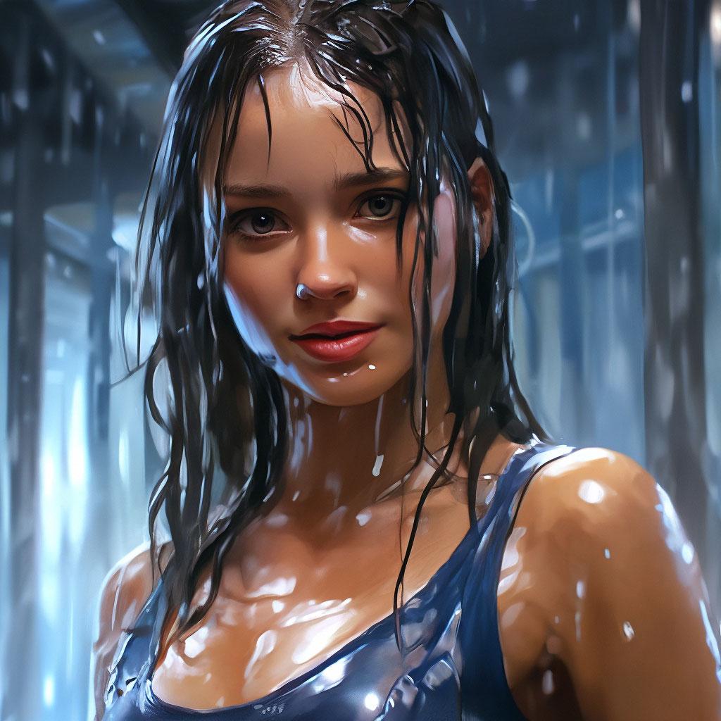 Мокрая девушка - это не просто красивая картинка, а символ чувственности и естественности, где красота и природа идут рука об руку. Ее внешность завораживает и восхищает, создавая образ, который невозможно забыть. Длинные волосы, мокрые от воды, струятся по плечам, словно шелковые нити, а глаза - это два омута, наполненные внутренним светом и жизненной силой. Кожа девушки имеет нежный, почти фарфоровый оттенок, который становится еще более привлекательным под воздействием воды. Капли воды стекают по ее телу, создавая эффект росинок на лепестках цветка, а каждый шаг исполнен грации и естественности. Одежда мокрой девушки - это не просто ткань, а продолжение ее сущности, которая становится прозрачной под воздействием воды, создавая эффект второго слоя кожи. Фон может быть любым - от водопадов до морских волн, но везде она выглядит органично и естественно. Эта девушка олицетворяет собой единство человека и природы, красоту, которая не нуждается в украшениях.