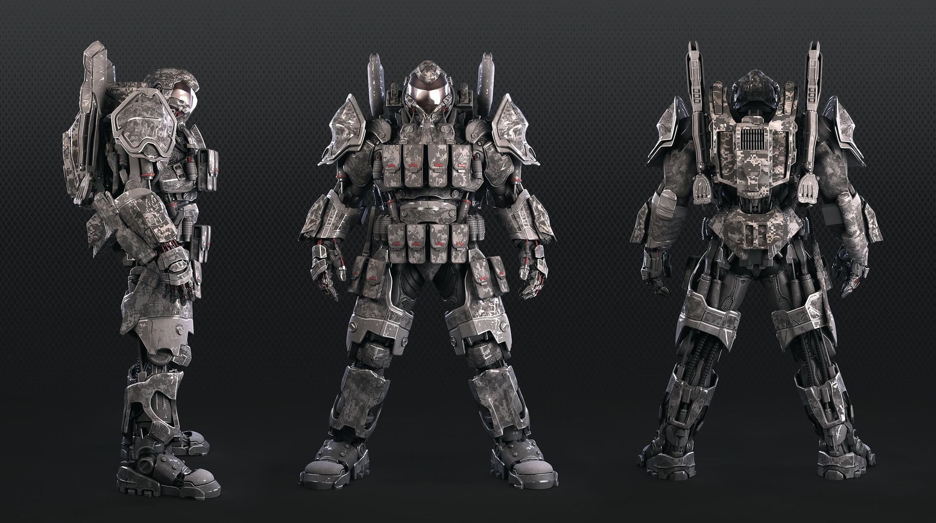 Боевой экзоскелет представляет собой вершину интеграции человека и машины, где технологии усиливают физические возможности солдата. Эти иллюстрации показывают дизайн и функциональность - от бронированных элементов до систем жизнеобеспечения. Каждая картинка раскрывает технические решения и тактические преимущества. Арты демонстрируют применение в различных сценариях боя. Изображения подчеркивают этические аспекты технологического прогресса. Это визуальное исследование о будущем военного дела.
