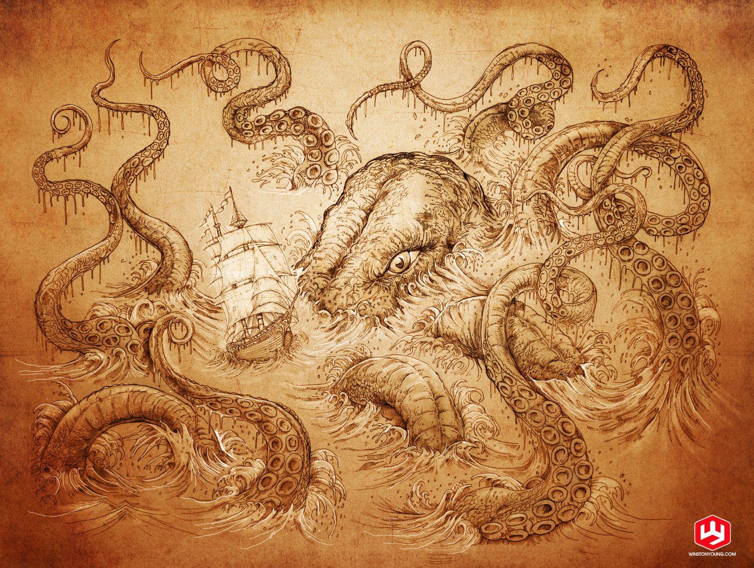 Арты кракена-осьминога