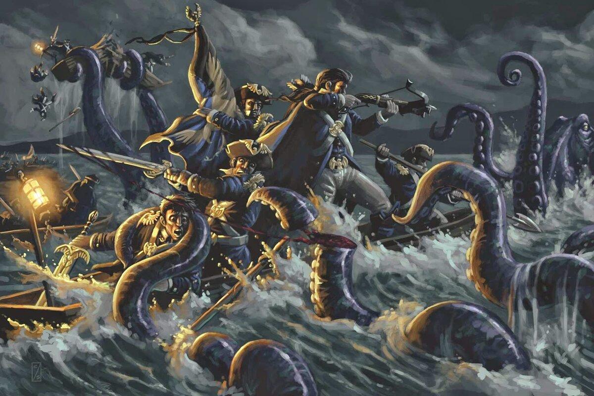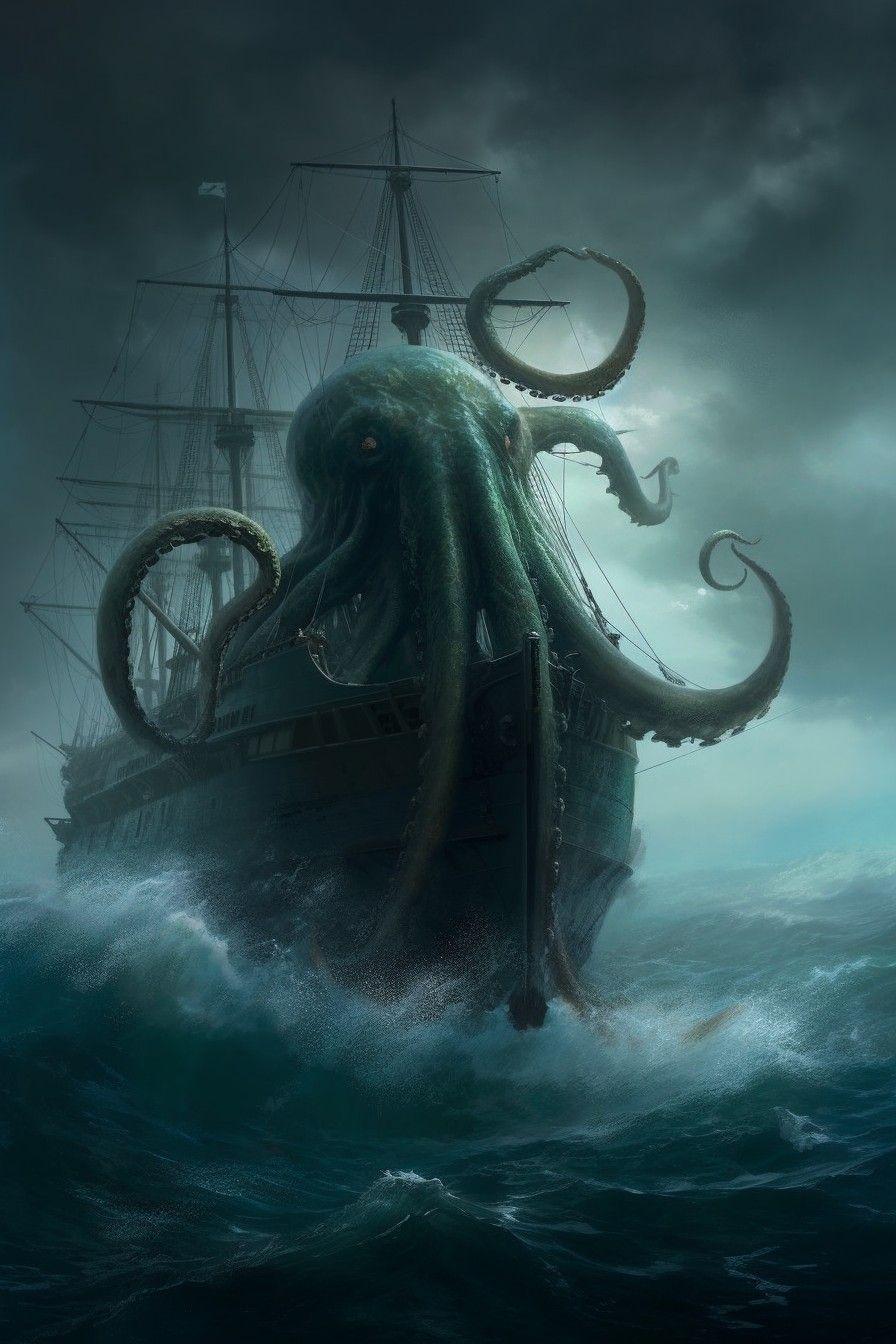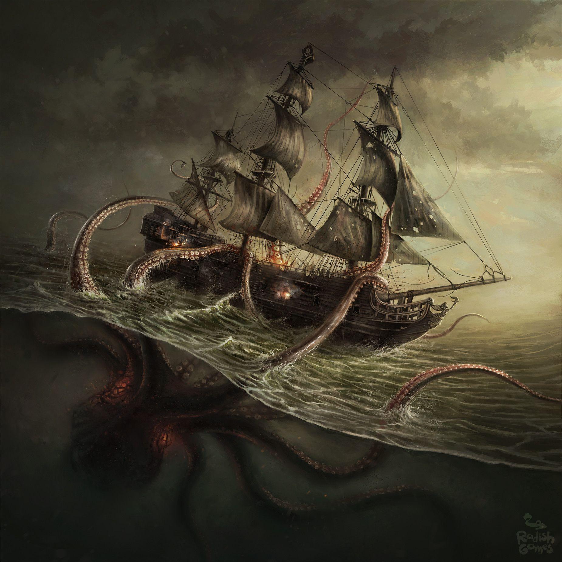 Кракен и корабль арт