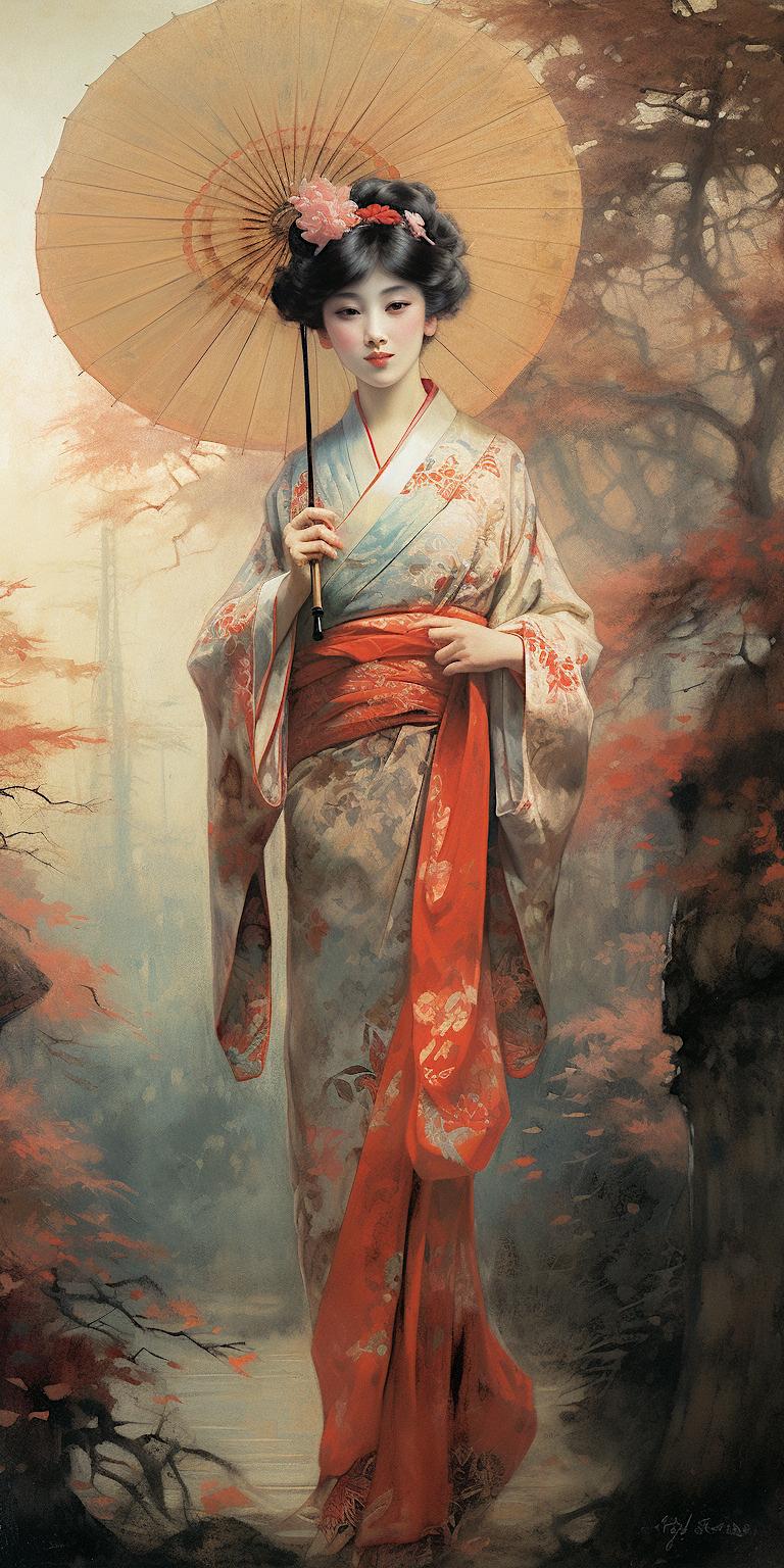 Девушка в кимоно с зонтиком