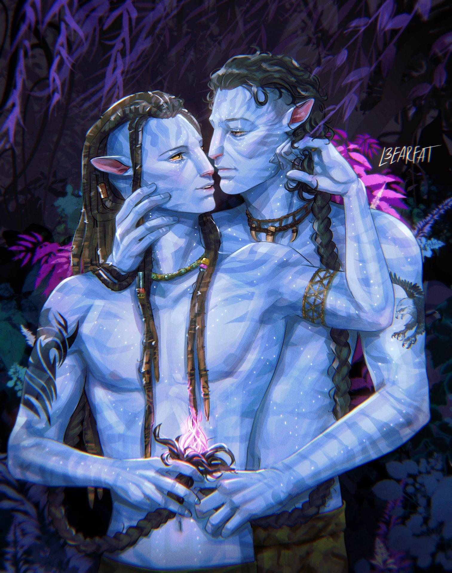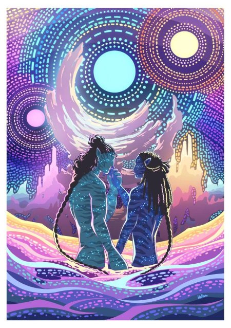 В биолюминесцентном мире Пандоры разворачивается трогательная история любви - человеческого ученого и на'ви, воплощенная в иллюстрациях, которые сочетают научную фантастику с романтикой. Эти нежные изображения показывают, как культурные и биологические различия уступают место глубокому чувству и взаимопониманию. Художник мастерски передает атмосферу экзотической планеты: светящиеся растения, летающие горы, синие аватары, создавая ощущение присутствия в другом мире. Фотографии раскрывают темы экологии, эмпатии и трансформации через любовь. Каждый кадр полон символизма: соединенные руки как мост между мирами, общая душа как высшая форма связи. Это визуальное исследование того, как любовь может изменить восприятие реальности. Арты вдохновляют на размышления о единстве всего живого и преодолении предрассудков. Картинки демонстрируют красоту межкультурных отношений.