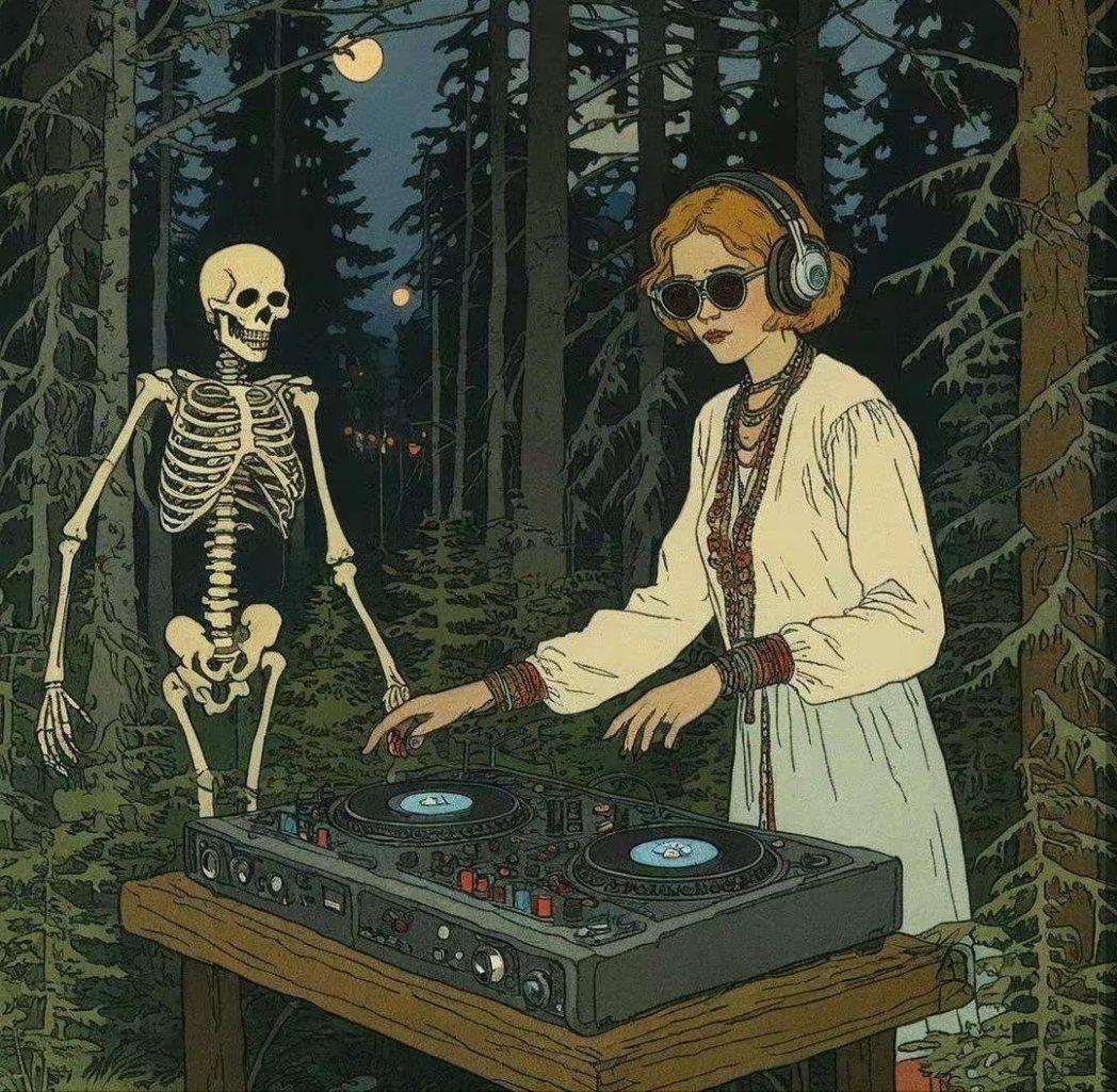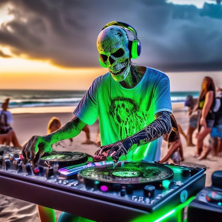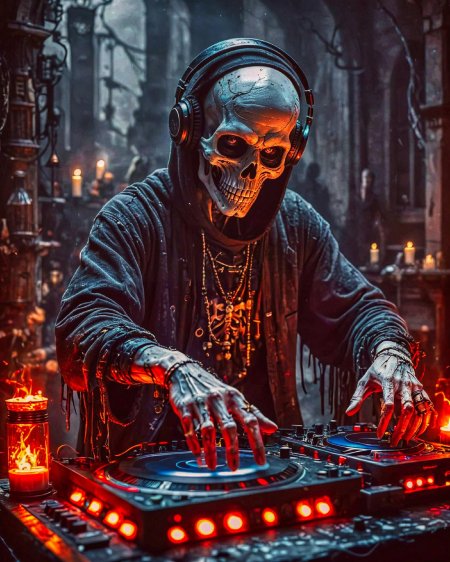 В мире электронной музыки оживает скелет диджей - потусторонний музыкант, воплощенный в фотографиях, которые сочетают мрачную тематику с клубной энергией. Эти оригинальные изображения показывают, как классический образ смерти трансформируется в современного диджея с наушниками, виниловыми пластинками и пульсирующими огнями. Художник мастерски обыгрывает контраст между вечным покоем и динамикой танцпола, создавая атмосферу вечеринки в загробном мире. Фотографии передают не только визуальный юмор, но и глубокие темы преодоления смерти через искусство. Каждый кадр полон символизма: наушники как связь с потусторонним, винил как вечная музыка. Это визуальное исследование того, как традиционные символы адаптируются к современной культуре. Арты вдохновляют на размышления о границах между жизнью и смертью, показывая, как музыка объединяет все сущее.