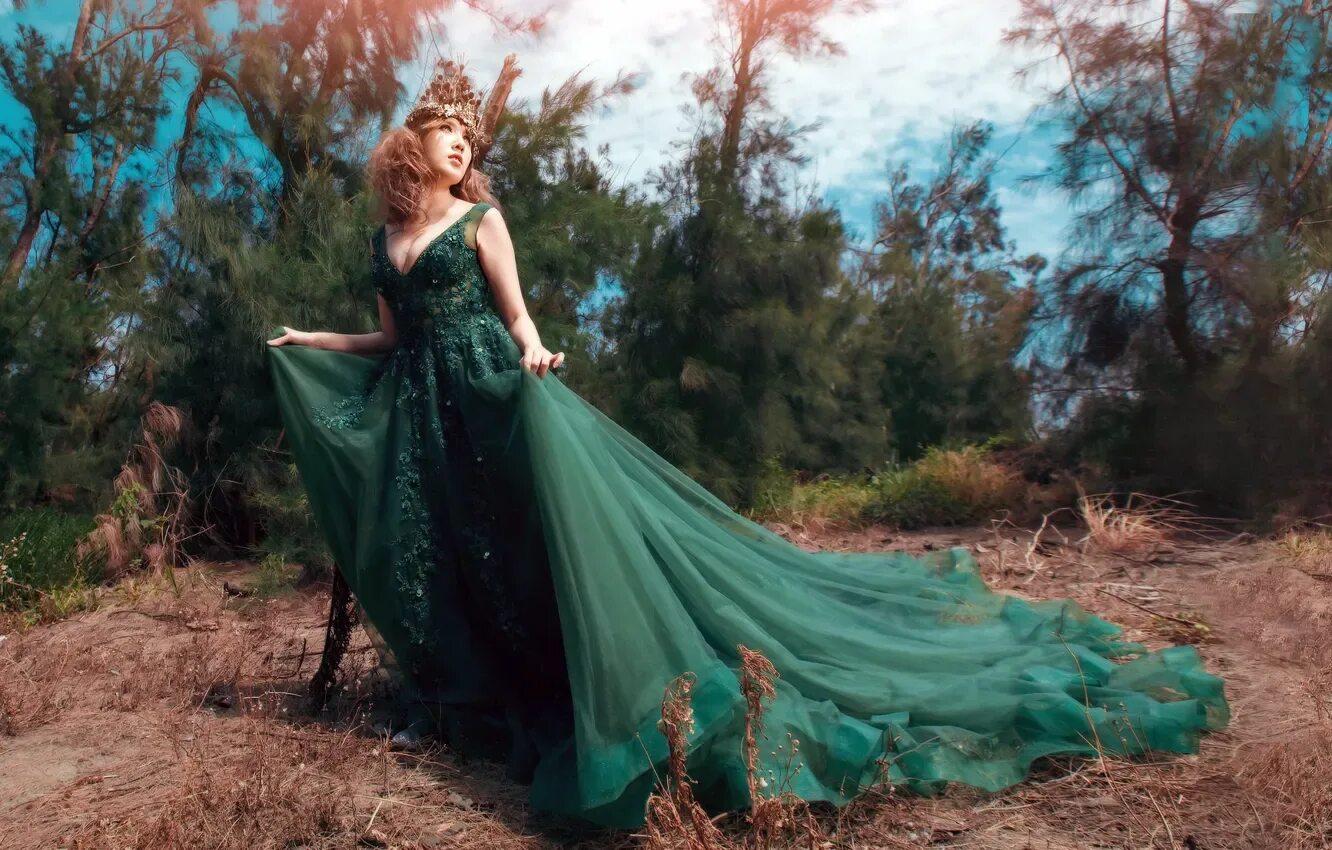 Девушка в зеленом платье создает природный образ. Зеленое платье подчеркивает ее естественность. Девушка выглядит как лесная нимфа. Зеленый цвет создает гармонию с природой. Девушка словно сливается с окружающим миром. Ее образ сочетает элегантность и природность. Зеленое платье становится символом жизни.