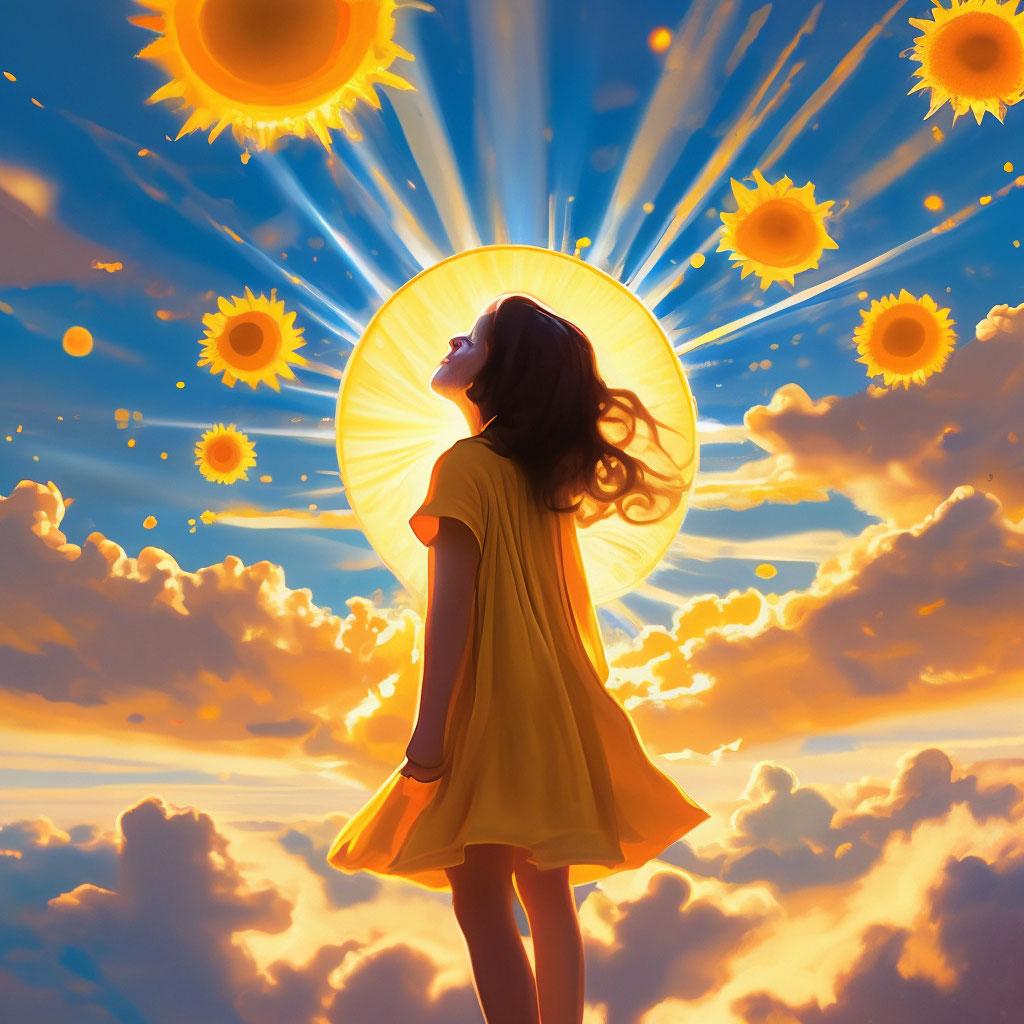 В мире художественных изображений солнечная девочка занимает особое место, символизируя чистоту и радость жизни. Эти иллюстрации демонстрируют девушку, окруженную мягкими лучами света, которые создают атмосферу тепла и уюта. Художники мастерски передают игру теней и света на ее лице, подчеркивая невинность и жизнерадостность. Тематические элементы включают золотистые тона, легкие ткани платьев, развивающиеся на ветру волосы и нежные улыбки. Каждая картина рассказывает свою историю о встрече с солнцем - от утренних пробуждений в саду до закатных прогулок по берегу моря. Арты с солнечной девочкой идеально подходят для оформления детских комнат, создания позитивного настроения и вдохновения на творчество. Коллекция включает разнообразные стили: от реалистичных портретов до фантазийных интерпретаций с элементами магии и природы.